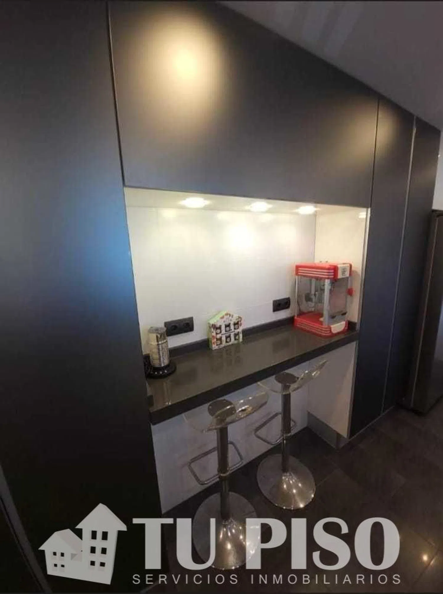 En la planta principal, el salón se ilumina con grandes ventanales y presenta paredes decoradas con estuco en estilo veneciano. La cocina se equipara con una placa de cinco fogones y electrodomésticos empotrados, además de contar con un espacio destinado a la zona de café. También en esta planta, hay un espacioso dormitorio con baño en suite, que dispone de una ducha grande para mayor comodidad.