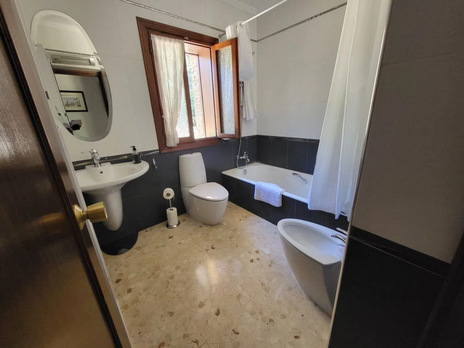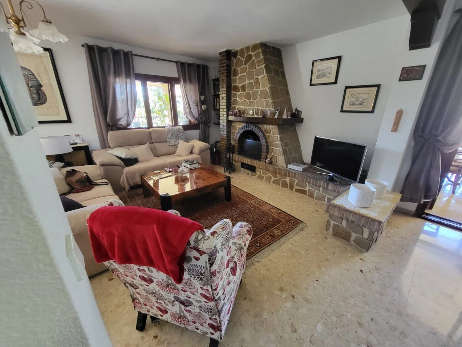 La propiedad se presenta en buen estado original y dispone de una cocina completamente equipada con acabados de mármol, ideal para quienes disfrutan de la cocina gourmet. Entre los extras, se incluyen aire acondicionado, armarios empotrados y calefacción central, asegurando un ambiente confortable durante todo el año.