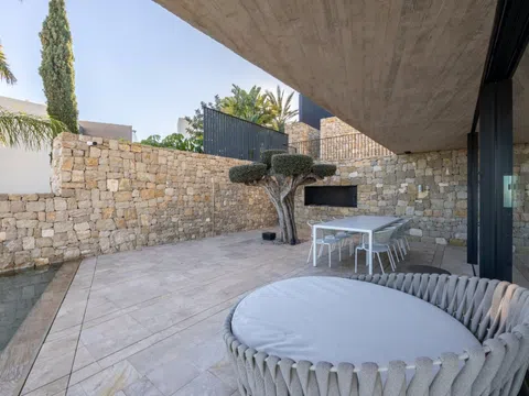 Villa Moderna de Lujo en Racó de Galeno, Benissa Esta excepcional villa independiente de 4 dormitorios y 5 baños se encuentra en la exclusiva zona de Racó de Galeno de Benissa, y ofrece impresionantes vistas al mar, a la montaña y a la ciudad. Ubicada en una parcela de 1.384 m², la propiedad cuenta con 344 m² de espacio interior útil y 419 m² construidos, combinando diseño moderno, materiales de calidad y privacidad en uno de los enclaves residenciales más codiciados de la Costa Blanca. Construida en 2018 y en excelentes condiciones, la villa incluye una amplia sala de estar y comedor de planta abierta, una cocina independiente totalmente equipada y grandes ventanales del suelo al techo que llenan la casa de luz natural. Cada dormitorio tiene su propio baño en suite y armarios empotrados, y la suite principal también cuenta con un vestidor. La propiedad ofrece comodidades de primera calidad, como calefacción por suelo radiante, aire acondicionado central, ascensor, sistema de hogar inteligente, lavadero, despensa y espacio de almacenamiento. Al aire libre, disfrute de una piscina privada climatizada, un jardín paisajístico, múltiples terrazas, solárium y una zona de barbacoa, ideal para entretenerse y disfrutar del estilo de vida mediterráneo. Las características adicionales incluyen paneles solares, estacionamiento privado, persianas eléctricas, ventanas de doble acristalamiento y un sistema de seguridad las 24 horas. Ubicada a solo 2,4 km de Cala Baladrar y cerca de otras hermosas calas, con el aeropuerto de Alicante a solo 80 km, esta villa ofrece la combinación perfecta de lujo, comodidad y vida costera. Póngase en contacto con nosotros para obtener más información o para concertar una visita privada.