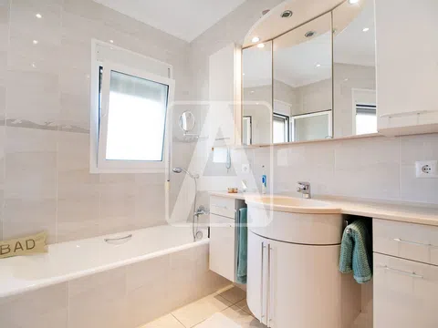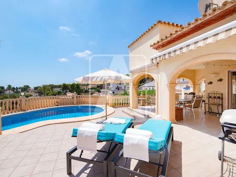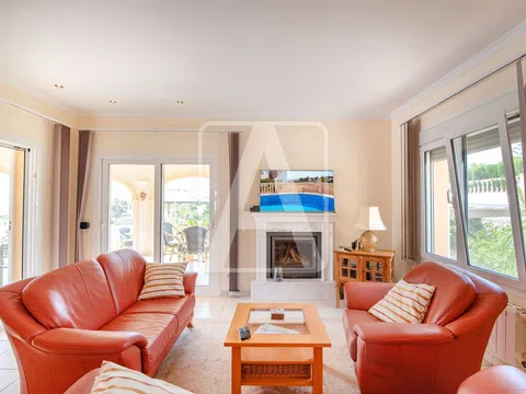 Villa en venta en Benissa, en La Fustera, a tan solo 750 metros (10 minutos andando) de Playa La Fustera, del precioso Paseo Ecológico y a 500 metros (7 minutos andando) de supermercado, restaurantes y parada de autobús, muy bien comunicada con Calpe y con Moraira. Disfruta de bonitas vistas al mar, de sol todo el día (orientación Sur) y de mucha tranquilidad. Esta bonita villa de estilo mediterráneo está ubicada en una parcela de esquina de 905 m2 y cuenta con una superficie construida de 230 m2 distribuidos en dos plantas y sótano de la siguiente manera: en la planta principal tenemos el hall de entrada de 8 m2 (con zona de doble altura muy bonita), 2 dormitorios (20 m2 + 12 m2), 2 baños (1 en-suite de 9 m2, con ducha y bañera), lavadero-despensa de 5 m2, salón comedor cocina de 40 m2 (concepto abierto, con chimenea) y magnífico porche de 25 m2 (equipado con toldo automático y toldos manuales), que conecta con la terraza exterior de 50 m2 donde tenemos una piscina con forma de riñón de 30 m2. Junto a la terraza de la piscina tenemos una zona de terraza auxiliar de 20 m2 + 20 m2 (equipada con un práctico toldo retráctil), que está perfectamente integrada con el bonito jardín y que hace funciones de zona chill-out y relax. Se accede a la planta alta a través de una bonita escalera interior. En la planta alta tenemos un estudio de 55 m2 que consta de cocina de 6 m2, vestidor de 6 m2, 1 baño de 8 m2 y 1 dormitorio-comedor de 25 m2 que comunica con una bonita terraza panorámica muy privada de 15 m2. Se accede a la planta sótano por el exterior. En la planta sótano tenemos un amplio garaje de 30 m2. A través del garaje se accede al vacío sanitario de la propiedad (parcialmente habilitado), que consta de 3 amplias salas de 30 m2 + 25 m2 + 20 m2, que hacen funciones de trastero y taller pero que ofrece posibilidades de ampliación a esta propiedad. Esta villa cuenta con una pérgola de 25 m2 para 1 vehículo y de una amplia zona de aparcamiento exterior para varios vehículos incluso una autocaravana. Esta propiedad ha sido construida en el año 2005 y en la actualidad se encuentra en muy buen estado. Está equipada con calefacción central y con aire acondicionado (2 splits, calor y frío). El jardín es precioso y de bajo mantenimiento (cuenta con riego automático). Esta residencia destaca por su privacidad, por sus bonitas vistas al mar y por su magnífica ubicación, a pocos minutos andando de uno de los rincones más bonitos de la Costa Blanca. Para recibir más información sobre esta propiedad, póngase en contacto con AREA Costa Blanca. AREA Costa Blanca - su agente para propiedades en venta en Benissa - Costa Blanca - España. AREA Costa Blanca está orgullosa de ser una de las mejores agencias inmobiliarias en la Costa Blanca. En AREA Costa Blanca trabajamos para ofrecer el mejor servicio asesorando a nuestros clientes en la compraventa de propiedades inmobiliarias. Contamos con un equipo profesional de larga experiencia en el sector inmobiliario. Nuestro principio fundamental es la calidad del servicio prestado y la satisfacción del cliente. Nuestra experiencia y actitud, su garantía de éxito.