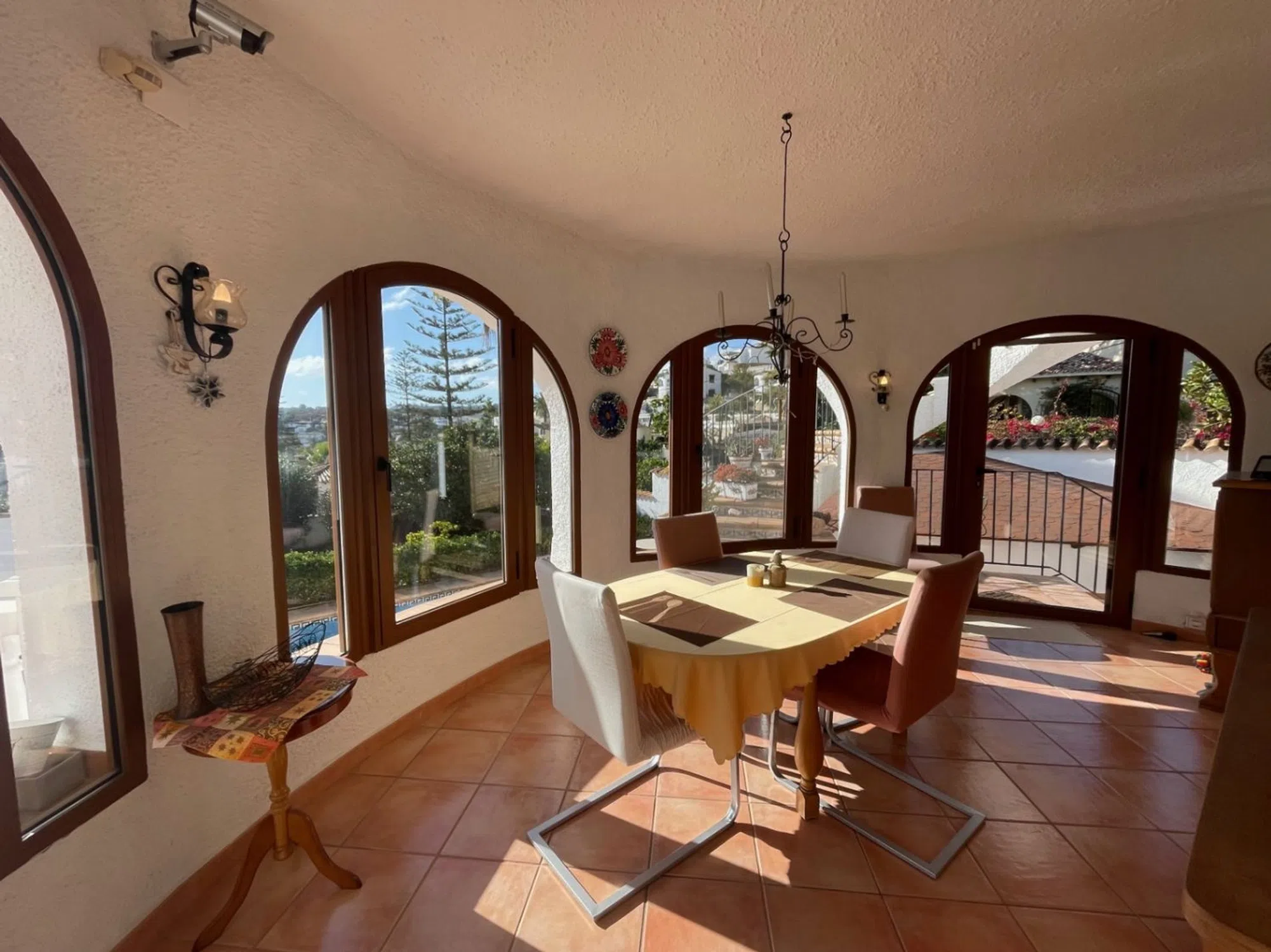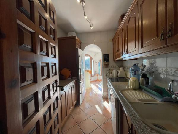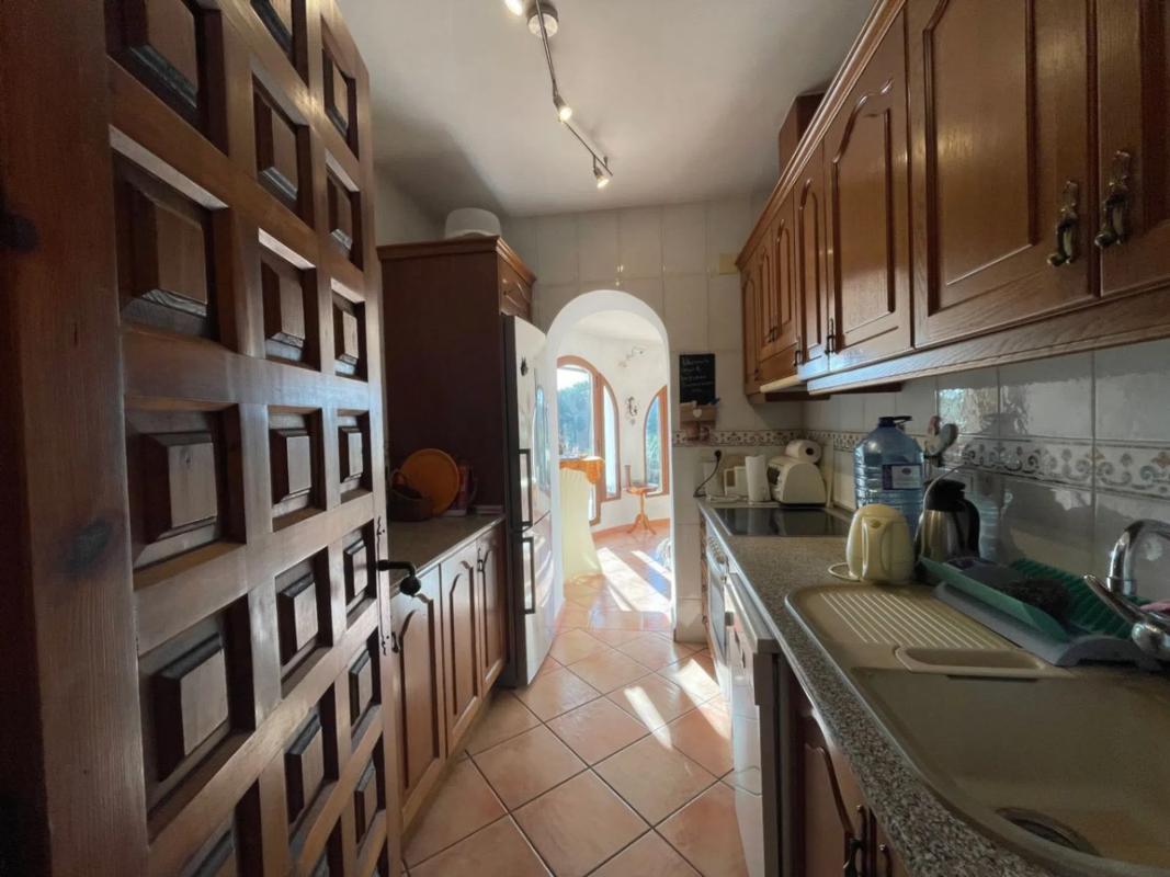 Encantadora villa orientada al sur en venta en Benissa, Montemar, con piscina privada, garaje y una magnífica zona de bienestar!Esta cuidada villa se encuentra en una tranquila y consolidada zona residencial de Montemar, Benissa, sobre una parcela soleada de aproximadamente 780 m², ofreciendo, confort y una excelente orientación sur que garantiza luz natural durante todo el día. La vivienda principal destaca por su distribución cómoda y funcional. Al entrar, un amplio y práctico hall ofrece abundante espacio de almacenamiento. Desde aquí se accede a un luminoso salón con vistas abiertas, equipado con aire acondicionado y una acogedora estufa de leña, ideal para disfrutar tanto en verano como en invierno. La zona de comedor, igualmente muy luminosa, tiene acceso directo a una agradable terraza y a un solárium en la azotea, perfecto para relajarse o disfrutar del entorno. La cocina es independiente, bien equipada y funcional. La villa dispone de dos dormitorios, incluyendo un dormitorio principal con baño en suite, el cual cuenta con suelo radiante, además de un baño de invitados adicional para mayor comodidad. La propiedad está equipada con ventanas de aluminio con doble acristalamiento en acabado imitación madera, recientemente sustituidas, lo que garantiza eficiencia energética. Dispone de calefacción central por radiadores con gasoil, aire acondicionado y un alto nivel de confort durante todo el año. El exterior es un auténtico oasis. La piscina privada de agua salada cuenta con un sistema automático de control de pH, rodeada de terrazas soleadas. Junto a la piscina se encuentra una fantástica zona spa, equipada con sauna/cabina de infrarrojos, ducha y suelo radiante, ideal para el máximo relax. Este espacio también podría utilizarse perfectamente como un estudio independiente para invitados, alcanzando así un total de tres espacios para dormir. Además, hay una zona cubierta perfecta para crear una cocina de verano, así como un espacio independiente para lavandería y almacenamiento. La parcela incluye también árboles frutales, un garaje, y la vivienda se vende totalmente amueblada. En cuanto a sostenibilidad, la villa dispone de paneles fotovoltaicos y agua caliente mediante colectores solares y boiler solar, reduciendo el consumo energético. Características principales: Orientación surVistas abiertasPiscina privada de agua salada2 dormitorios y 2 baños (uno en suite con suelo radiante)Aire acondicionado, estufa de leña y calefacción central por gasoilPaneles solares fotovoltaicos y sistema solar para agua calienteZona spa con sauna/infrarrojos y duchaGarajeUbicación tranquilaUna villa muy completa, luminosa y lista para entrar a vivir, ubicada en una de las zonas más agradables de Benissa, perfecta tanto como residencia habitual como inversión.