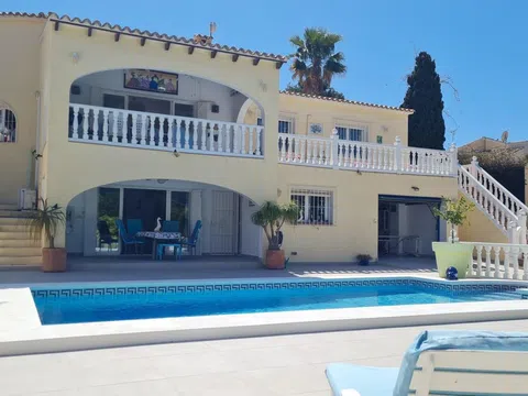 .VILLA EXCLUSIVA en una ubicación privilegiada y tranquila, en excelentes condiciones y ubicada en una parcela esquinera. Construida con muros huecos y suelos flotantes, manteniéndola fresca en verano y cálida en invierno. La casa, recientemente reformada, se encuentra en una tranquila zona residencial, a un paseo de la playa y a minutos de supermercados, tiendas, bares, gasolinera y restaurantes. Lista para entrar a vivir. Diseñada en dos plantas independientes, ambas con aire acondicionado y entradas independientes. El espacio de almacenamiento interior incluye 7 armarios dobles y 2 individuales, una estantería regulable de suelo a techo, ideal para libros o zapatos, y una amplia zona junto al lavadero que podría convertirse en otro dormitorio. Al entrar por la puerta principal, se encuentran hermosos jardines de fácil mantenimiento. La casa es luminosa, espaciosa y moderna, con una sala de estar de planta abierta, que es el corazón de la casa. Todas las ventanas dan a la vegetación. Junto a ella, un arco conduce a un espacioso comedor circular. La cocina semiabierta incorpora barra americana, frigorífico-congelador y ha sido totalmente modernizada con una lámpara de diamante y ventilador integrado. El dormitorio principal cuenta con aire acondicionado y ventilador de techo, tres armarios dobles, tocador y cómoda. El baño en suite incluye ventilador de techo, calefactor de pared, toallero calefactado y extractor de aire. Hay dos dormitorios más; uno de ellos se utiliza actualmente como despacho. El segundo baño también ha sido modernizado y equipado con electrodomésticos de última generación. La terraza superior ocupa prácticamente todo el largo de la casa. ¡Ofrece magníficas vistas a la montaña e impresionantes puestas de sol! Hay ventiladores sobre una amplia zona cubierta con vistas a la piscina. El acceso a la vivienda independiente de la planta baja se realiza a través de las puertas eléctricas dobles que conducen a un camino arbolado con amplio aparcamiento. Hay un garaje integrado. El amplio dormitorio principal cuenta con un baño en suite con ducha a ras de suelo, un mueble de lavabo empotrado con iluminación, una cama king size y ventiladores de techo. Actualmente también se utiliza como gimnasio. Unas puertas dobles interiores dan acceso al comedor o sala de estar. La cocina americana cuenta con un frigorífico-congelador americano. Desde el comedor, una puerta da acceso al garaje integrado, que actualmente se utiliza como sala de juegos. Una caldera de gas calienta el agua. En la planta baja hay un aseo y un lavabo. El jardín delantero está repleto de árboles frutales, palmeras y flores. Hay una zona de estar privada y relajante. Al lado hay una hamaca y un jardín privado con mesa y sillas, plantas resplandecientes y un hueco para tender la ropa. A continuación se encuentra la zona de cabañas, con electricidad e iluminación, que se extiende y es ideal para el entretenimiento. Puede relajarse en un columpio cercano. También hay aparcamiento para dos coches, así como espacio al final del largo camino arbolado. La piscina mide 8 x 4 m y cuenta con escalones anchos, luz integrada y sistema de riego automático. Está rodeada de baldosas antideslizantes y cuenta con espacio para numerosas tumbonas, mesas y sillas. Al otro lado del jardín hay adelfas, nísperos y otras plantas. Hay una pista de tenis cerca. [IW].