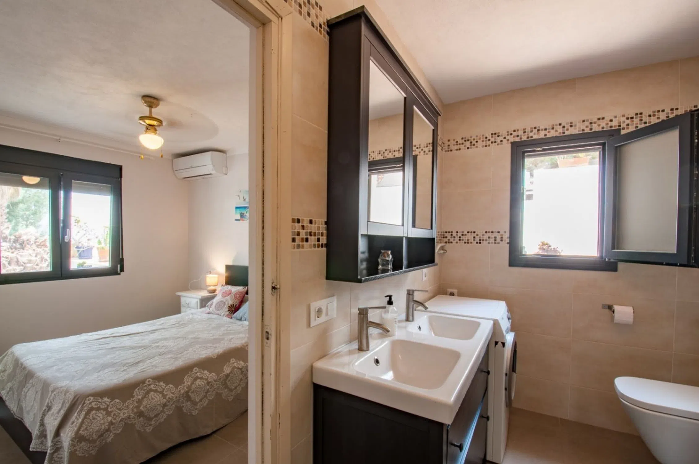 Situada en el corazón de la encantadora ciudad de Benitachell, Alicante, esta magnífica villa captura la esencia de la vida mediterránea con un equilibrio perfecto de lujo moderno y sereno encanto costero. Con una generosa superficie de 220 metros cuadrados en una amplia parcela de 800 metros cuadrados, esta casa orientada al sur está diseñada para disfrutar de la luz natural y ofrece impresionantes vistas despejadas del pintoresco paisaje que define la Costa Blanca española. La villa cuenta con tres dormitorios bellamente diseñados, cada uno de los cuales ofrece un amplio espacio y tranquilidad, junto con dos cuartos de baño elegantemente decorados que combinan el estilo contemporáneo con la funcionalidad. En el corazón de la casa se encuentra una luminosa sala de estar de planta abierta que fluye a la perfección en una cocina de última generación, totalmente equipada con electrodomésticos modernos y perfecto tanto para cenas familiares íntimas y animadas reuniones con amigos. Los grandes ventanales y las puertas correderas de cristal crean una conexión perfecta entre el interior y los acogedores espacios exteriores. Salga y descubra una terraza privada, donde una resplandeciente piscina es la pieza central de un sereno refugio al aire libre. Las zonas de jardín y patio circundantes ofrecen mucho espacio para relajarse o entretenerse, mientras se disfruta del impresionante paisaje de las colinas de Benitachell y de las lejanas vistas al mar. Situada en un barrio tranquilo y codiciado, esta villa ofrece lo mejor de ambos mundos: una escapada tranquila y fácil acceso al vibrante centro de la ciudad de Benitachell, con sus encantadoras tiendas, restaurantes y atracciones culturales. Las playas vírgenes de la Costa Blanca están a un corto trayecto en coche, haciendo de esta casa una opción ideal para aquellos que valoran tanto la comodidad como la tranquilidad.