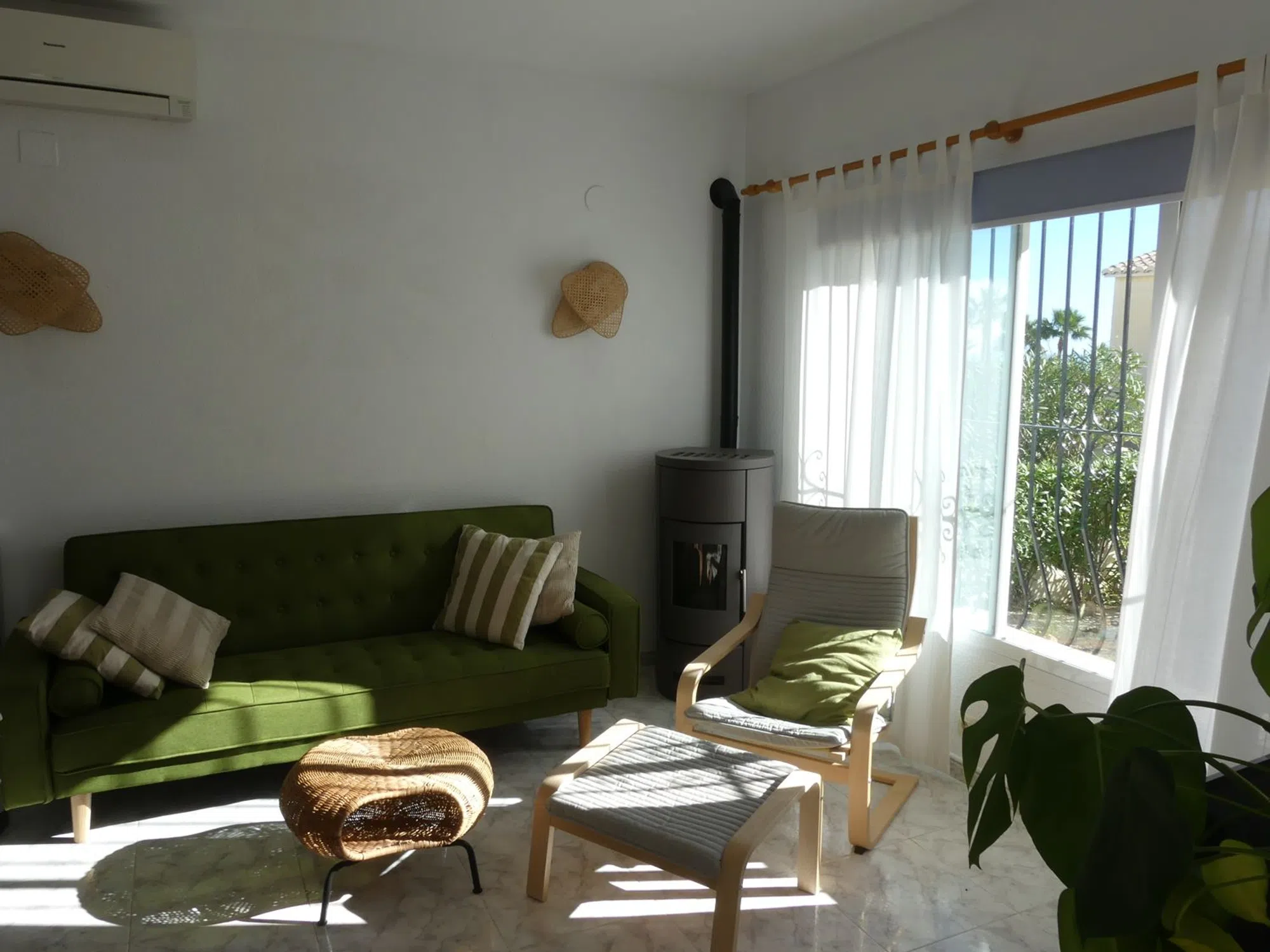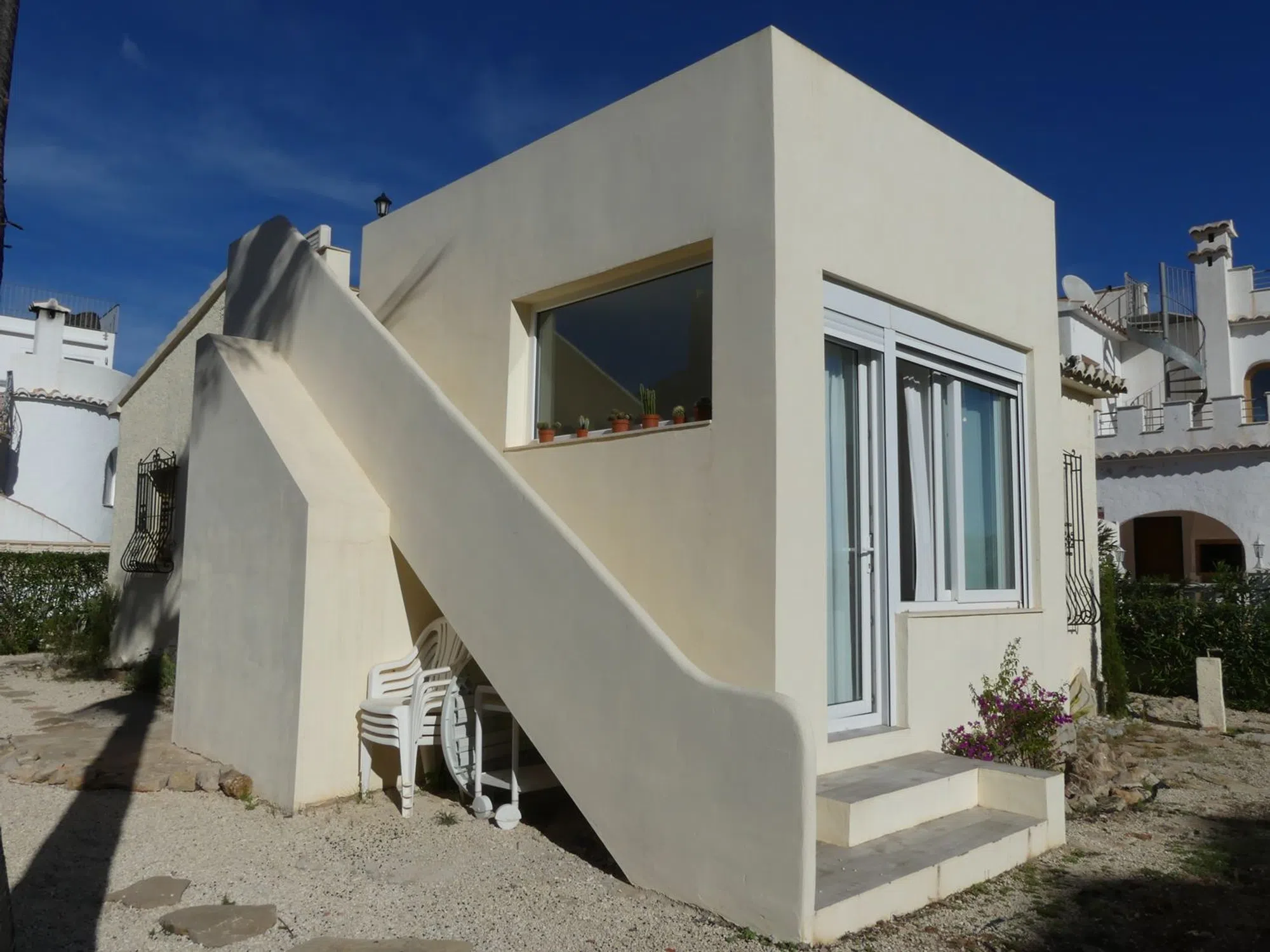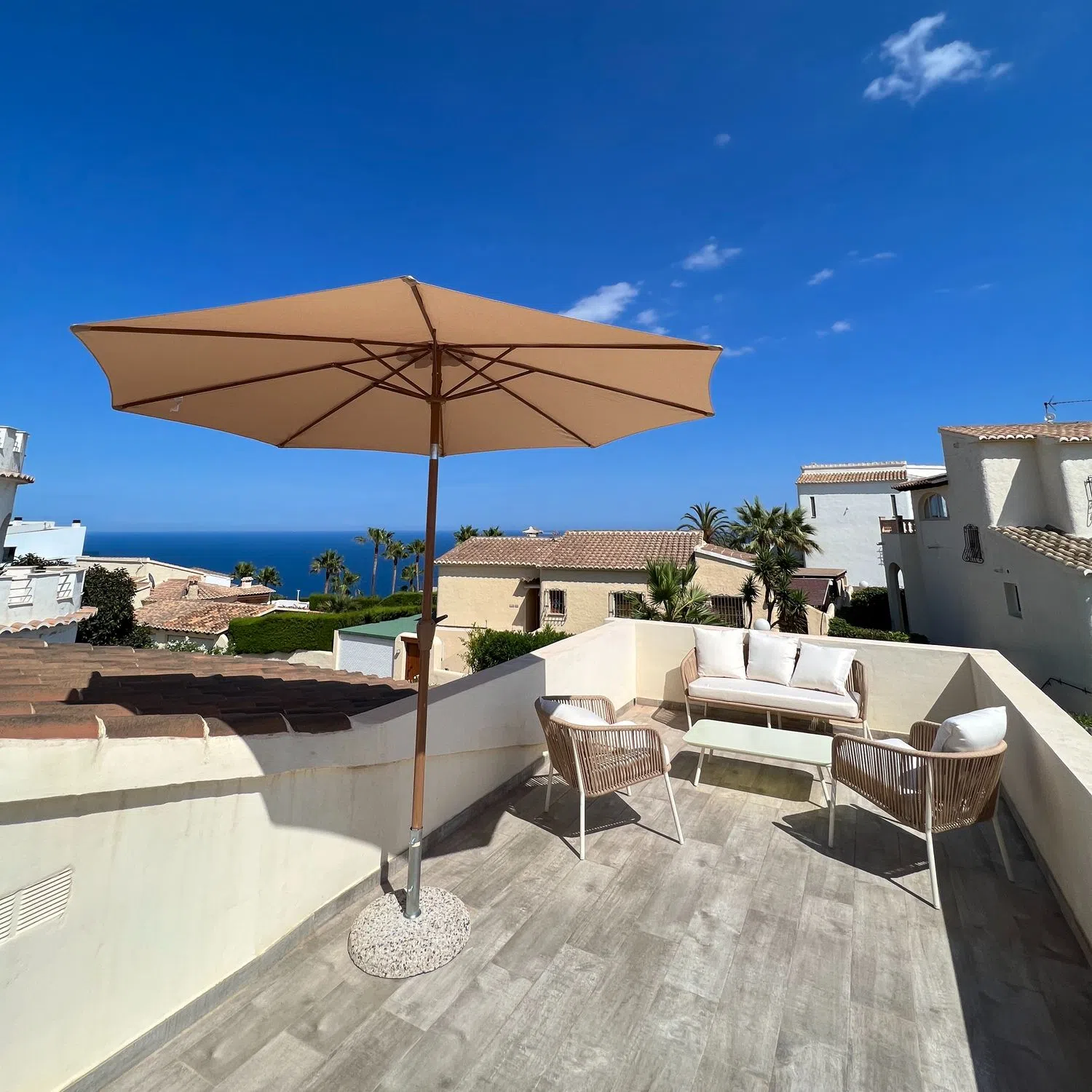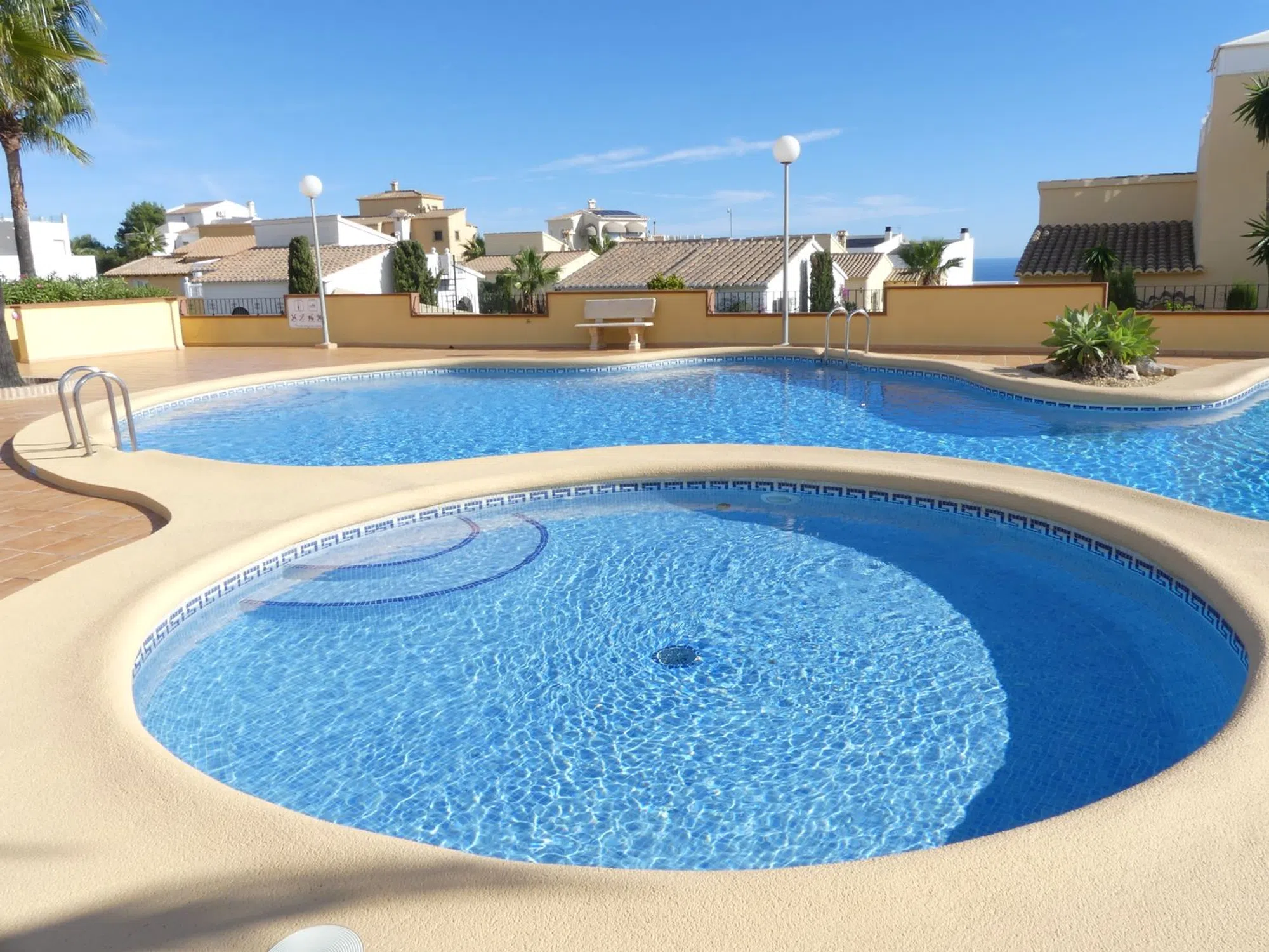Chalet Independiente con Vistas al Mar en Cumbre del Sol ¡Oportunidad única! Chalet independiente en la exclusiva Urbanización Cumbre del Sol, con impresionantes vistas al mar Mediterráneo. Construido en el año 2000 y reformado parcialmente (salita y solárium); esta propiedad de 87 m² construidos en parcela de 282 m² ofrece comodidad y estilo bohemio. Distribución: 2 dormitorios luminosos, 1 baño completo, cocina equipada abierta al salón-comedor, salita adicional y terraza solárium de 21,5 m² ideal para barbacoas y atardeceres. Extras: Aire acondicionado en salón, chimenea de pellets para inviernos acogedores, piscina comunitaria muy tranquila y electrodomésticos. Aparcamiento en la calle frente a la puerta. Certificado energético E. Cuota comunidad baja: 25€/mes. Ubicación privilegiada: A 5 min de Cala Moraig y Llebeig A 8 min del Portet y de Moraira. La urbanización cuenta con restaurantes, supermercados, farmacia y colegio internacional.