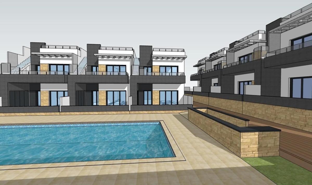 Bungalows en venta en Bigastro Vida moderna en la Costa Blanca Sur Exclusiva promoción de 14 viviendas contemporáneas Descubra este nuevo proyecto residencial de 14 modernos bungalows situados en Bigastro, Alicante. Ubicada en una zona en expansión de la localidad y a poca distancia del centro, esta promoción ofrece comodidad, estilo y una excelente relación calidad-precio en un tranquilo entorno mediterráneo. Cada vivienda está diseñada con acabados de alta calidad y distribuciones funcionales, ideales tanto para vivir de forma permanente como para estancias vacacionales. Viviendas modernas con posibilidad de elegir entre distribuciones en planta baja o en planta superior El proyecto ofrece amplias propiedades con 3 dormitorios y 2 baños, incluido un baño en suite en el dormitorio principal. Los compradores pueden elegir entre bungalows en planta baja con amplias terrazas privadas o unidades en planta superior con terraza y solárium privado en la azotea con vistas despejadas. Todas las viviendas incluyen una plaza de aparcamiento subterráneo y un trastero, lo que proporciona la máxima comodidad. Comodidad, diseño y eficiencia energética Cada bungalow cuenta con una cocina abierta integrada en el salón, armarios empotrados, una terraza privada y preinstalación de aire acondicionado por conductos. El agua caliente se suministra mediante un eficiente sistema aerotérmico, lo que garantiza un menor consumo de energía. La urbanización también incluye una amplia piscina comunitaria rodeada de hermosos jardines, perfecta para relajarse y disfrutar del clima soleado de la Costa Blanca. Ubicación privilegiada con excelentes conexiones Bigastro es una encantadora localidad de la comarca de la Vega Baja, conocida por su ambiente tranquilo, sus servicios locales y sus excelentes conexiones de transporte. Desde esta zona residencial, los residentes pueden llegar fácilmente a Centro de Bigastro 0,5 km Orihuela 5 km Playas de Guardamar del Segura 15 km Centro Comercial Zenia Boulevard 20 km Aeropuerto Internacional de Alicante 48 km Hospital Vega Baja a 10 km La autopista AP 7 proporciona un rápido acceso a Alicante, Murcia y las localidades costeras de los alrededores, lo que convierte a Bigastro en un lugar ideal tanto para vivir como para desplazarse al trabajo. Una zona en crecimiento con todos los servicios esenciales Bigastro cuenta con supermercados, colegios, instalaciones deportivas, parques y una gran variedad de tiendas y restaurantes locales. Su combinación de comodidad, entorno tranquilo y excelentes conexiones lo ha convertido en una opción residencial cada vez más popular tanto para los compradores locales como para los internacionales. Asegúrese hoy mismo su nueva vivienda en Bigastro Tanto si busca un moderno refugio vacacional como una cómoda residencia para todo el año, este nuevo proyecto de construcción en Bigastro es una oportunidad que no debe dejar pasar. Póngase en contacto con nosotros ahora para obtener más información o concertar una visita.