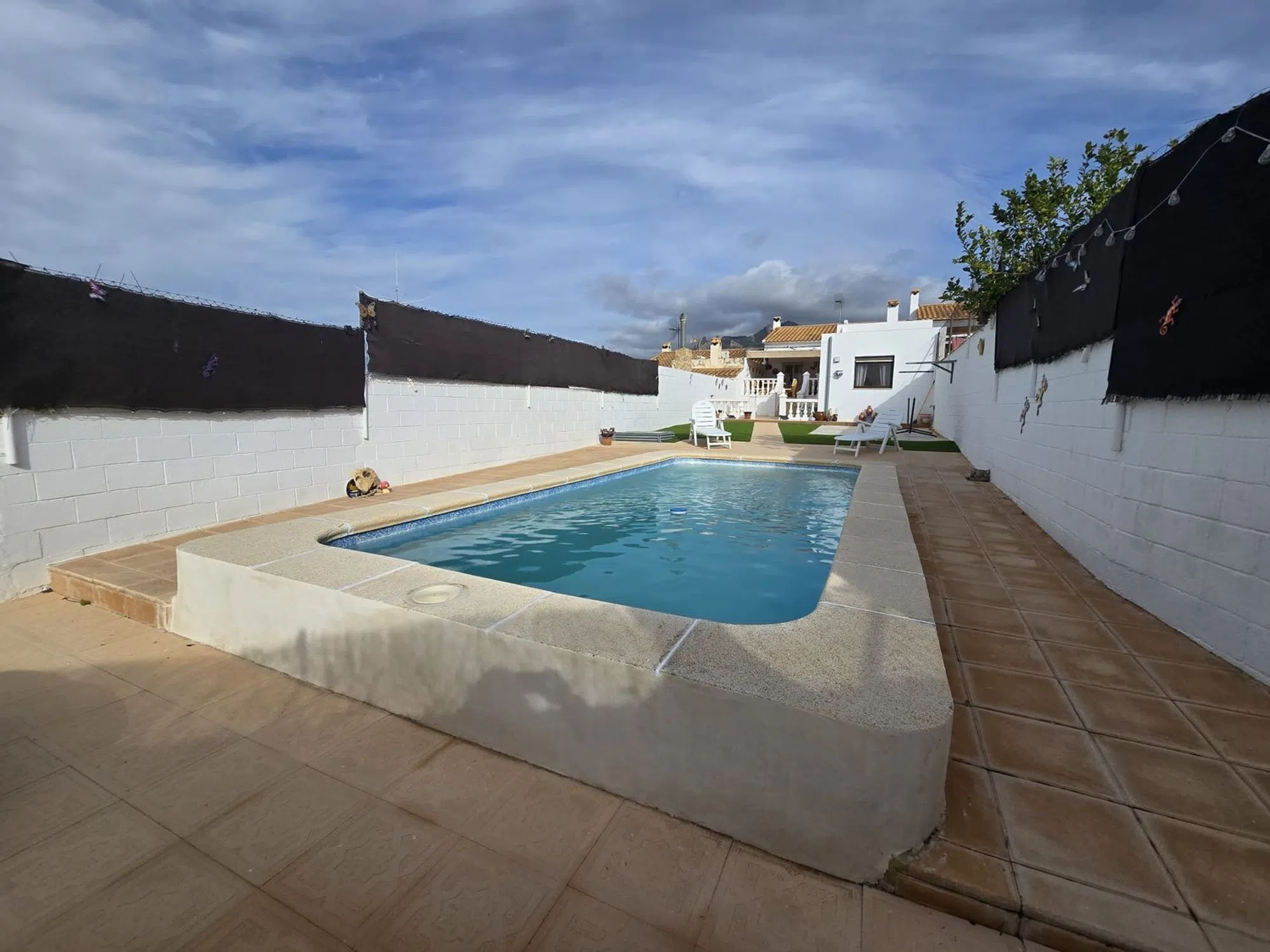 Casa adosada situada a la entrada del municipio de Busot, en una ubicación privilegiada, próxima a todo tipo de servicios y comodidades. En la entrada, la vivienda cuenta con una terraza-porche de 30 m². La casa dispone de una superficie construida de 86 m², distribuidos en una sola planta, que se compone de tres dormitorios (dos de 13 m² y uno de 8 m²), un salón equipado con chimenea y split de aire acondicionado, un baño completo y una cocina con acceso a la terraza trasera, desde la cual se disfrutan vistas despejadas a la montaña y al jardín. La parcela cuenta con un jardín de 238 m² que incluye una casa de invitados con un dormitorio y un baño, piscina privada y zona de barbacoa, ofreciendo un espacio ideal para el ocio y el disfrute al aire libre. *Los datos expuestos han sido facilitados por terceros y se muestran a título meramente informativo, por lo que se presumen correctos. La oferta puede estar sujeta a errores, modificaciones de precio y retirada del mercado sin previo aviso. *.