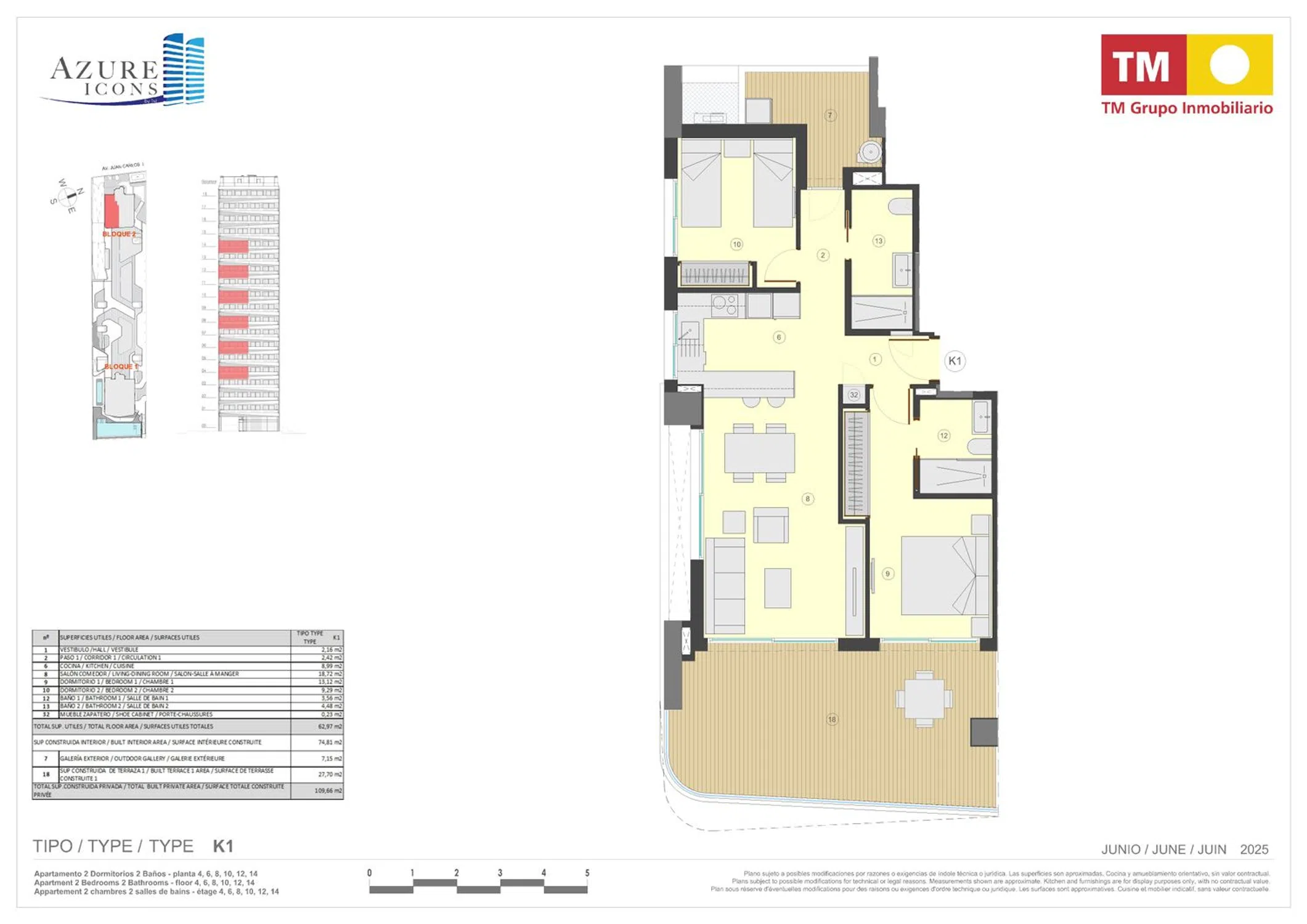 El mar Mediterráneo, uno más en tu nuevo hogar. Si por algo enamora Azure Icons by TM es por sus impresionantes vistas al mar Mediterráneo, donde contemplarás los mejores amaneceres y atardeceres. Sus vistas no son solo al mar, desde su privilegiada ubicación, divisarás las salinas de Calpe, el imponente peñón de Ifach y las localidades vecinas de Moraira y Benissa. Azure Icons by TM aterriza en primera línea de la playa de La Fossa en Calpe, con dos accesos peatonales, uno por la Avenida Juan Carlos I y otro desde el mismo paseo marítimo de la playa de La Fossa. El residencial está compuesto por 72 viviendas: apartamentos de 1, 2 y 3 dormitorios y 1, 2 y 3 baños y dúplex con solárium de 3 dormitorios y 3 baños. Todas las viviendas del bloque 1 ofrecen vistas al mar y al peñón de Ifach mientas que el bloque 2, además de estas vistas, tiene también a las salinas de Calpe. Las zonas comunes están compuestas por: •Piscina de adultos climatizable infinity con vistas al mar. •Piscina infantil climatizable. •2 jacuzzis climatizables integrados en la piscina de adultos. •Gimnasio panorámico con vistas al mar y a las piscinas •Sauna con ducha, taquillas, vestuarios, aseos y duchas. •Área de juegos infantiles Azure Icons by TM está, justo, en el lugar donde quieres vivir.