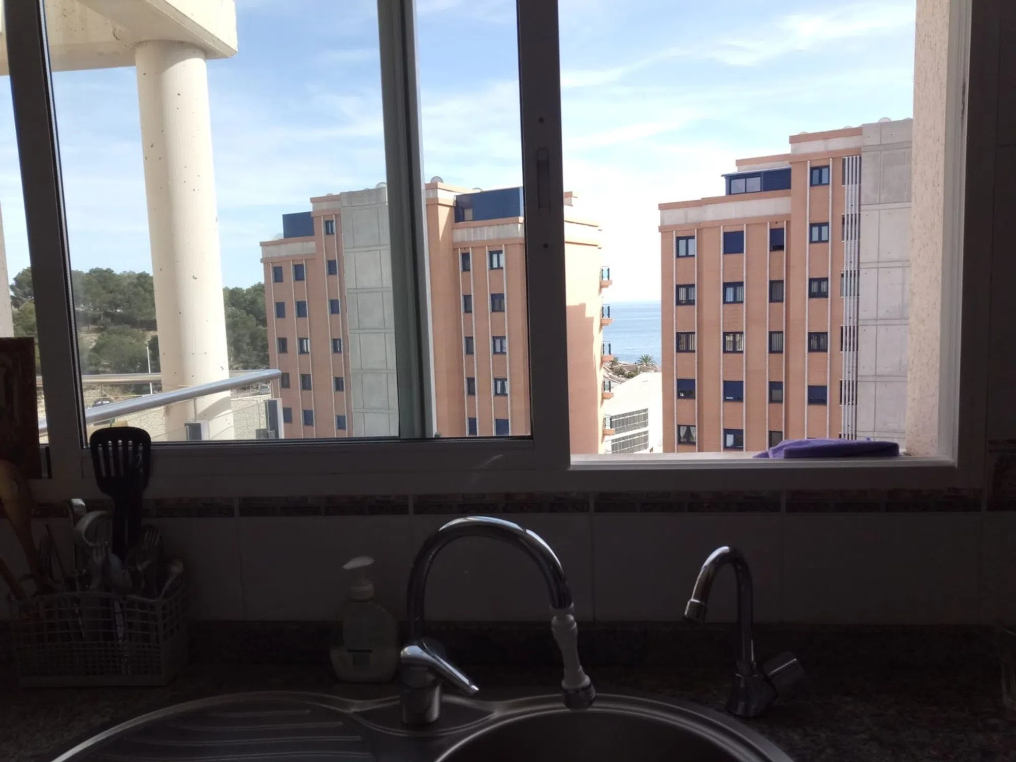 Apartamento en buen estado, con 3 dormitorios y dos baños, 120 metros de superficie, con dos terrasas, donde se puede disfrutar de las vistas al mar y a las montanas, plaza de parking grande, cubierto, salon 22 m, la cocina de 8 m, esta totalmente amublada. El edificio se encuentra en una zona muy tranquila y limpia, alrededor hay estacion de bus, centro de salud, bares, farmacias y supermercados Consta de una piscina comunitaria con zonas verdes.