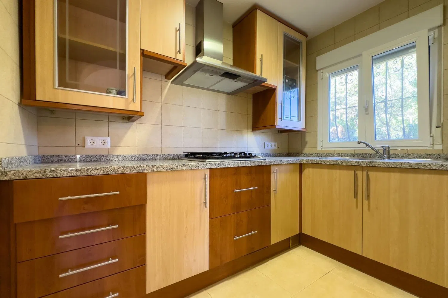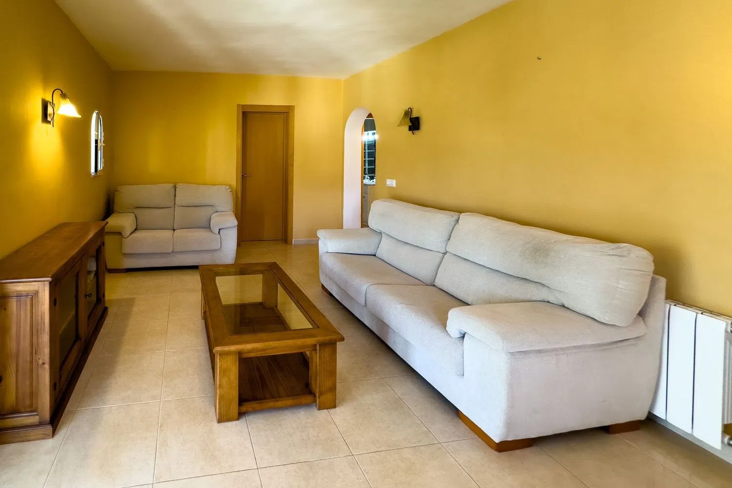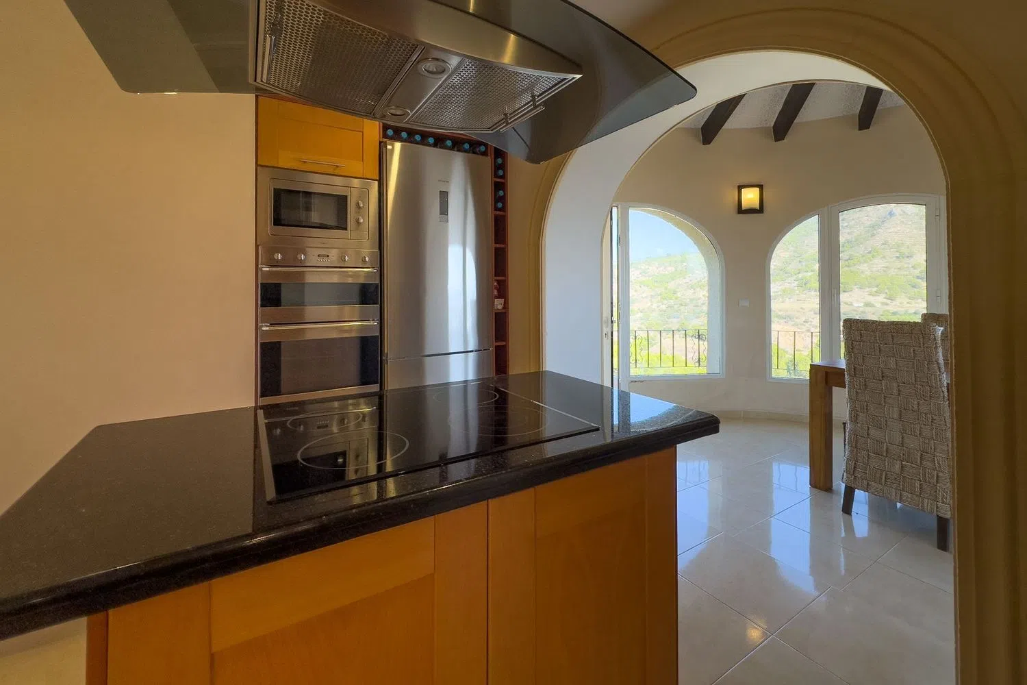 La conexión con la planta baja se realiza a través de unas elegantes escaleras exteriores, lo que permite disfrutar de dos espacios independientes con total privacidad. En la planta inferior, encontramos dos acogedoras habitaciones matrimoniales, un baño, un salón y una cocina completamente equipada, además de una terraza acristalada que brinda la oportunidad de deleitarse con vistas encantadoras.