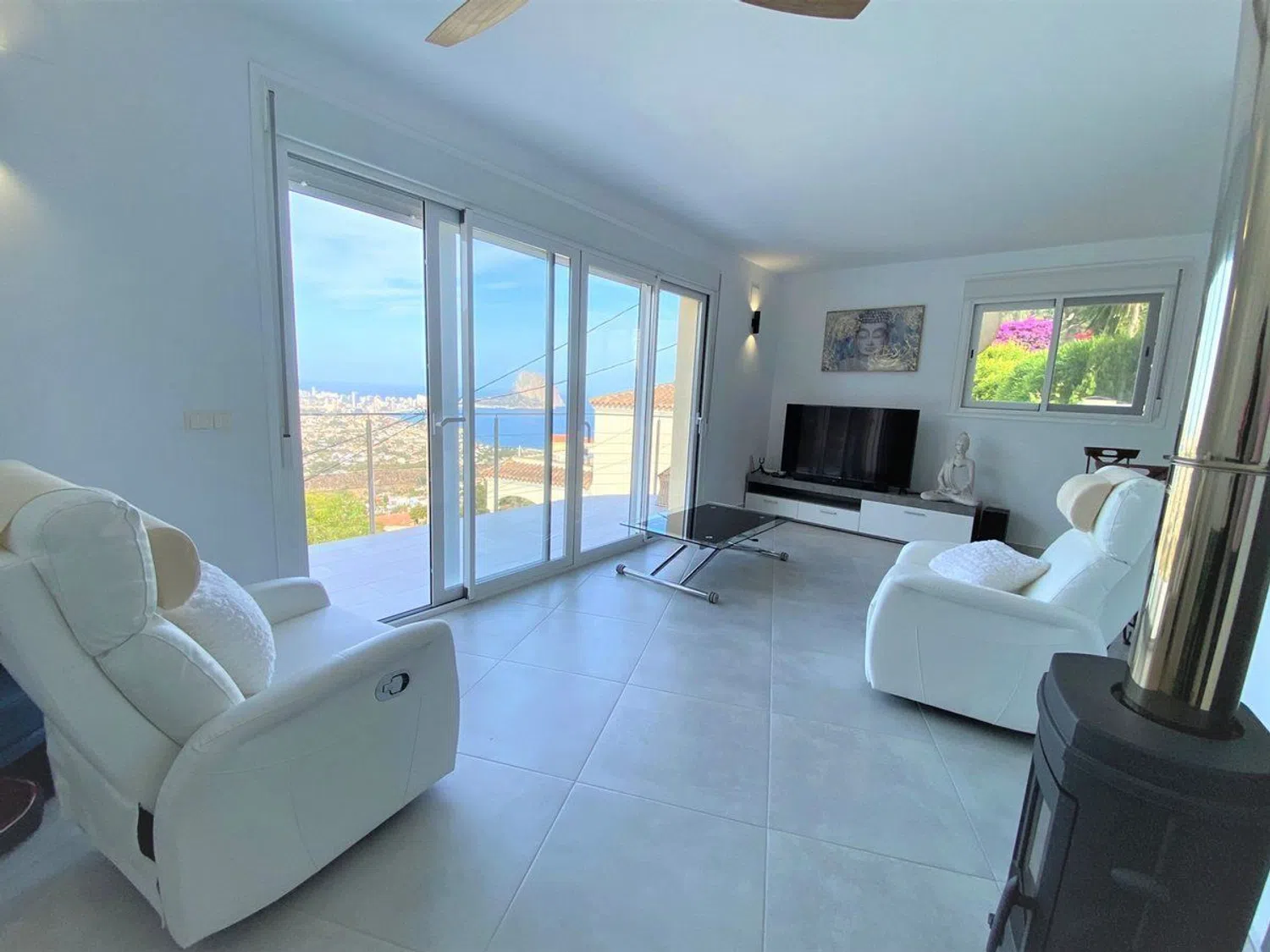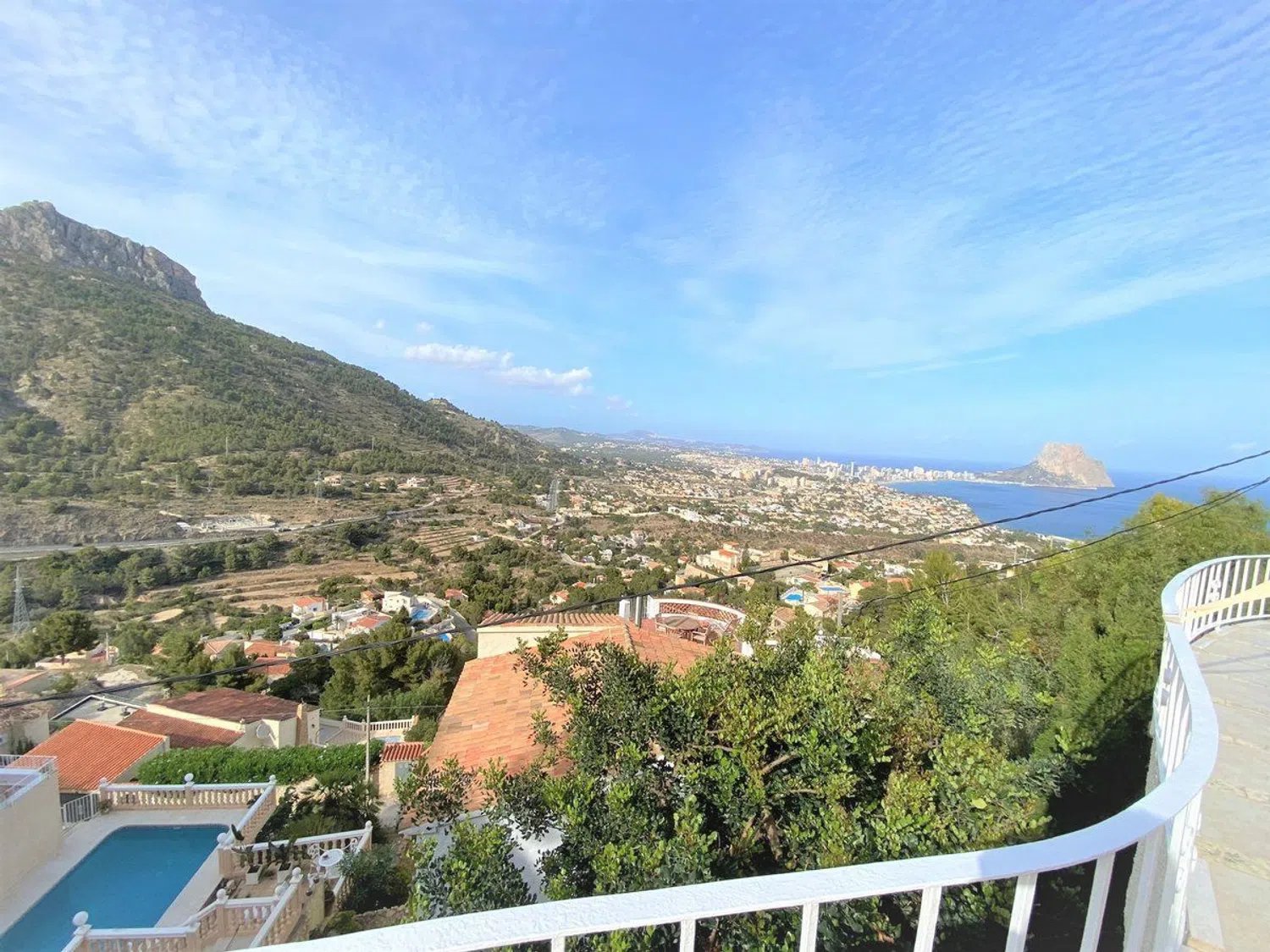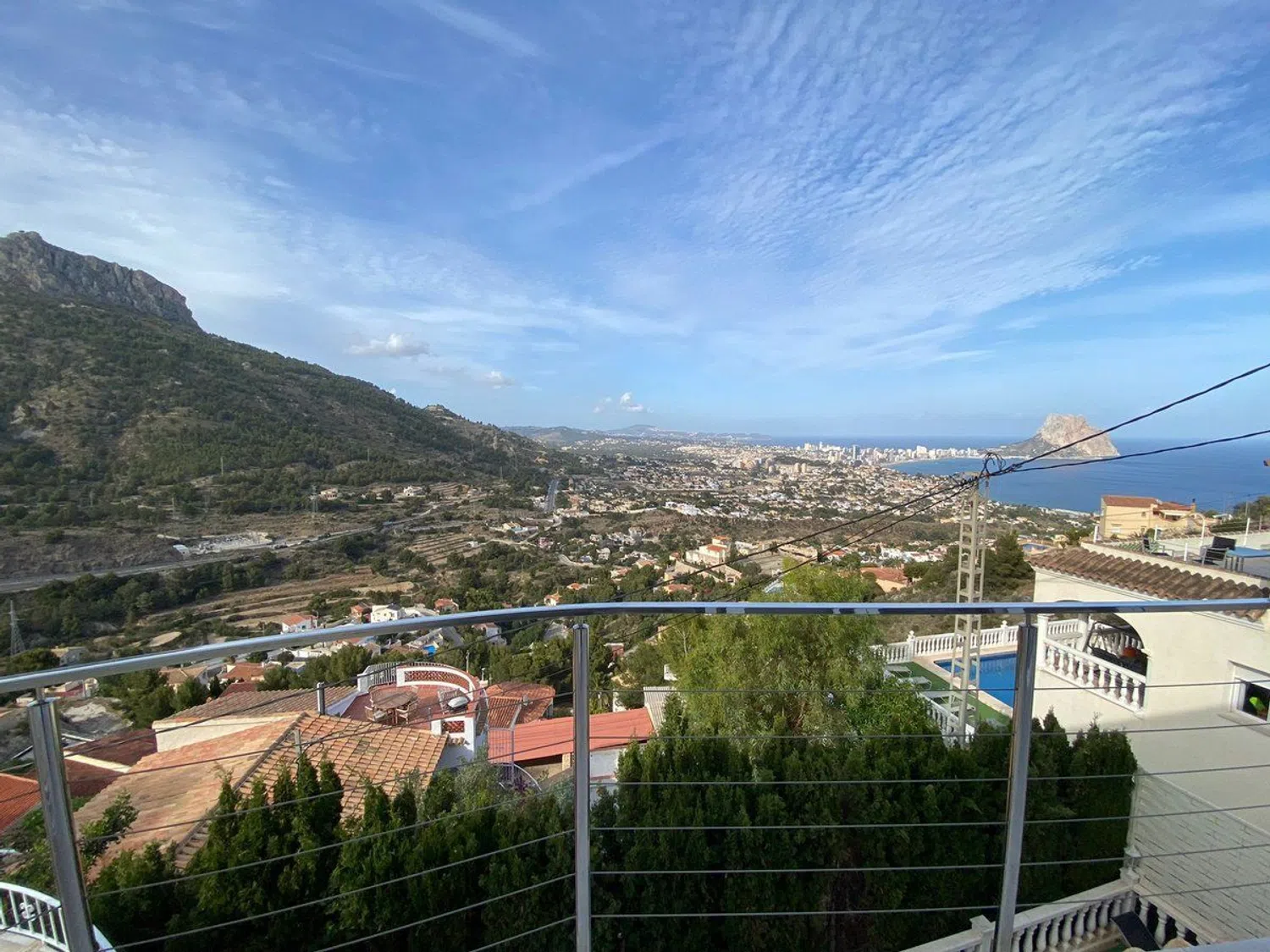 Disfrute de una impresionante villa de estilo mediterráneo que ofrece vistas excepcionales al mar y a un emblemático paisaje montañoso, todo situado en una amplia parcela de 1104 m². Esta propiedad cuenta con dos apartamentos independientes. En el nivel superior, encontrará un apartamento completamente renovado en 2022, que incluye un amplio pasillo con armarios, una cocina moderna completamente equipada con una acogedora zona de comedor de concepto abierto, y un espacioso salón con chimenea que se conecta a una encantadora terraza con vistas al mar, así como a una segunda terraza cubierta y acristalada, accesible mediante una escalera exterior. El apartamento también alberga dos amplios dormitorios con armarios y un elegante cuarto de baño con ducha, además de disponer de una puerta de seguridad para mayor tranquilidad.