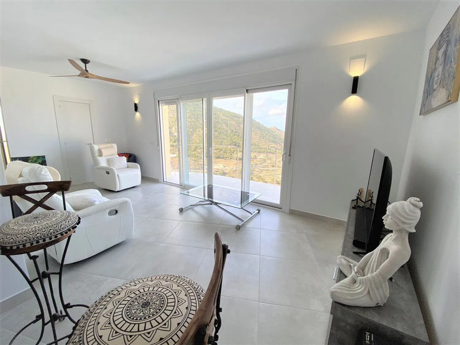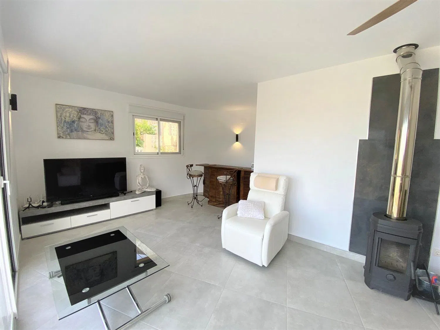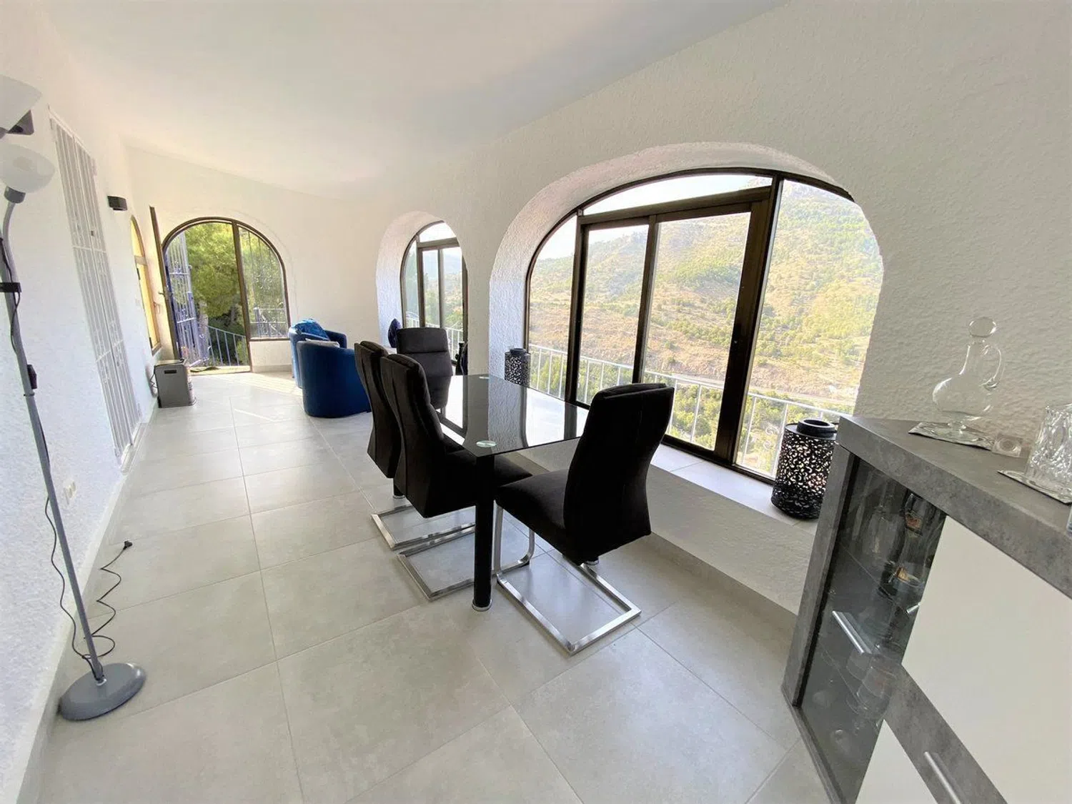 Disfrute de una impresionante villa de estilo mediterráneo que ofrece vistas excepcionales al mar y a un emblemático paisaje montañoso, todo situado en una amplia parcela de 1104 m². Esta propiedad cuenta con dos apartamentos independientes. En el nivel superior, encontrará un apartamento completamente renovado en 2022, que incluye un amplio pasillo con armarios, una cocina moderna completamente equipada con una acogedora zona de comedor de concepto abierto, y un espacioso salón con chimenea que se conecta a una encantadora terraza con vistas al mar, así como a una segunda terraza cubierta y acristalada, accesible mediante una escalera exterior. El apartamento también alberga dos amplios dormitorios con armarios y un elegante cuarto de baño con ducha, además de disponer de una puerta de seguridad para mayor tranquilidad.