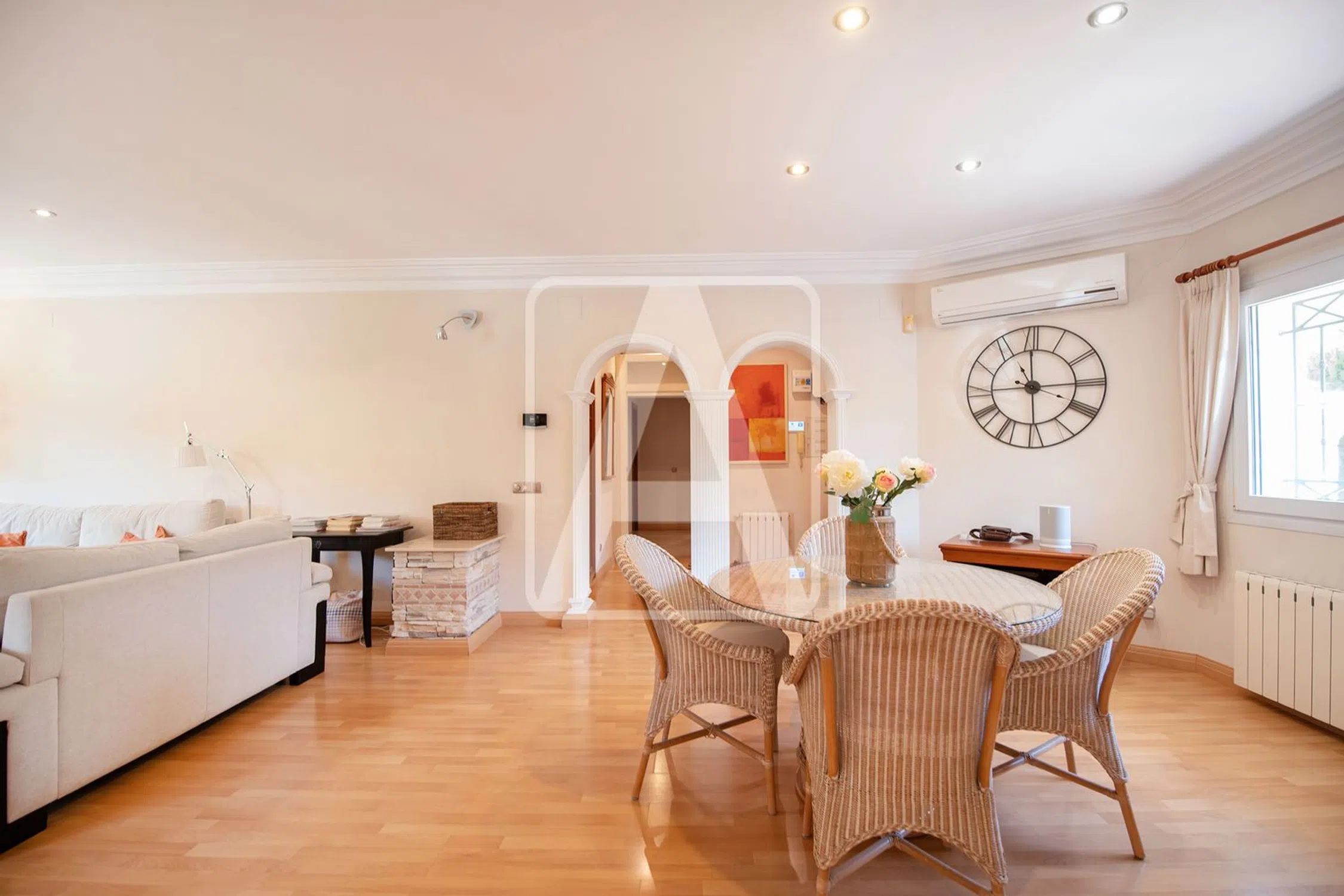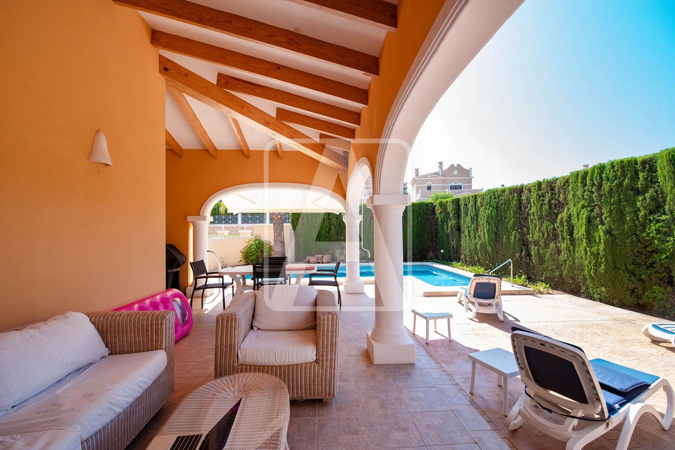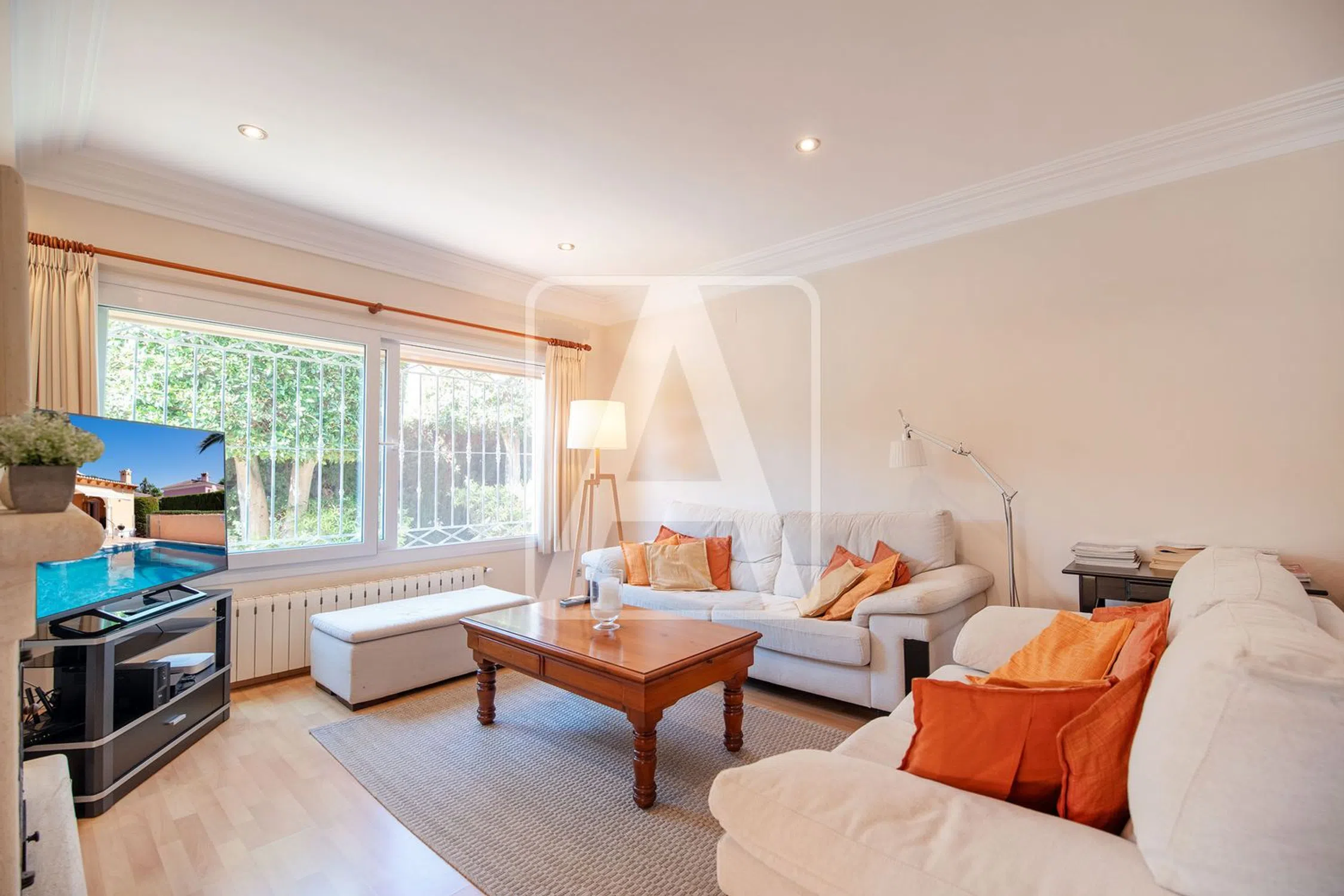 Villa en venta en Calpe, en la urbanización Cometa, situada en una zona residencial consolidada, a 2,4 Km de la encantadora Playa La Fustera y del Paseo Ecológico que recorre el litoral de Benissa, a 2,5 Km de la Playa Levante La Fosa (Calpe) y muy bien comunicada con Calpe que ofrece las mejores playas de la Costa Blanca junto con todo tipo de facilidades y comercios, servicios médicos y una amplia oferta de ocio y restauración. Esta bonita villa de diseño mediterráneo disfruta de mucha tranquilidad y privacidad y de bastante sol (orientación Sureste). Está ubicada en una parcela llana de 830 m2 y cuenta con una superficie total construida de 180 m2 distribuida en una sola planta de la siguiente manera: hall de entrada, distribuidor, 3 dormitorios (17 m2 + 14 m2 + 12 m2), 2 baños (1 en-suite), lavadero y fabuloso salón-comedor-cocina (concepto todo abierto, en conjunto 55 m2), que se conecta con un porche (25 m2) con cocina de verano y barbacoa integrada, que a su vez se fusiona con la terraza exterior, donde tenemos la piscina climatizada de 8x4 metros y zona de comedor y chill-out. Esta propiedad ha sido construida en el año 2002, muy bien mantenida a lo largo de los años y en la actualidad se encuentra en muy buen estado. Está equipada con calefacción central, con aire acondicionado (4 splits, calor y frío), con instalación fotovoltaica (4,5 KW, 10 paneles solares), con alarma, con cámaras exteriores.. . También disfruta de una pérgola (15 m2) para 1 vehículo ubicada estratégicamente junto a la entrada principal y de amplia zona de aparcamiento exterior para varios vehículos. El jardín es bonito y de bajo mantenimiento y en él tenemos una casita de madera que sirve como trastero. Esta residencia destaca por su tranquilidad, su privacidad y su excelente ubicación. Para recibir más información sobre esta propiedad, póngase en contacto con AREA Costa Blanca. AREA Costa Blanca - su agente para propiedades en venta en Calpe - Costa Blanca - España. AREA Costa Blanca está orgullosa de ser una de las mejores agencias inmobiliarias en la Costa Blanca. En AREA Costa Blanca trabajamos para ofrecer el mejor servicio asesorando a nuestros clientes en la compraventa de propiedades inmobiliarias. Contamos con un equipo profesional de larga experiencia en el sector inmobiliario. Nuestro principio fundamental es la calidad del servicio prestado y la satisfacción del cliente. Nuestra experiencia y actitud, su garantía de éxito.
