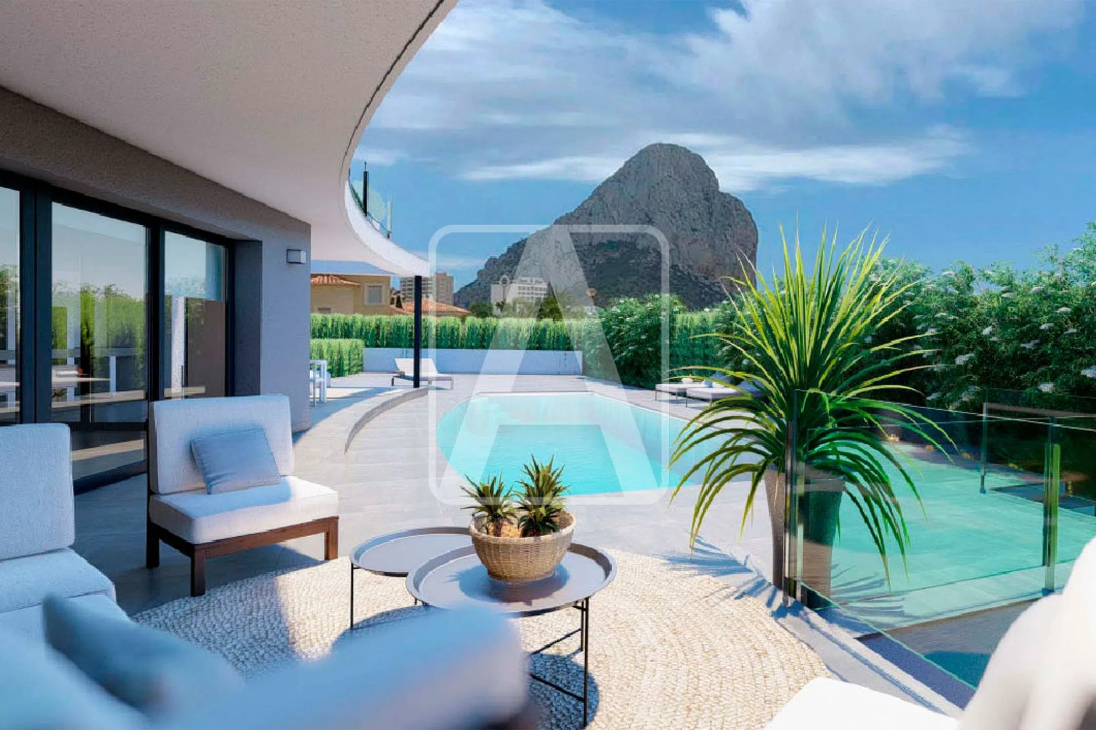 Villa de diseño moderno de nueva construcción en venta en Calpe, en urbanización Enchinent (Marysol Park), a 1 Km (12 minutos andando) de la Playa Poniente Arenal Bol (Calpe) y a 1,4 Km de la Playa Levante La Fosa (Calpe) y también a 1,4 Km del centro urbano de Calpe que ofrece todo tipo de servicios y facilidades. Esta estupenda villa disfruta de bonitas vistas al mar, al Peñón de Ifach (símbolo de la Costa Blanca) y al humedal de las Salinas, de mucho sol (orientación Sur) y de mucha tranquilidad (calle sin tráfico). Está ubicada en una parcela de 890 m2 y tiene una superficie total construida de 375 m2, distribuidos en dos plantas + sótano de la siguiente forma: en la planta principal tenemos 1 amplio dormitorio de 15 m2 con 1 baño en-suite, 1 aseo de invitados, amplio salón comedor cocina (concepto todo abierto + isla, en total 60 m2) y fabuloso porche de 40 m2 (que integra una estupenda barbacoa con cocina y comedor de verano), que conecta directamente con la amplia terraza exterior de 100 m2 donde tenemos una bonita piscina rectangular de 40 m2. En la planta alta tenemos 3 amplios dormitorios (20 m2 + 14 m2 + 14 m2), 3 baños en-suite y amplia terraza privada de 50 m2. En la planta sótano tenemos un amplio garaje doble, 1 impresionante dormitorio de 30 m2 con zona de vestidor y 1 baño en-suite (con bañera flotante), amplio lavadero de 10 m2, zona de gimnasio (sala polivalente) de 30 m2, 1 baño completo y trastero de 10 m2. Esta propiedad destaca por su bonito diseño vanguardista, por la luminosidad de sus espacios y por sus calidades y acabados. Está equipada con suelo radiante (sistema aerotermia, máxima eficiencia, mínimo consumo), climatización por conductos (calor y frío), carpintería exterior de alta gama con persianas motorizadas y control solar, cocina de diseño totalmente equipada, baños de diseño, suelos porcelánicos, iluminación LED… Además, esta propiedad disfruta de amplia zona de aparcamiento exterior para varios vehículos, (+4). Para recibir más información sobre esta propiedad, póngase en contacto con AREA Costa Blanca. AREA Costa Blanca - su agente para propiedades en venta en Calpe - Costa Blanca - España. AREA Costa Blanca está orgullosa de ser una de las mejores agencias inmobiliarias en la Costa Blanca. En AREA Costa Blanca trabajamos para ofrecer el mejor servicio asesorando a nuestros clientes en la compraventa de propiedades inmobiliarias. Contamos con un equipo profesional de larga experiencia en el sector inmobiliario. Nuestro principio fundamental es la calidad del servicio prestado y la satisfacción del cliente. Nuestra experiencia y actitud, su garantía de éxito.