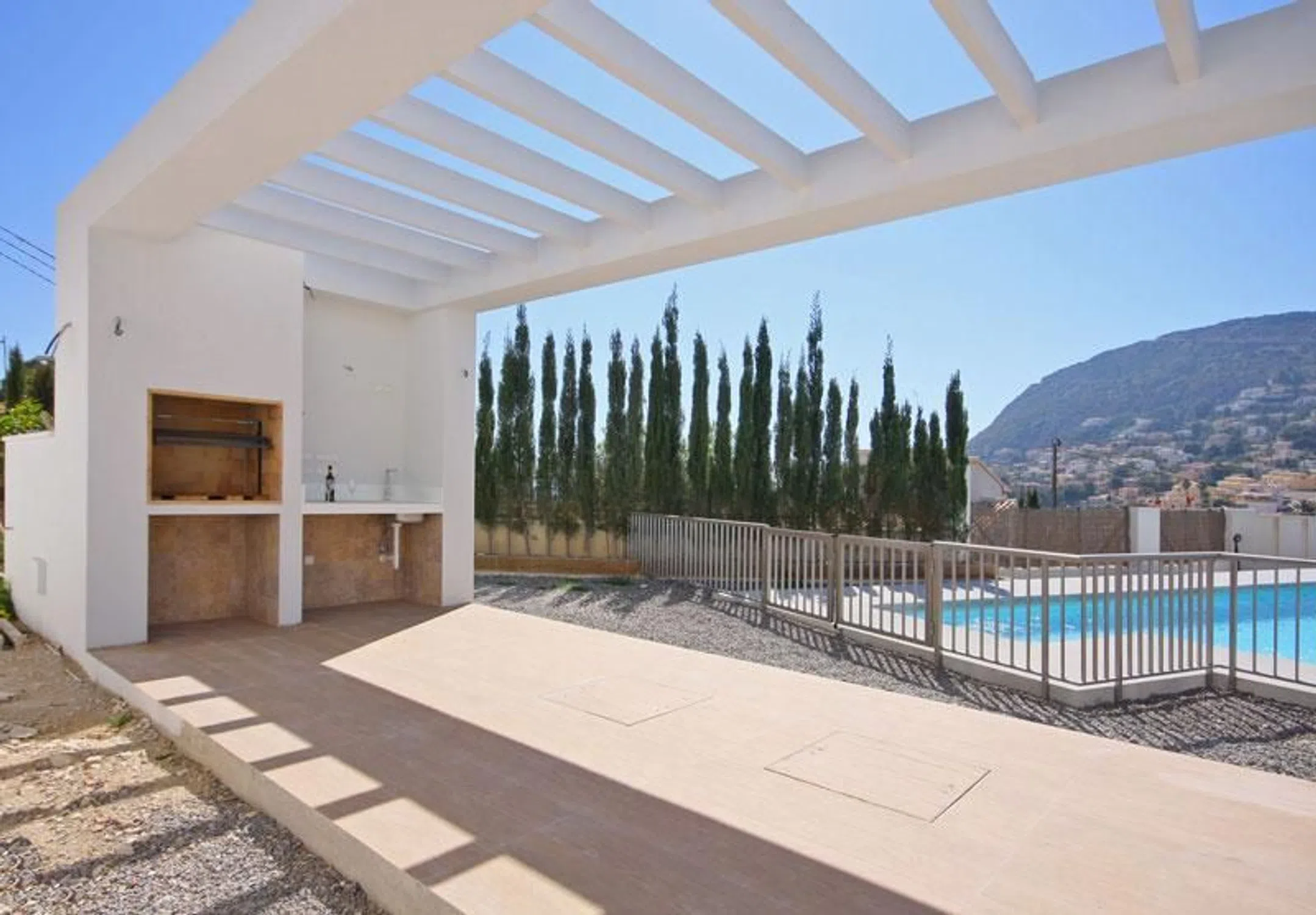 ¡Descubre esta espectacular villa en Calpe, un verdadero oasis de lujo y confort! Con una orientación sur que garantiza una excelente luminosidad, esta propiedad cuenta con impresionantes vistas al mar y a la encantadora Maryvilla. Con 5 amplios dormitorios y 3 baños, cada rincón de esta casa ha sido diseñado para ofrecer comodidad y estilo. El amplio salón-comedor es perfecto para disfrutar de momentos en familia, mientras que la cocina equipada te invita a explorar tu talento culinario. La villa se extiende sobre una parcela de 900 m², donde encontrarás varias zonas exteriores ideales para relajarte. Disfruta del sol en las tres terrazas o refréscate en la piscina privada. Además, un jacuzzi te espera para esos momentos de relax que tanto mereces. La propiedad incluye un garaje y parking, así como trastero y barbacoa para disfrutar de agradables veladas al aire libre. Ubicada a solo 500 metros de la playa y muy cerca del centro de Calpe, tendrás acceso a todo lo que necesitas. La famosa Terra Mítica está a solo 25 km, y el aeropuerto de Alicante se encuentra a 85 km, facilitando tus viajes. Con suelo radiante y aire acondicionado, esta villa combina elegancia y funcionalidad en cada detalle. ¡No dejes pasar la oportunidad de vivir en este paraíso en la Costa Blanca!