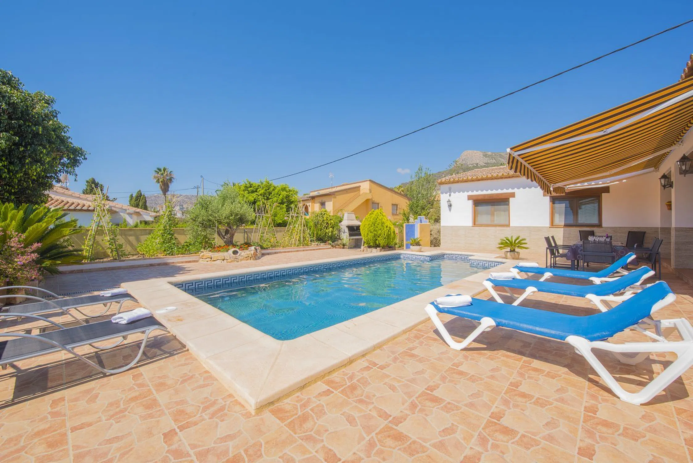 Esta excepcional villa en venta en Calpe ofrece el equilibrio perfecto entre comodidad y estilo. Con 4 dormitorios y 3 baños, esta propiedad cuenta con una amplia terraza para disfrutar del clima mediterráneo. Situada en una zona residencial tranquila, cerca de parques, comercios, restaurantes y con fácil acceso a la carretera, es un lugar ideal para aquellos que aspiran a tener un hogar en un entorno privilegiado. Amplio salón-comedor con chimenea, cocina independiente totalmente equipada y amueblada y con una zona de comedor, 4 dormitorios amplios con armarios empotrados, 2 baños con ducha y un baño en suite con bañera en el dormitorio principal, amplia terraza y piscina. Se vende semi-amueblada. Está en buen estado y es una ocasión única para disfrutar de la vida en la costa. ¡No dejes pasar esta oportunidad! Hay instalación de aire acondicionado y calefacción. La casa está construida en una sola planta. En la parte de abajo hay un amplio almacén. Tiene orientación sur, es muy luminosa se disfruta en toda la propiedades de unas vistas despejadas.