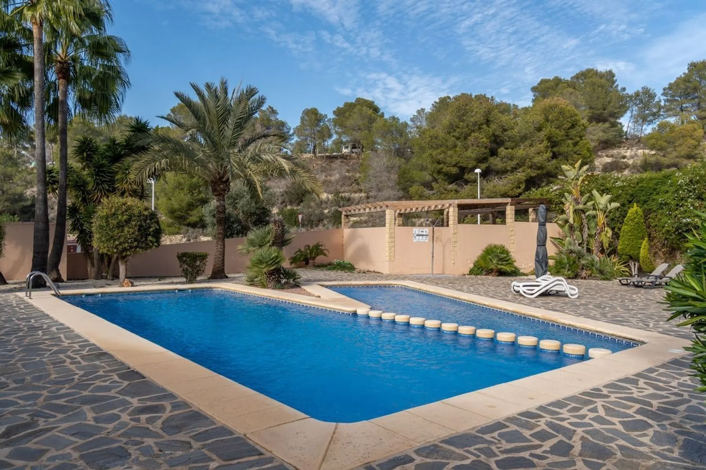 Envuelta por la luz dorada del Mediterráneo, esta elegante villa adosada de esquina se revela como un refugio privado donde la serenidad, el confort y la naturaleza conviven en perfecta armonía. Distribuida en dos niveles cuidadosamente pensados, la vivienda ofrece una sensación inmediata de amplitud y equilibrio, con estancias que fluyen de manera natural y una atmósfera cálida que invita a quedarse. El espacio principal combina salón y cocina abierta en un entorno luminoso y acogedor, ideal tanto para el disfrute cotidiano como para recibir invitados con estilo. La luz acompaña cada momento del día, realzando la calma del interior y conectando visualmente con el paisaje abierto que rodea la propiedad. En la planta superior, las zonas de descanso se abren a una terraza elevada, un lugar privilegiado para comenzar el día con aire puro o despedir la tarde contemplando montañas bañadas por el sol y sutiles destellos del mar en el horizonte. El exterior es un verdadero oasis mediterráneo. Un jardín privado, cuidadosamente mantenido, rodea la vivienda y aporta una sensación de intimidad poco habitual. Las terrazas, tanto delanteras como posteriores, invitan a desayunos al sol, largas sobremesas y noches tranquilas bajo el cielo estrellado. Su posición de esquina y la ausencia de edificaciones cercanas garantizan vistas despejadas y una privacidad excepcional. La propiedad se integra en un conjunto residencial selecto y muy tranquilo, con zonas comunes amplias, jardines impecables y una piscina que evoca la calma de un pequeño resort. Todo está diseñado para disfrutar del tiempo libre sin renunciar a la paz ni a la exclusividad. El entorno natural, casi boscoso, ofrece contacto directo con la naturaleza y un estilo de vida activo y relajado a la vez. Este hogar goza de una orientación privilegiada que asegura sol durante todo el día y una sensación constante de bienestar. Es una residencia que no solo se habita, se siente. Un lugar donde la vida adquiere otro ritmo, definido por la luz, la privacidad y la esencia más auténtica del Mediterráneo. [IW].