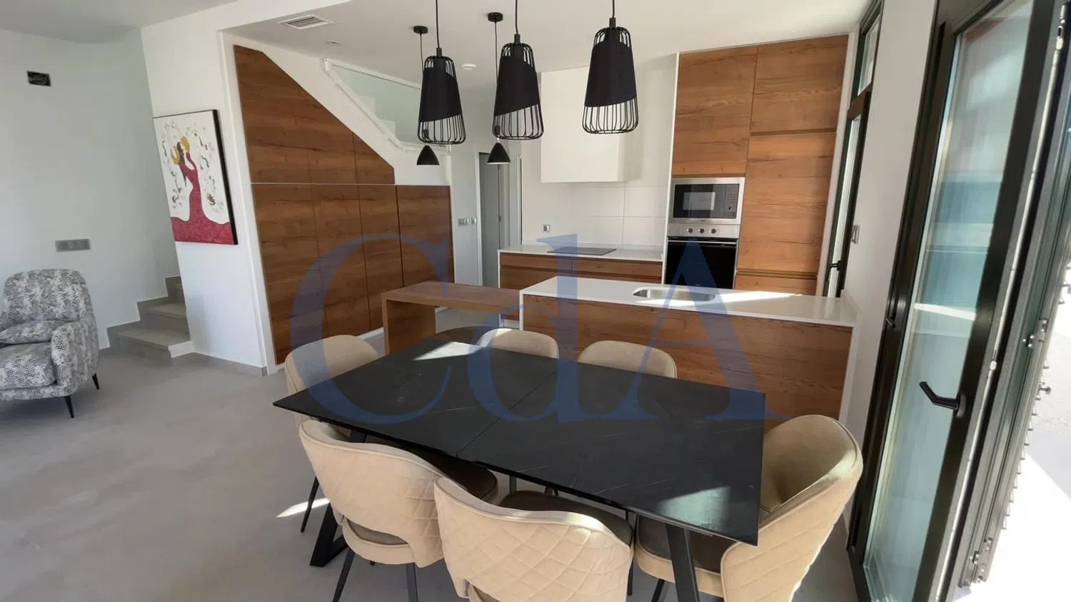 Encantadora villa independiente en un entorno pintoresco, ideal para quienes buscan un estilo de vida relajante y confortable. Esta hermosa propiedad cuenta con un amplio salón comedor que incluye una acogedora chimenea, así como una cocina abierta que invita a disfrutar de momentos en familia y con amigos. Dispone de tres dormitorios, cada uno con armarios empotrados y baño en suite, ofreciendo así máxima privacidad y confort. Además, las puertas de los dormitorios se abren directamente a una maravillosa terraza que se conecta con la piscina, brindando un acceso inmediato al espacio exterior.