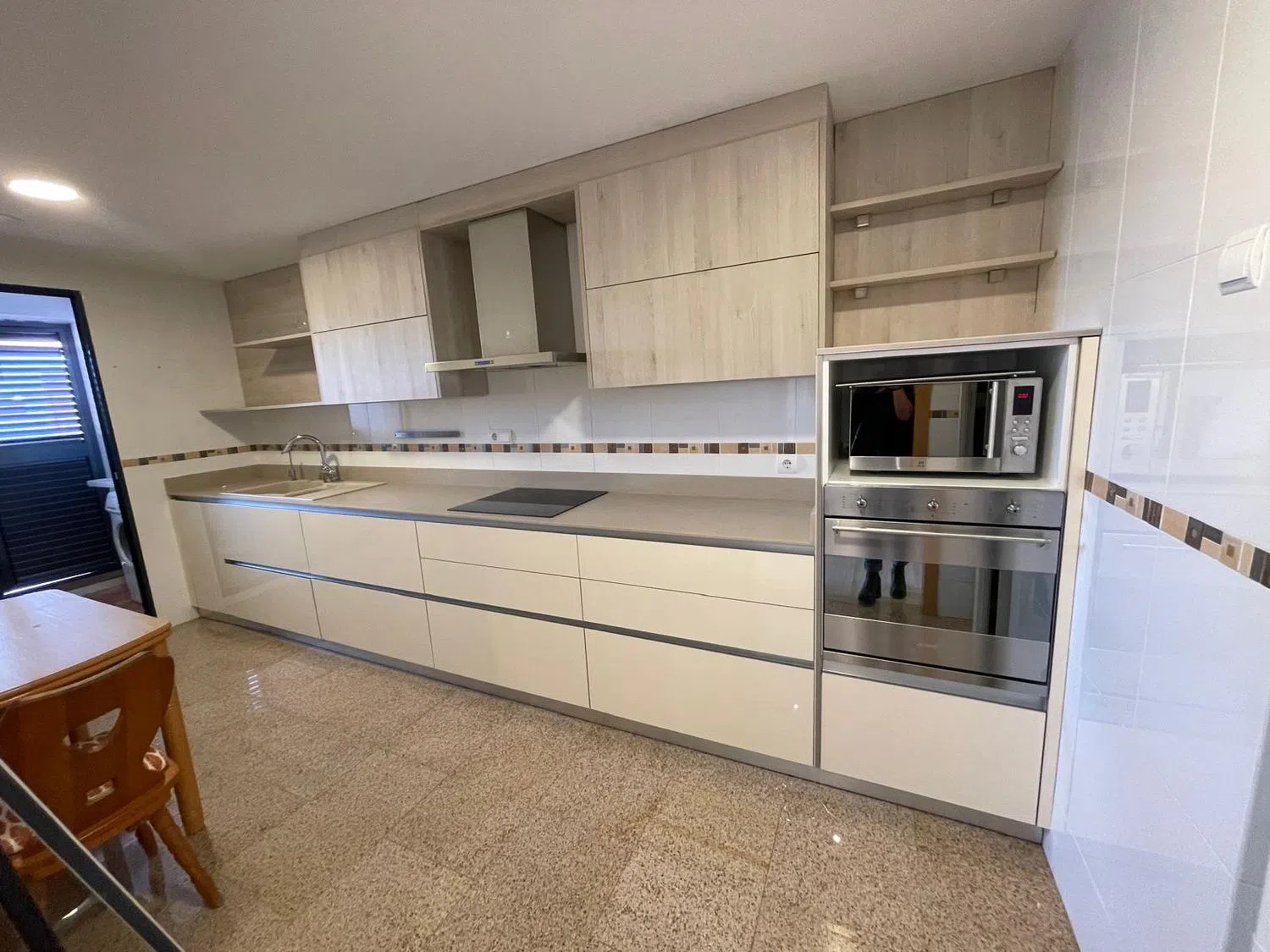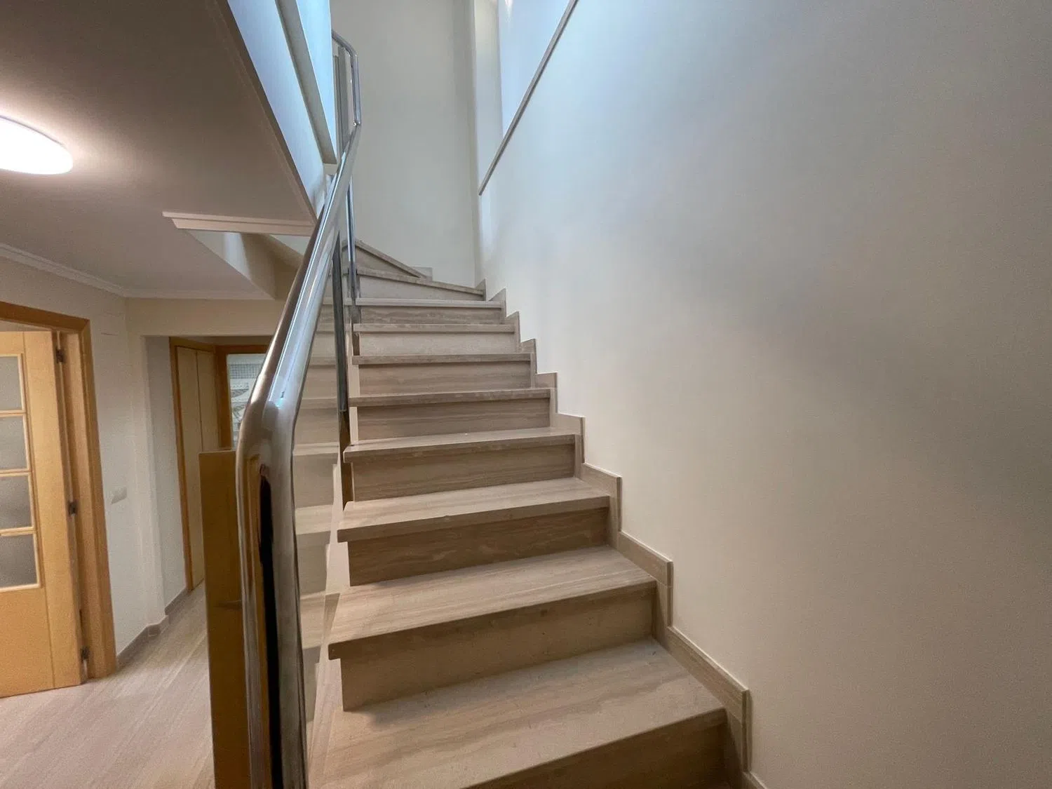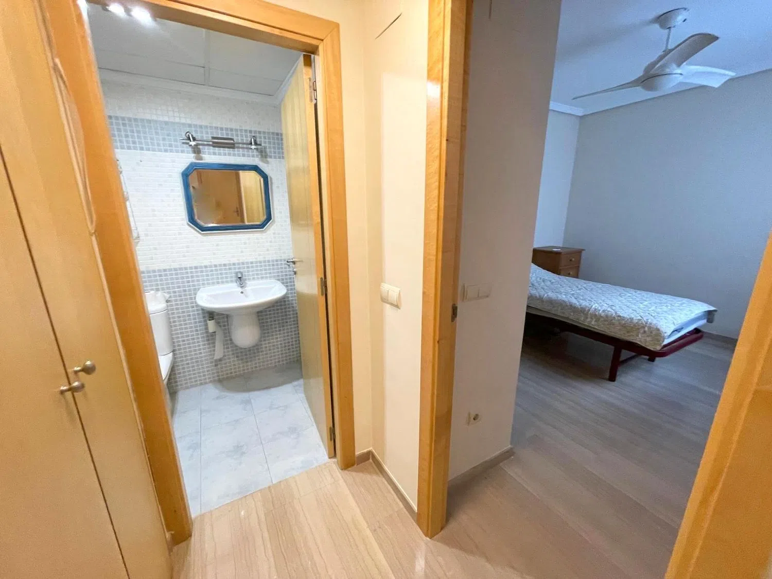 En la planta superior se hallan un dormitorio individual, uno doble con vestidor privado y acceso a otra terraza, además de un baño en suite que garantiza máxima comodidad. La propiedad está equipada con aire acondicionado, ventiladores de techo, un elegante suelo de mármol y una puerta de seguridad. Incluye también una plaza de garaje doble. La urbanización es de cuidado impecable, con amplias zonas verdes y una zona de piscina de generosas dimensiones, perfecta para disfrutar en días soleados. Su ubicación es privilegiada, a pocos pasos de todos los servicios requeridos y a corta distancia de la playa.