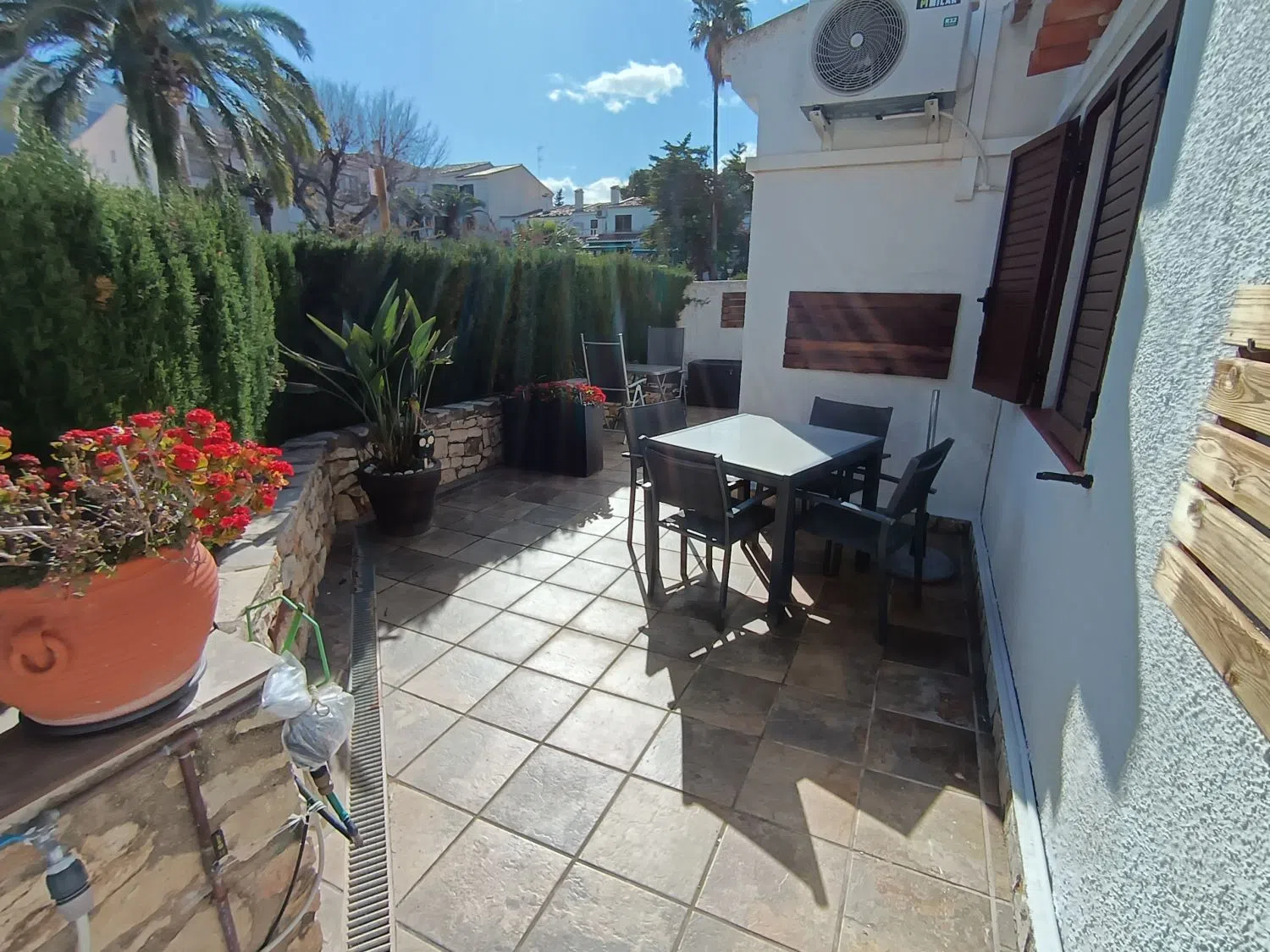 SE VENDE ENCANTADOR ADOSADO TOTALMENTE REFORMADO Y AMUEBLADO EN ZONA DE ALTA DEMANDA. ¡No dejes pasar la oportunidad de adquirir este precioso bungalow en Dénia, en la exclusiva zona de Capsades! Rodeado de amplias zonas verdes que invitan a disfrutar de un entorno natural y a tan solo 10 minutos a pie del centro de Denia y a 5 minutos de supermercados, etc. Esta vivienda se encuentra en planta baja y cuenta con una distribución funcional y acogedora: Salón-comedor con chimenea, ideal para relajarte o disfrutar de agradables veladas. Cocina americana completamente amueblada y equipada con electrodomésticos de alta calidad, perfecta para preparar tus platos favoritos. 3 dormitorios: dos en la planta baja y uno en un altillo accesible a través de escaleras interiores. 2 baños completos, ambos con ducha moderna. Aire acondicionado instalado, para tu comodidad durante todo el año. Totalmente amueblada, lista para entrar a vivir sin preocupaciones. En el exterior, podrás disfrutar de 2 amplias terrazas: Una delantera con barbacoa, perfecta para compartir momentos al aire libre. Otra trasera, que da acceso directo a las zonas comunes de la urbanización, donde se encuentran la piscina y hermosos jardines bien cuidados. Este bungalow es la opción perfecta para quienes buscan tranquilidad y confort. ¡No dejes escapar esta oportunidad única! Ven a verlo cuanto antes y hazlo tuyo.
