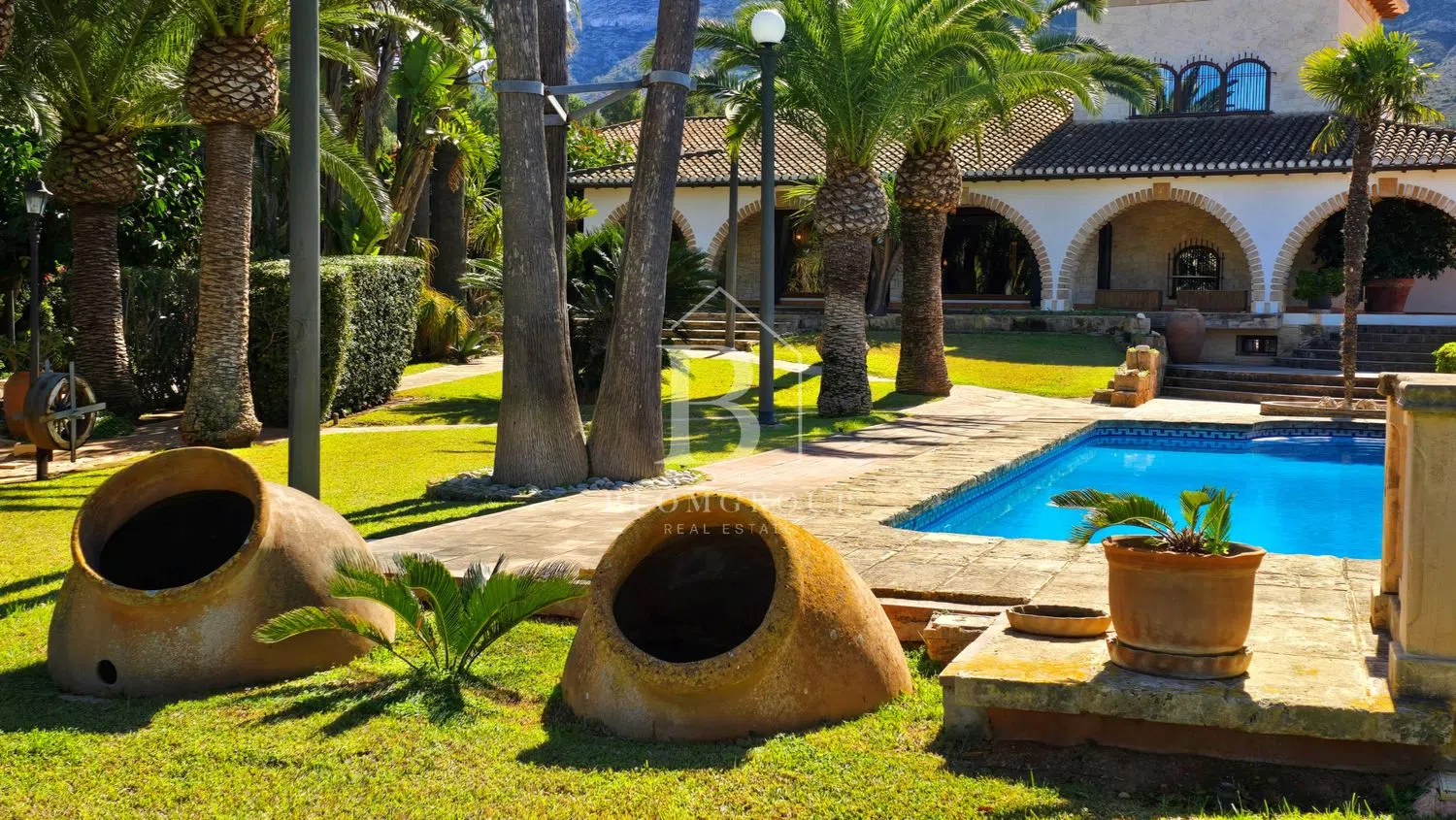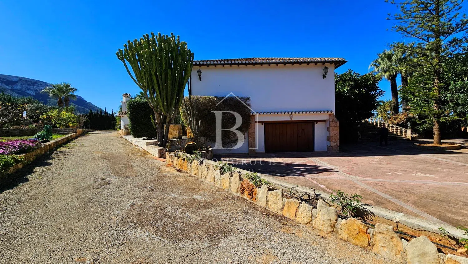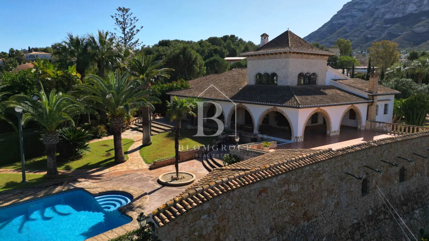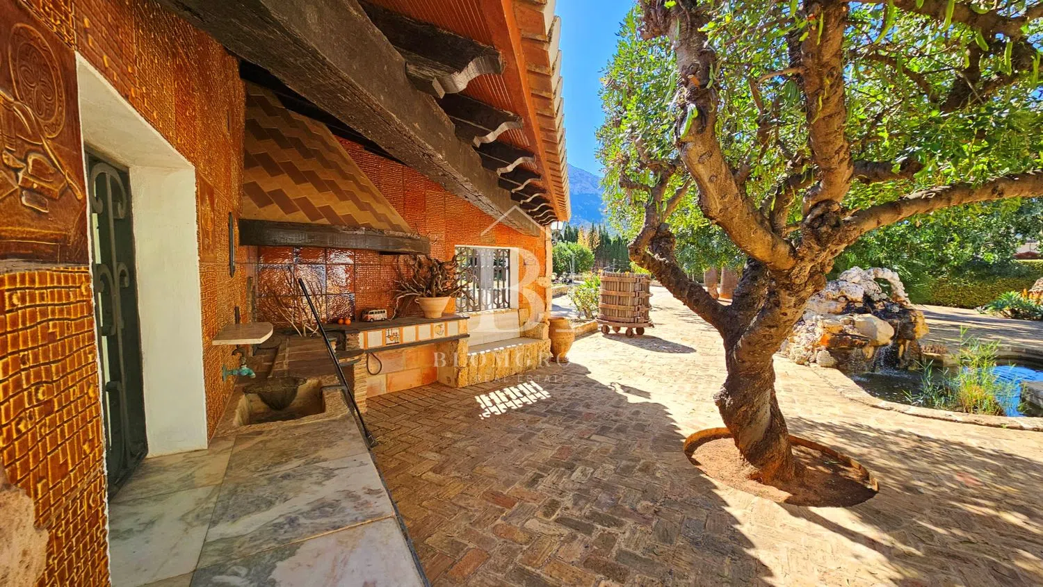 Imponente mansion rustica de piedra natural con piscina, jardín de palmeras y parcela independiente y tranquila, con espectaculares vistas panorámicas al mar y montaña, a pocos minutos del mar y del centro de Denia’ Exclusiva propiedad aislada de aproximadamente 6.000 metros cuadrados, caracterizada por sus dominantes muros de piedra natural. Una rareza por los exquisitos materiales utilizados, como muros macizos de piedra natural, madera antigua de Movila, rejas de hierro forjado alrededor de las puertas, faroles antiguos, terrazas de ladrillos de barro de 200 años de antigüedad, antiguas escaleras de Tosca, singulares azulejos valencianos hechos a mano. de Manises y sistema de canalones de cobre con cabeza de dragón -Gárgolas, bodega con gruta de piedra natural. Cerca del centro de la ciudad y de su puerto deportivo en una ubicación privilegiada. Plantas baja y alta: La propiedad con más de 1000 metros cuadrados de superficie habitable ofrece 5 dormitorios, 4 baños, sala de estar y vista al jardín de palmeras y a la piscina en 3 niveles, 1 amplio salón en 3 niveles con área de TV separada, gran salón con altura de un metro techos, área de bar y galería con torre, todas las áreas conectadas a través de la chimenea de cobre abierta de 360 grados de un metro de altura protegida por vidrio ignífugo. Partes del área de la galería están ubicadas en una torre con muros de piedra natural y vistas a Denia, el puerto deportivo, el castillo y el mar. En la sala de estar se han instalado ventanas panorámicas de suelo a techo con acristalamiento aislante que filtra los rayos UV, que ofrecen una vista única del jardín de palmeras y de la zona de la piscina, que se ilumina por la noche y se funde con el mar en el horizonte. Particularmente destacable en esta planta es la terraza parcialmente cubierta y parcialmente descubierta con más de 200m2 de espacio y hermosos arcos y elementos hechos de Jávea-Tosca original y vigas de madera en el techo. Da a la piscina y al jardín. El sótano tiene su propia sala de estar con chimenea, terraza, cocina, baño, amplio salón con paredes de piedra natural y una extraordinaria bodega excavada en la roca con una gruta de piedra natural. También hay un garaje muy espacioso en el sótano con capacidad para varios vehículos con varias habitaciones de servicio como el buggy y el lavadero con ventanas al jardín y varios trasteros. Zona exterior con propiedad independiente no urbanizable: La casa está integrada, casi circularmente, en amplias y cubiertas terrazas para tomar el sol. El jardín incluye una zona de barbacoa cubierta con horno de leña, una zona de bar en la piscina cubierta, una impresionante piscina profunda y grande, de 12 x 6 m, enmarcada por antiguas piedras toscanas, un hermoso estanque de peces de piedra natural con una cascada y sistema de filtración de oasis, así como un impresionante jardín con árboles de 1000 años con más de 50 palmeras, varios cítricos y muchos árboles frutales, viejos algarrobos, olivos y cauchos. El acceso se realiza a través de un camino privado con portones dobles eléctricos. El acceso es posible a través de 3 puertas diferentes de hierro forjado. Una magnífica escalera antigua de Tosca conduce a la casa. El tiempo de construcción de esta propiedad única en estilo tradicional español fue de aproximadamente 6 años, debido, entre otras cosas, a los bloques de piedra natural tachonados a mano que hacen que la casa y el impresionante muro exterior sean tan únicos. Un maravilloso refugio con el más alto nivel de privacidad, en medio de una de las ubicaciones preferidas de Denia. La vivienda tambien incluye: -Aire acondicionado -Pozo de agua propio y aljibes (60.000/30.000/5.000L) para abastecimiento de la casa, piscina, riego automático del jardín. -Dormitorios con madera de roble/armarios empotrados. -Ventanas con rejas y enormes portones de hierro. -puerta de garaje eléctrica -Televisión con Satelite.