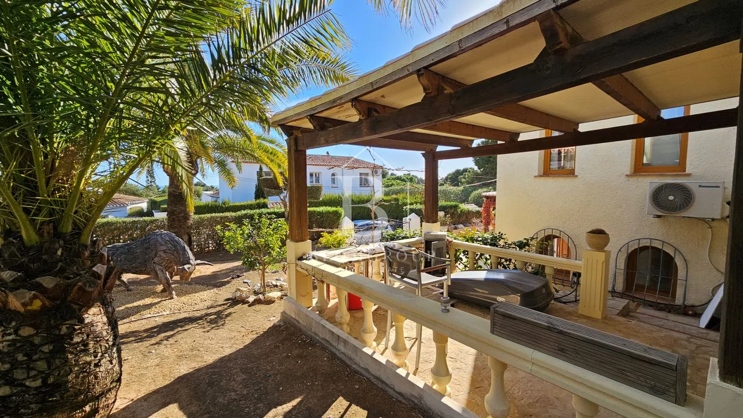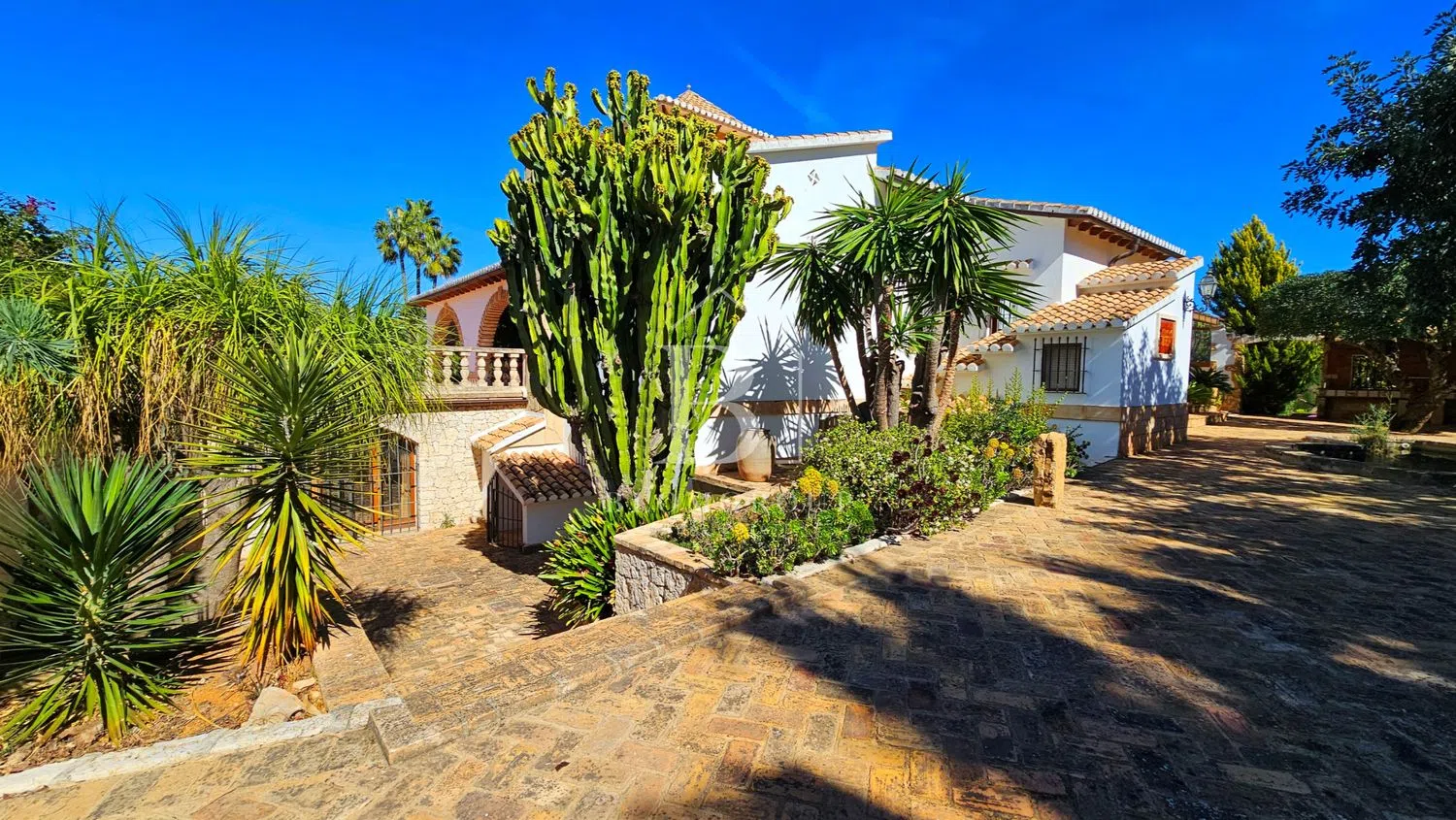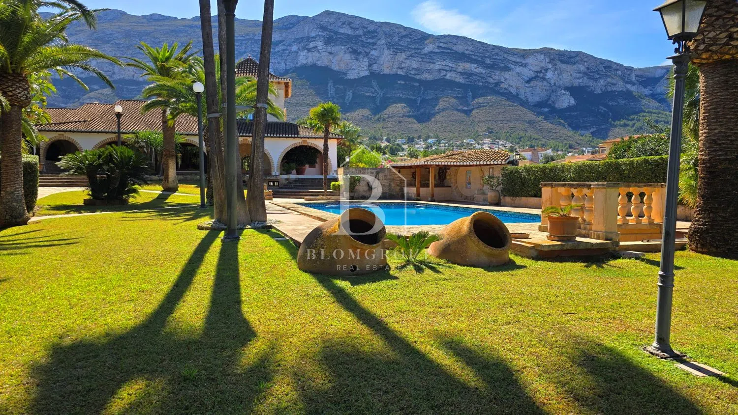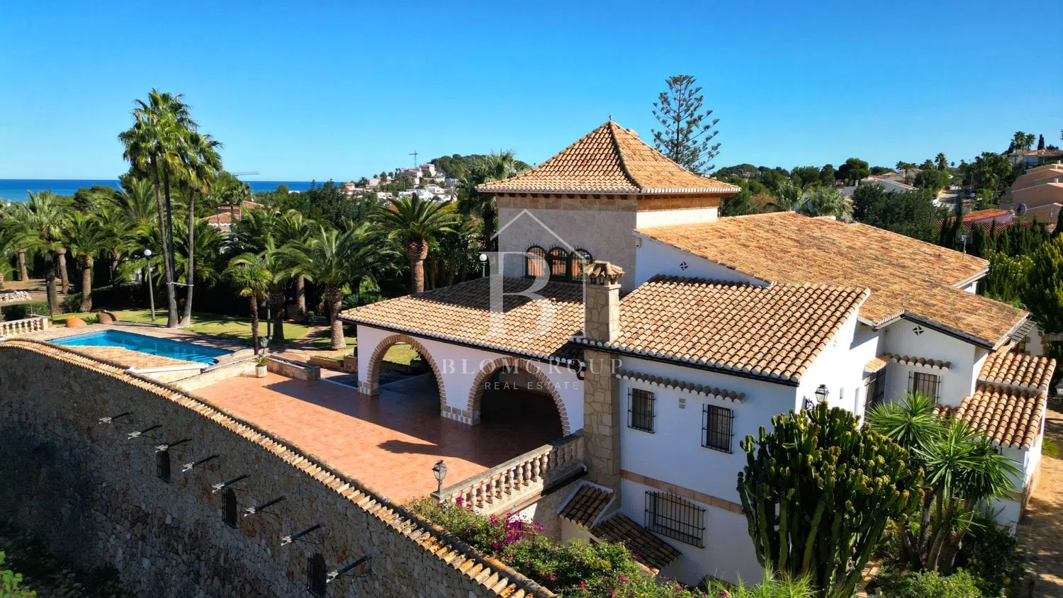 Imponente mansion rustica de piedra natural con piscina, jardín de palmeras y parcela independiente y tranquila, con espectaculares vistas panorámicas al mar y montaña, a pocos minutos del mar y del centro de Denia’ Exclusiva propiedad aislada de aproximadamente 6.000 metros cuadrados, caracterizada por sus dominantes muros de piedra natural. Una rareza por los exquisitos materiales utilizados, como muros macizos de piedra natural, madera antigua de Movila, rejas de hierro forjado alrededor de las puertas, faroles antiguos, terrazas de ladrillos de barro de 200 años de antigüedad, antiguas escaleras de Tosca, singulares azulejos valencianos hechos a mano. de Manises y sistema de canalones de cobre con cabeza de dragón -Gárgolas, bodega con gruta de piedra natural. Cerca del centro de la ciudad y de su puerto deportivo en una ubicación privilegiada. Plantas baja y alta: La propiedad con más de 1000 metros cuadrados de superficie habitable ofrece 5 dormitorios, 4 baños, sala de estar y vista al jardín de palmeras y a la piscina en 3 niveles, 1 amplio salón en 3 niveles con área de TV separada, gran salón con altura de un metro techos, área de bar y galería con torre, todas las áreas conectadas a través de la chimenea de cobre abierta de 360 grados de un metro de altura protegida por vidrio ignífugo. Partes del área de la galería están ubicadas en una torre con muros de piedra natural y vistas a Denia, el puerto deportivo, el castillo y el mar. En la sala de estar se han instalado ventanas panorámicas de suelo a techo con acristalamiento aislante que filtra los rayos UV, que ofrecen una vista única del jardín de palmeras y de la zona de la piscina, que se ilumina por la noche y se funde con el mar en el horizonte. Particularmente destacable en esta planta es la terraza parcialmente cubierta y parcialmente descubierta con más de 200m2 de espacio y hermosos arcos y elementos hechos de Jávea-Tosca original y vigas de madera en el techo. Da a la piscina y al jardín. El sótano tiene su propia sala de estar con chimenea, terraza, cocina, baño, amplio salón con paredes de piedra natural y una extraordinaria bodega excavada en la roca con una gruta de piedra natural. También hay un garaje muy espacioso en el sótano con capacidad para varios vehículos con varias habitaciones de servicio como el buggy y el lavadero con ventanas al jardín y varios trasteros. Zona exterior con propiedad independiente no urbanizable: La casa está integrada, casi circularmente, en amplias y cubiertas terrazas para tomar el sol. El jardín incluye una zona de barbacoa cubierta con horno de leña, una zona de bar en la piscina cubierta, una impresionante piscina profunda y grande, de 12 x 6 m, enmarcada por antiguas piedras toscanas, un hermoso estanque de peces de piedra natural con una cascada y sistema de filtración de oasis, así como un impresionante jardín con árboles de 1000 años con más de 50 palmeras, varios cítricos y muchos árboles frutales, viejos algarrobos, olivos y cauchos. El acceso se realiza a través de un camino privado con portones dobles eléctricos. El acceso es posible a través de 3 puertas diferentes de hierro forjado. Una magnífica escalera antigua de Tosca conduce a la casa. El tiempo de construcción de esta propiedad única en estilo tradicional español fue de aproximadamente 6 años, debido, entre otras cosas, a los bloques de piedra natural tachonados a mano que hacen que la casa y el impresionante muro exterior sean tan únicos. Un maravilloso refugio con el más alto nivel de privacidad, en medio de una de las ubicaciones preferidas de Denia. La vivienda tambien incluye: -Aire acondicionado -Pozo de agua propio y aljibes (60.000/30.000/5.000L) para abastecimiento de la casa, piscina, riego automático del jardín. -Dormitorios con madera de roble/armarios empotrados. -Ventanas con rejas y enormes portones de hierro. -puerta de garaje eléctrica -Televisión con Satelite.