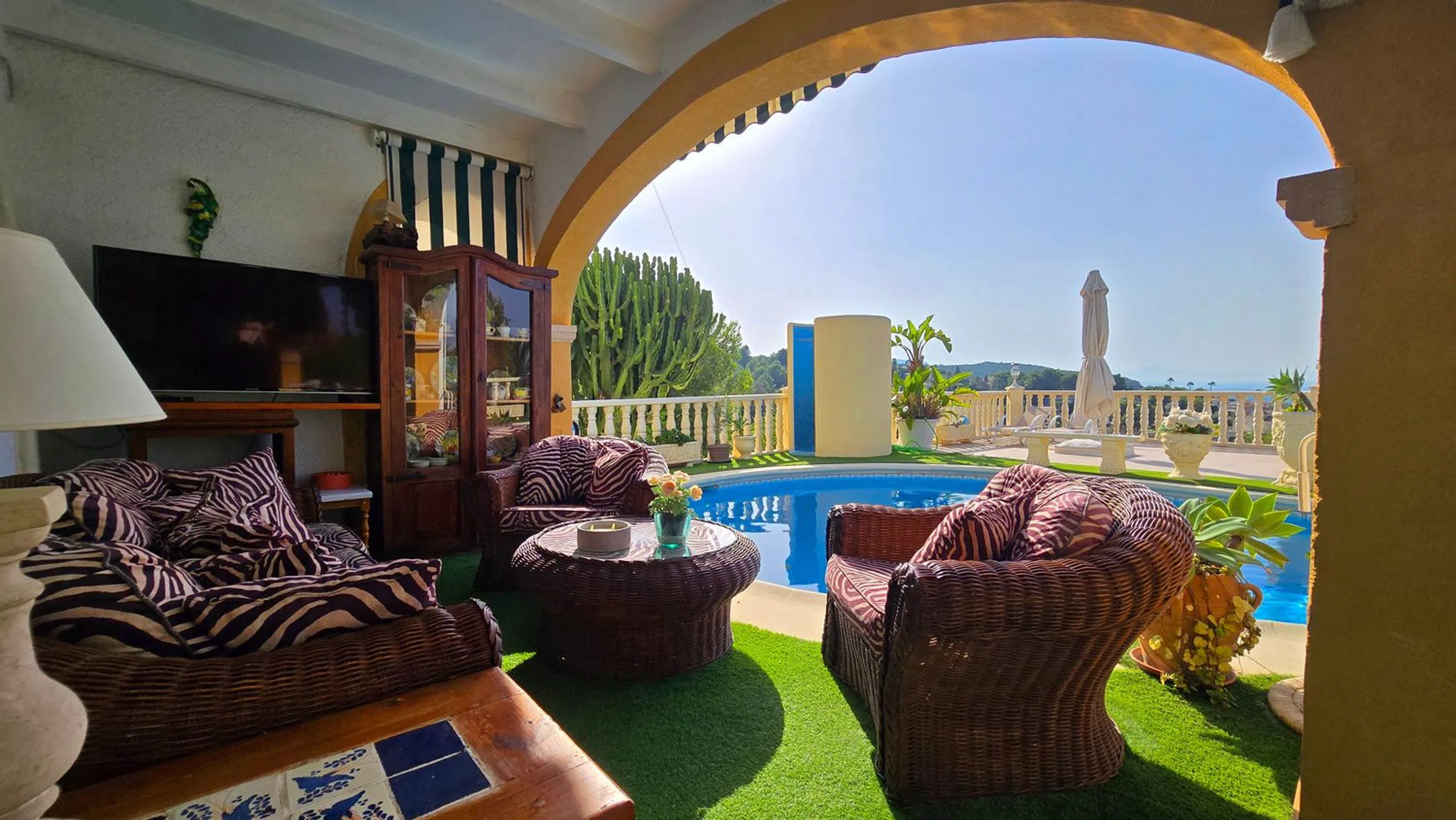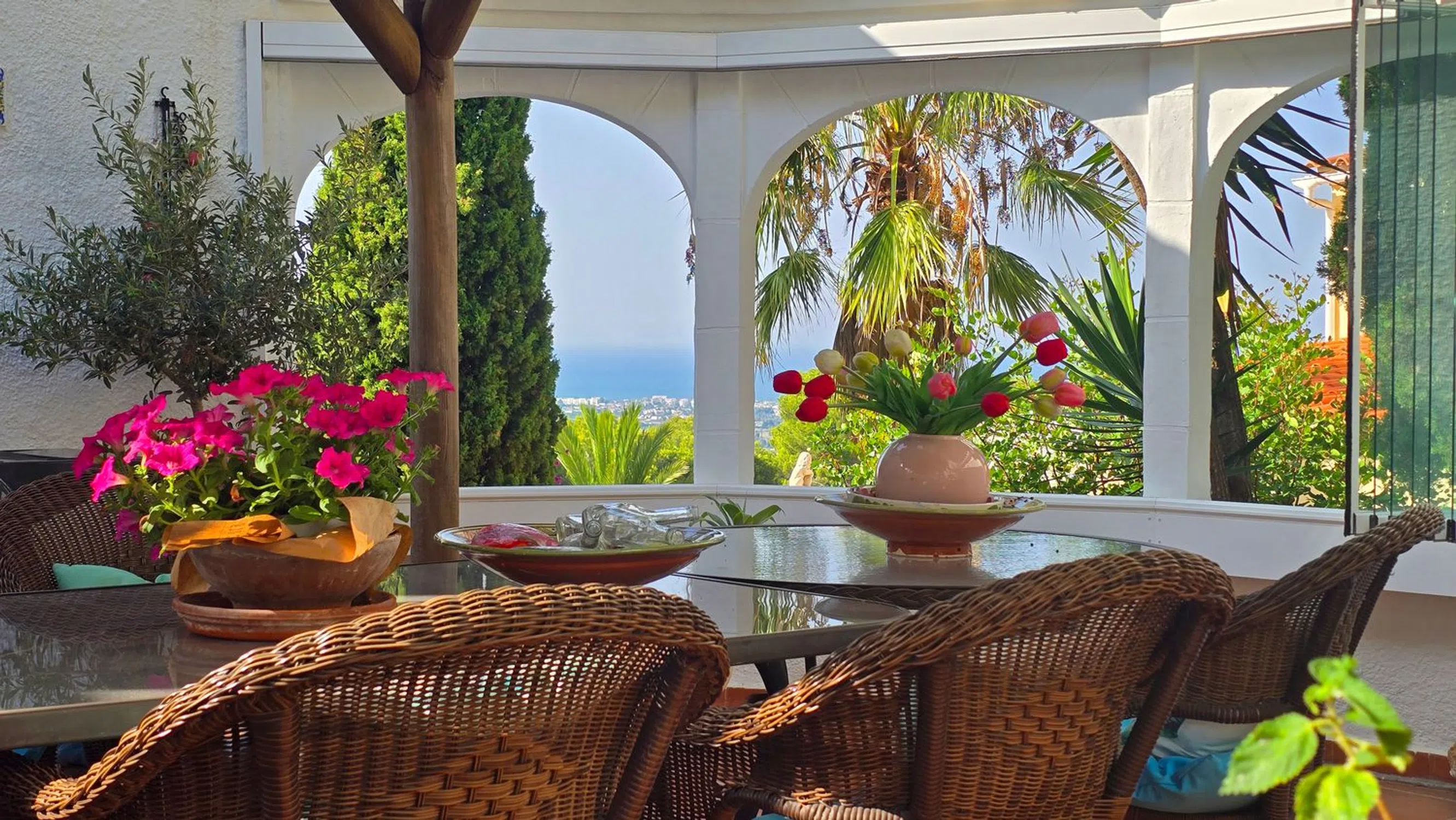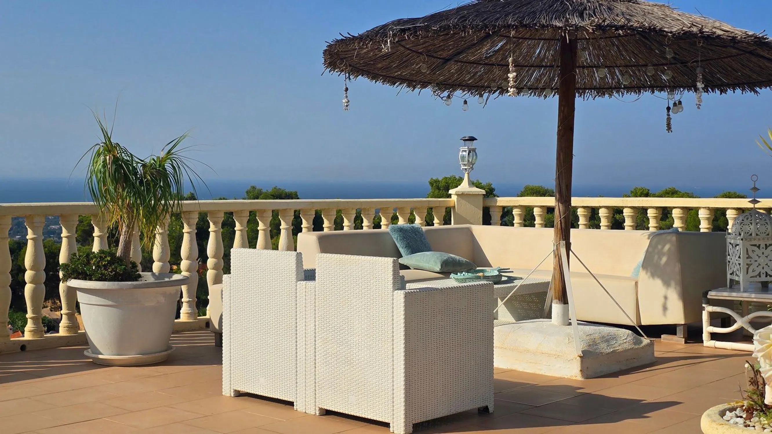 En lo alto de Marquesa V, esta villa ofrece una de las vistas más impresionantes de Dénia. Desde el castillo hasta Cullera, la costa se despliega en un solo panorama, con la ciudad y el mar a tus pies. Situada al final de una tranquila calle sin salida, la propiedad cuenta con la rara comodidad de dos accesos desde calles diferentes, cada uno con su propio garaje doble. A pesar de la privacidad, estás a solo cinco minutos del centro de Dénia y de todos sus servicios. La planta principal te recibe con un amplio y luminoso salón-comedor, conectado con una cocina semiabierta. En esta planta hay también tres dormitorios y dos baños, además de una escalera interior que conduce a la planta inferior. A lo largo de toda la fachada se extiende un balcón, perfecto para disfrutar de las vistas desde el amanecer hasta la puesta de sol, mientras que una gran terraza en la entrada ofrece otro espacio exterior. Dos escaleras exteriores rodean la casa, comunicando los niveles con facilidad. En la planta inferior se encuentra la zona de la piscina y la gran terraza, que se convierten en el corazón de la vivienda. Aquí está la suite principal con baño en suite y un amplio salón con salida directa a la piscina. Una naya cubierta y una cocina exterior hacen de este nivel el lugar ideal para reuniones y largas veladas de verano. Más abajo, un apartamento de invitados independiente ofrece comodidad y privacidad con su propio salón y cocina americana, dos dormitorios, un baño y una terraza privada. Es una vivienda pensada para familias que desean compartir momentos juntos sin renunciar a su propio espacio. Cada planta ofrece independencia, pero las terrazas, la piscina y la cocina exterior invitan siempre a reunirse. Con carácter, amplitud y unas de las mejores vistas de la costa, es un hogar para vivir el día a día y para disfrutar de encuentros inolvidables.