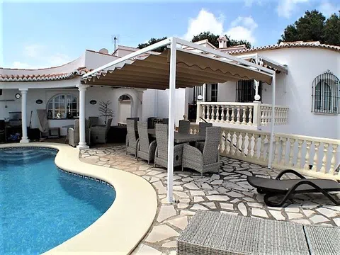 Un gran chalet con apartamento independiente (165m²) ubicado cerca de Denia en una parcela bien mantenida (800m²) rodeado por un jardín bien cuidado. La posición elevada le da a la propiedad vistas panorámicas al mar y la montaña. En excelentes condiciones la propiedad tiene 4 dormitorios y 4 baños en total. Hay una gran sala de estar de planta abierta con cocina moderna totalmente equipada. El comedor se encuentra en una sala contigua. Hay una sala de estar adicional en la parte trasera. El apartamento independiente tiene un salón / comedor de planta abierta y cocina. Hay un dormitorio doble con cuarto de baño con ducha. La piscina (8m x 4m) tiene terraza abierta y cubierta con vistas al mar, ideal para el entretenimiento. Hay una gran terraza en la azotea con vistas sepecatulares. La propiedad tiene doble acristalamiento y aire acondicionado en todas partes. La calefacción se proporciona a través de radiadores eléctricos de mármol y hay un fuego de leña en la segunda sala de estar. Hay un garaje individual y una sala de utilidades integrales, y un estacionamiento seguro para varios vehículos.