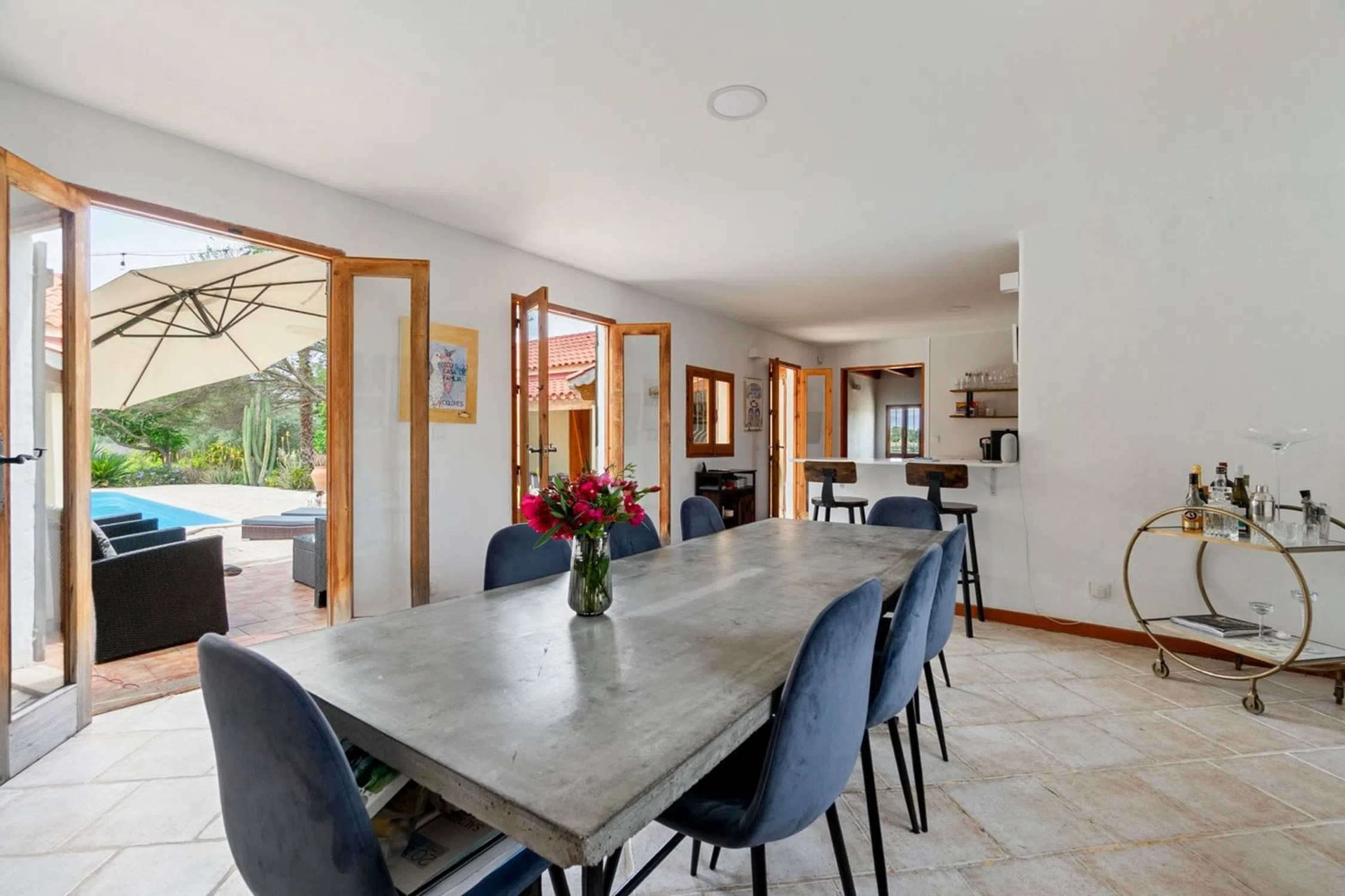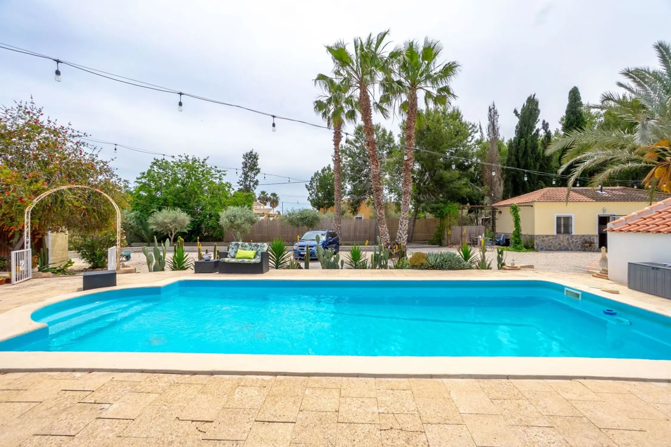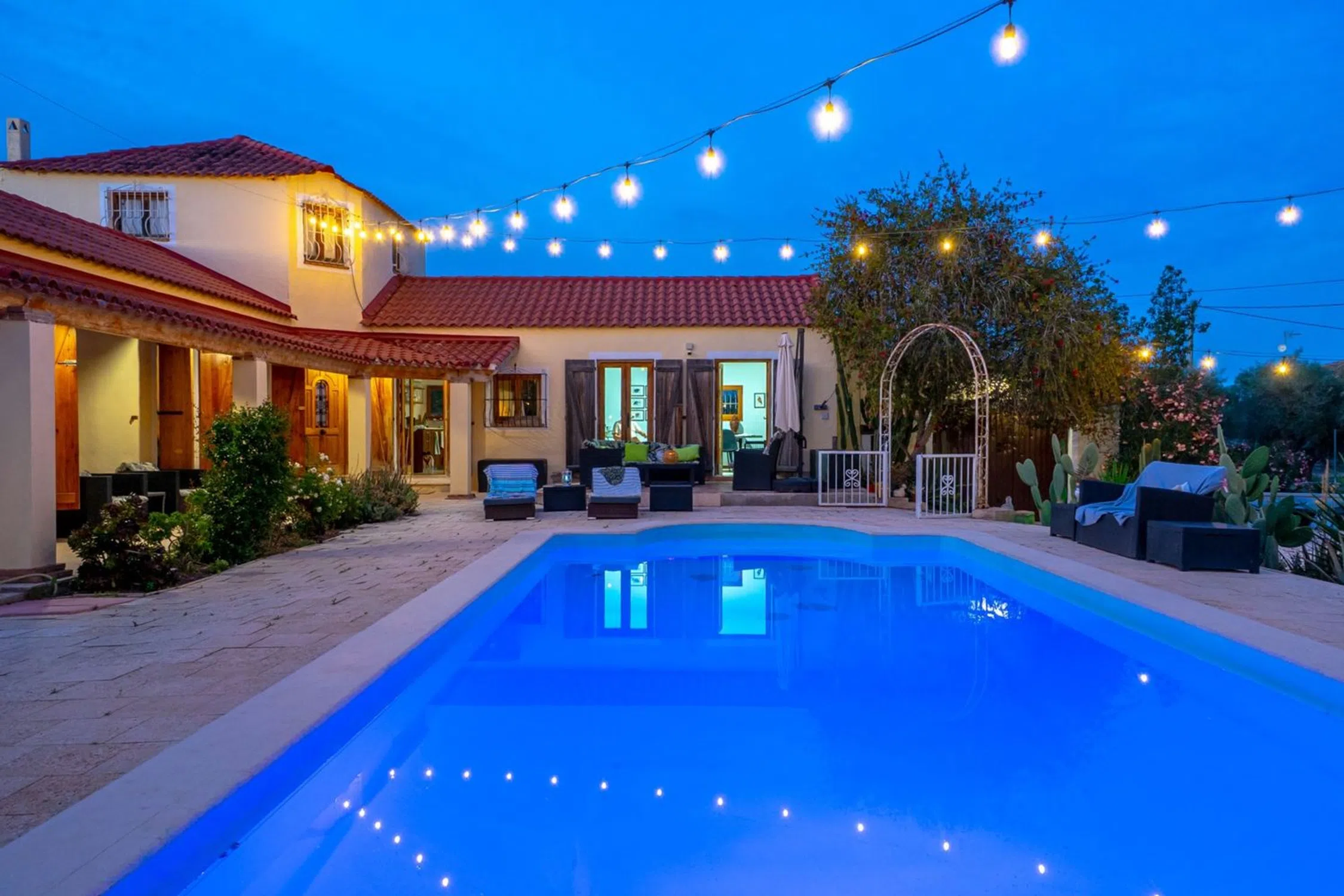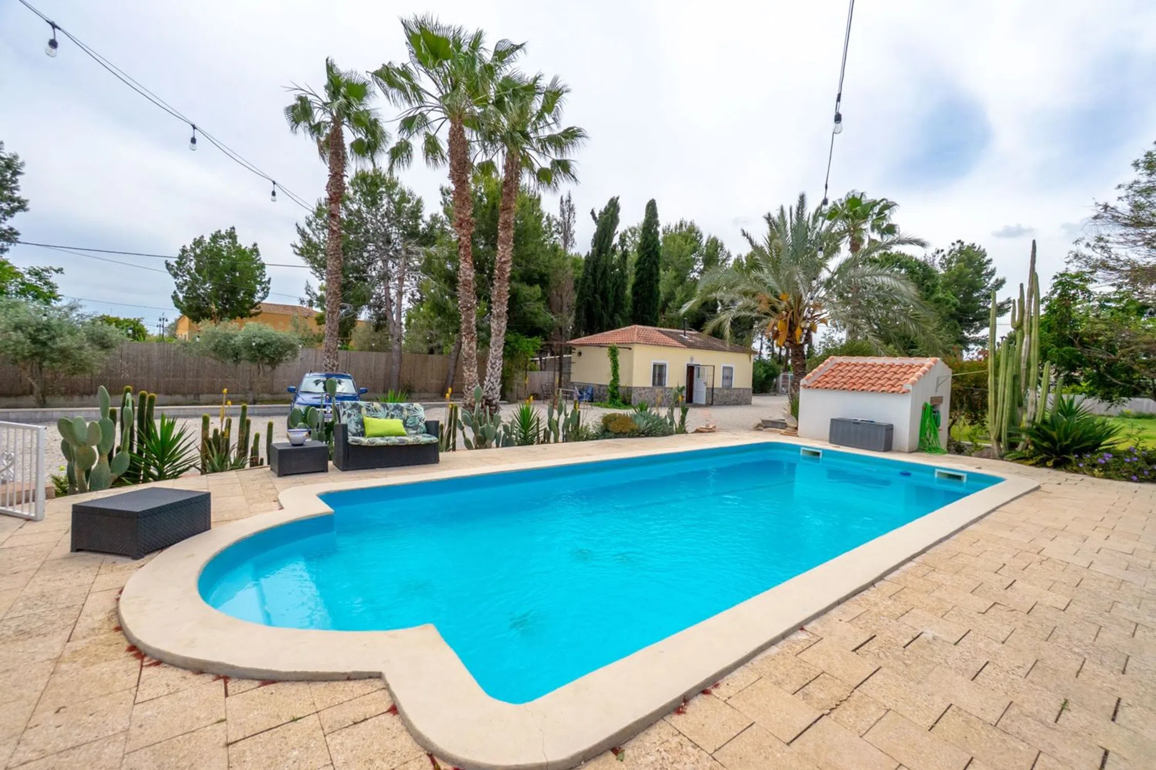 Bienvenido a esta villa única y lujosa, ubicada al final de un tranquilo callejón sin salida en el pintoresco Dolores, un encantador y auténtico pueblo español rodeado de naturaleza, huertos de cítricos y campo abierto, pero cerca de todo lo que necesita. Aquí vives en paz y tranquilidad, pero al mismo tiempo estás cerca de servicios como tiendas, restaurantes, bancos, escuelas y mercados semanales. La zona es popular entre los españoles y suecos en el extranjero que buscan una vida más auténtica y armoniosa bajo el sol. La proximidad a reservas naturales, carriles bici y rutas de senderismo lo convierte también en un paraíso para los amantes de la naturaleza. Con el aeropuerto de Alicante a sólo 30 minutos, la casa es fácilmente accesible durante todo el año, tanto si vives permanentemente como si viajas regularmente. La propiedad está rodeada de un cuidado y exuberante jardín con césped, árboles frutales y arbustos en flor que crean un entorno natural y una sensación de tranquilidad. Hay varios patios y áreas sociales en diferentes direcciones, perfectos tanto para desayunos tranquilos como para tardes cálidas con amigos y familiares. El jardín está equipado con una amplia iluminación que resalta la vegetación y la arquitectura al atardecer, creando una atmósfera mágica después del atardecer. La propiedad también está conectada al sistema de riego municipal de Dolores, lo que garantiza un riego automatizado y sin preocupaciones del jardín durante todo el año. En el corazón del jardín se encuentra la gran piscina privada, acogedora y soleada durante la mayor parte del día. Aquí podrás disfrutar de un refrescante baño en total privacidad, con solo el canto de los pájaros y el viento en las copas de los árboles como compañía. La villa ha sido objeto de una amplia renovación donde cada detalle ha sido cuidadosamente elegido para combinar el confort moderno con el encanto original de la casa. Las vigas del techo a la vista, las contraventanas tradicionales y los elementos rústicos se han conservado y armonizan maravillosamente con el interior elegante y moderno. El espacio habitable es de tamaño generoso y está bien planificado, la mayor parte en un solo nivel, de fácil acceso y práctico. Hay dos dormitorios y dos baños, un salón amplio y luminoso y una cocina moderna con planta abierta al comedor y a las zonas de estar. Las grandes superficies acristaladas difuminan los límites entre el interior y el exterior y dejan entrar la fantástica luz por la que es conocida la Costa Blanca. Un amplio garaje ofrece mucho espacio para vehículos, almacenamiento o aficiones. La propiedad también incluye una casa de huéspedes totalmente equipada con dos dormitorios, un baño y su propia cocina: una solución perfecta para invitados, viviendas multigeneracionales o alquileres. Esta propiedad ofrece una rara combinación de total privacidad, lujo y carácter genuino y se vende exclusivamente con nosotros en Bjurfors Costa Blanca. Es un lugar ideal tanto para residencia permanente como para paraíso de vacaciones: contáctenos para obtener más información o reservar una visita.