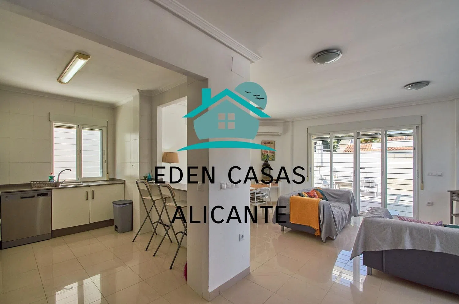 En la planta baja, encontrarás una cocina completamente equipada y un espacioso salón de concepto abierto que se conecta al patio/jardín mediante puertas correderas de cristal. Este es un lugar ideal para relajarte y disfrutar del sol durante todo el año, así como refrescarte en la piscina privada.