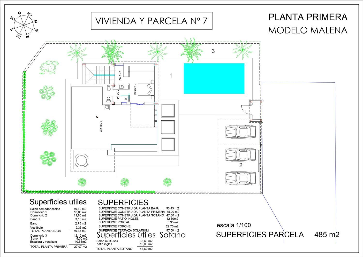 Promoción de 9 villas independientes, 6 disponibles. Chalet modelo MALENA con distribución y desarrollo en planta baja y planta terraza solárium visitable, incluye en su precio una piscina de 3 x 6 metros. Se encuentra construido el acabado y declaración de obra nueva inscrita.Chalet modelo MARAN con distribución y desarrollo en, planta baja, planta primera y planta solariumEn planta baja 1 dormitorio, salón comedor, cocina y un baño. En planta primera dos dormitorios y 2 baños con acceso al solarium mediante escalera exterior.