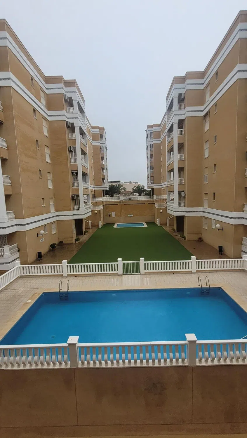 Piso en urbanización en zona de playa a 300 metros del mar. Bonitas y despejadas vistas. Urbanización completa y excelentemente cuidada. Zona residencial con todos los servicios y bien comunicada. Muy cerca del aeropuerto de Alicante. a 10 minutos de Alicante capital, Elche y Santa Pola. La vivienda es completamente exterior incluído el cuarto de baño. Consta de 2 dormitorios dobles con armarios empotrados, un baño completo con bañera, salón, cocina y amplia terraza. Buenas calidades, A/A. Se vende amueblada y con la cocina equipada. Incluye una gran plaza de garaje para 2 grandes todoterrenos, coches, motos, lancha o barca de recreo, motos de agua, etc. Para entrar a vivir. Ideal como residencia permanente, segunda residencia y para alquiler. Oportunidad para inversores.
