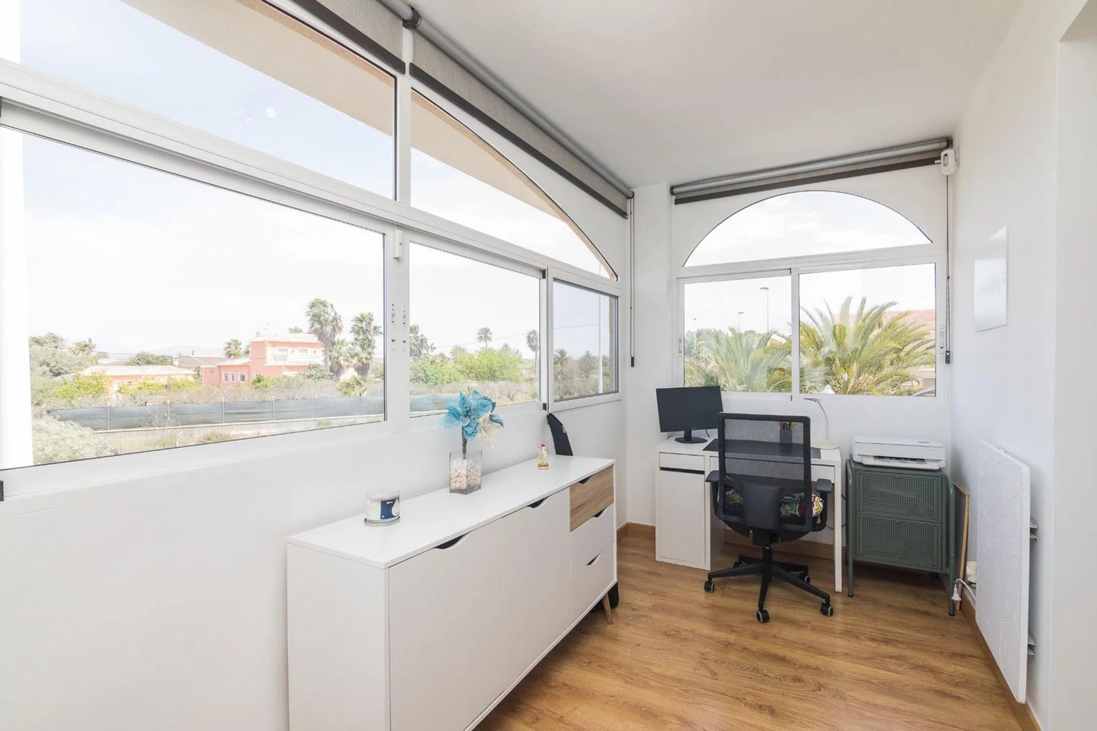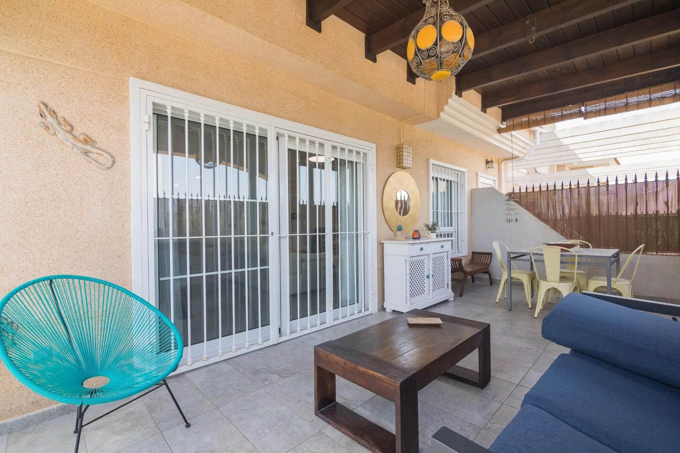 Presentamos este magnífico chalet en la localidad de Valverde, Alicante, ubicado dentro de una exclusiva urbanización cerrada que ofrece seguridad y tranquilidad. Este inmueble seminuevo cuenta con una superficie construida de 190 m² y útil de 160 m², distribuidos eficientemente para proporcionar un ambiente confortable. En la primera planta está el salón-cocina, dormitorio, baño y galería y en la 2ª planta tres dormitorios, 2 baños y terraza acristalada. Consta de tres amplias habitaciones dobles y una habitación adicional ideal para visitantes o como oficina. Los tres baños están diseñados con modernidad y elegancia, asegurando así el máximo confort a sus residentes. Entre los beneficios adicionales destaca su impresionante piscina comunitaria perfecta para disfrutar del cálido clima mediterráneo durante todo el año. La propiedad también incluye características destacadas como puerta blindada por razones de seguridad, acogedora terraza donde podrás relajarte al aire libre e inmejorable acceso a transportes públicos cercanos facilitando tus desplazamientos diarios.