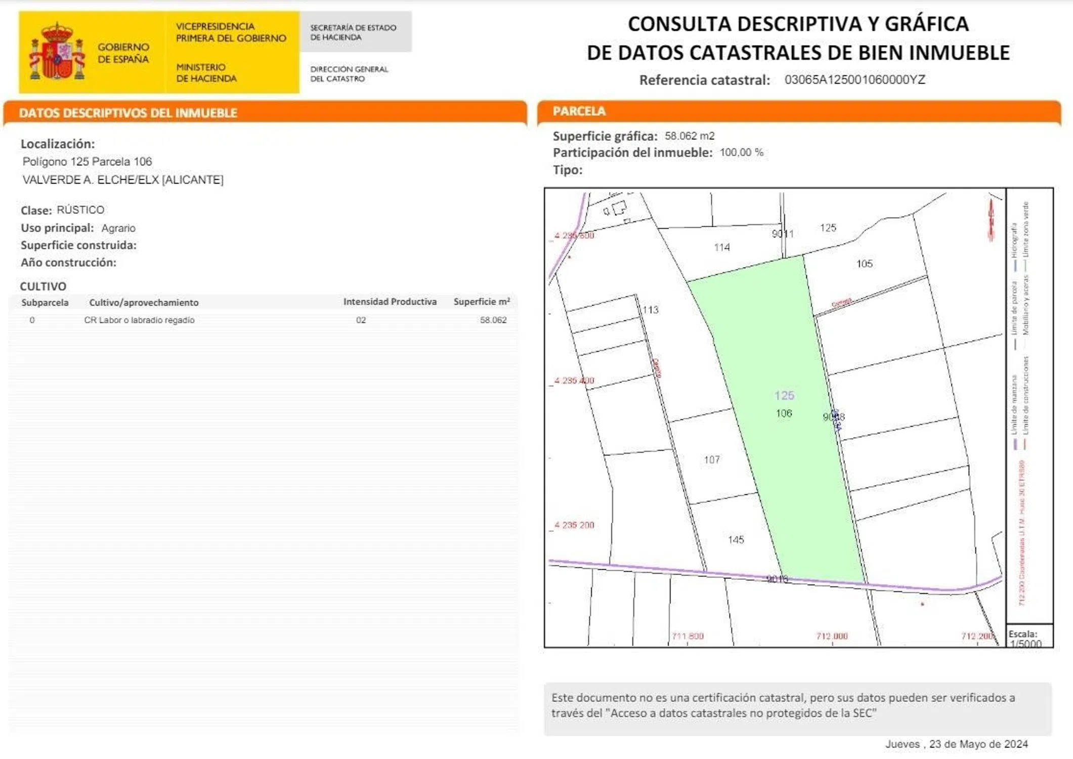 Alicante, Elche / Elx, Valverde, Partida Valverde Bajo, 106