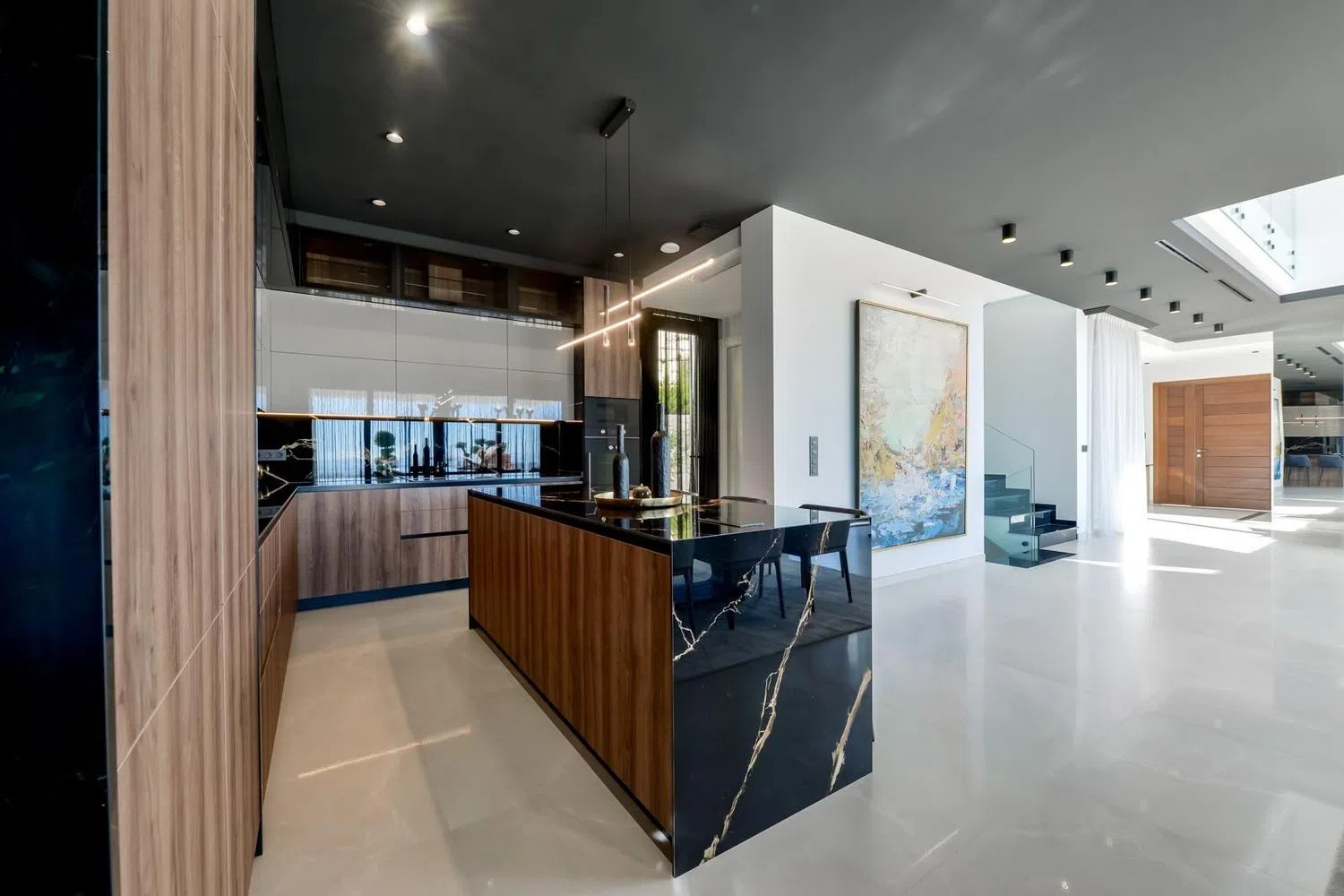 ¡LISTA PARA ENTRAR! Al cruzar el umbral de esta impresionante residencia, serás recibido por una vista al mar que te dejará sin aliento. Sus techos altos, que superan los 3 metros, y las puertas internas de 2,4 metros de altura, contribuyen a una experiencia de vida lujosa y espaciosa. El sistema integral de automatización del hogar permite controlar fácilmente la calefacción por suelo radiante, la iluminación interior y exterior, así como las persianas eléctricas, todo con un simple toque de botón.