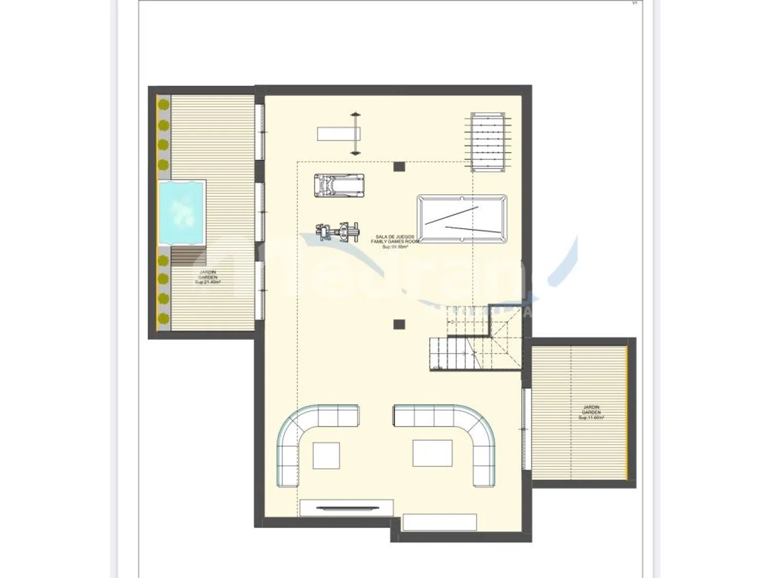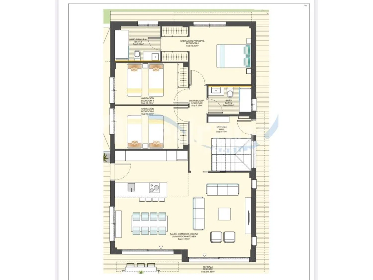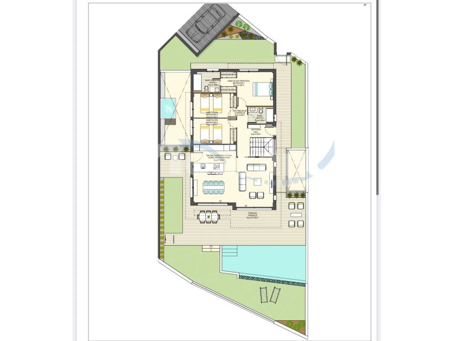 La vivienda destaca por sus amplias terrazas y un luminoso salón de aproximadamente 42 m², que se abre a un extenso espacio exterior con 219 m² de terraza, zona de estacionamiento y una piscina privada, ideal para disfrutar del clima mediterráneo.