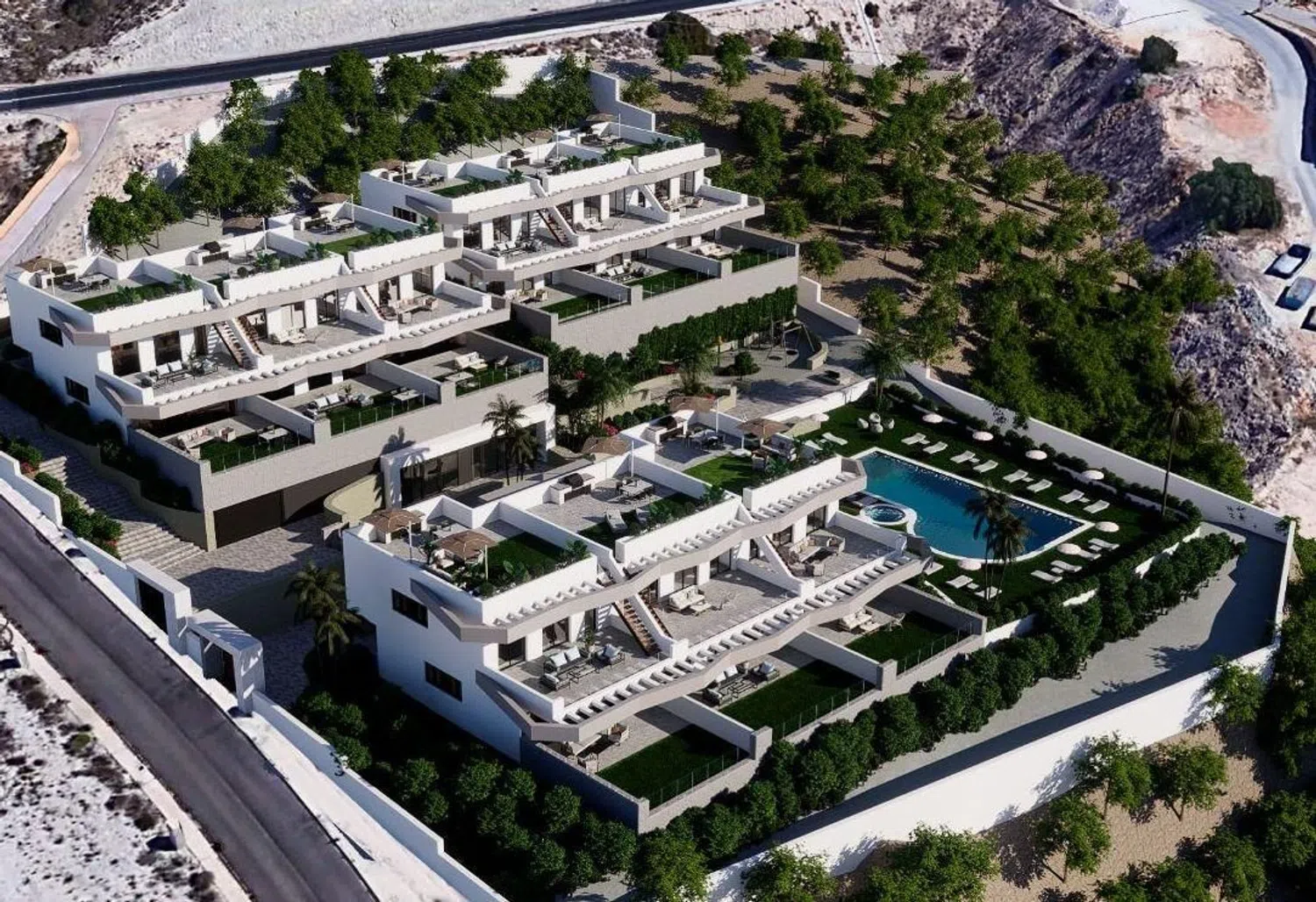 Dieciocho espectaculares viviendas de lujo con impresionantes vistas panorámicas al Mar Mediterráneo. Construidas con materiales de alta calidad, estas viviendas cuentan con sistemas de aerotermia, un excelente aislamiento térmico y acústico, además de preinstalación de domótica y jacuzzi. Poseen una calificación energética tipo A y la opción de incluir piscina privada. Las propiedades, de un tamaño mínimo de 190 m² en las plantas bajas y 202 m² en las plantas altas, ofrecen amplias terrazas que varían entre 35,87 m² y 100 m². En las plantas superiores, también hay un solárium de al menos 90 m², ideal para disfrutar de los más de 330 días de sol al año que caracteriza la región. Cada vivienda incluye 2 o 3 dormitorios espaciosos, 2 cuartos de baño, un salón de concepto abierto y una cocina con una isla, iluminada por luz natural en todas las estancias. Además, se beneficia de aparcamiento subterráneo y ascensor.