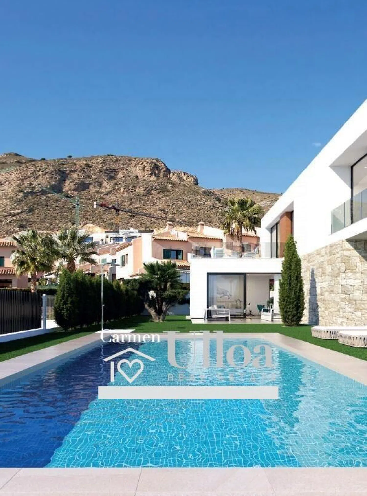 Elementos como el suelo de gres porcelánico y la carpintería exterior de aluminio con doble acristalamiento garantizan confort y un alto estándar de calidad. Además, esta residencia incluye comodidades modernas como aire acondicionado, calefacción, un jardín privado y una piscina exclusiva que invitan a disfrutar del clima cálido todo el año.