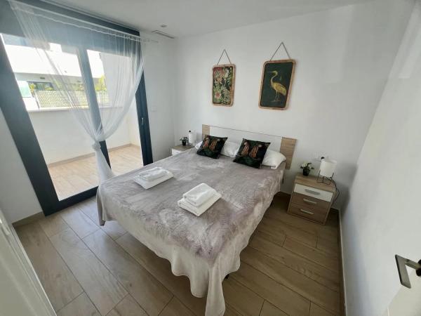 Espléndido bungalow, recientemente renovado, que se encuentra en impecables condiciones. Esta vivienda cuenta con tres acogedores dormitorios, tres baños modernos, un amplio salón y una cocina equipada que se integra perfectamente con el área del salón. Además, dispone de una hermosa terraza, ideal para disfrutar del clima. También incluye su propia plaza de aparcamiento.