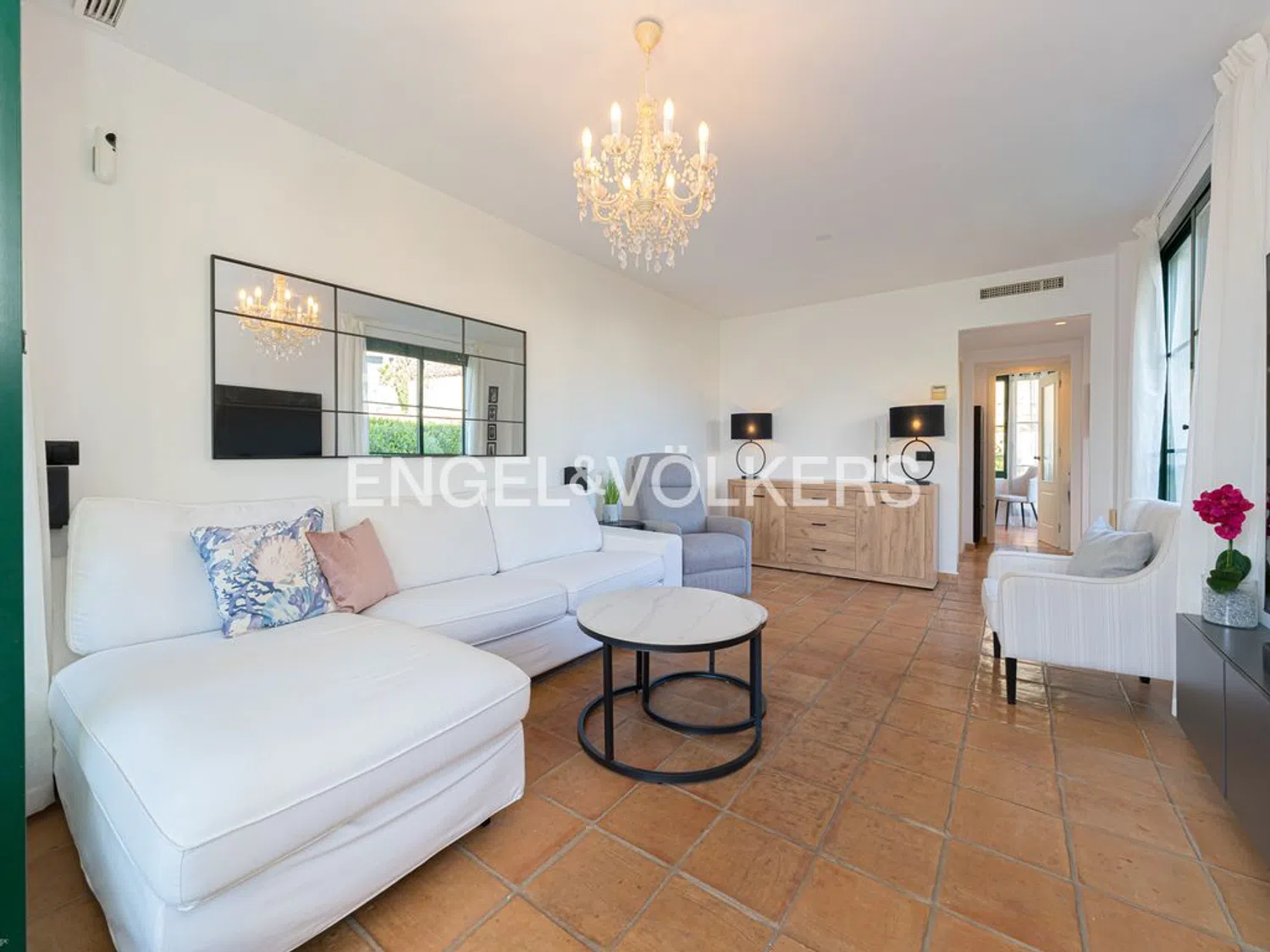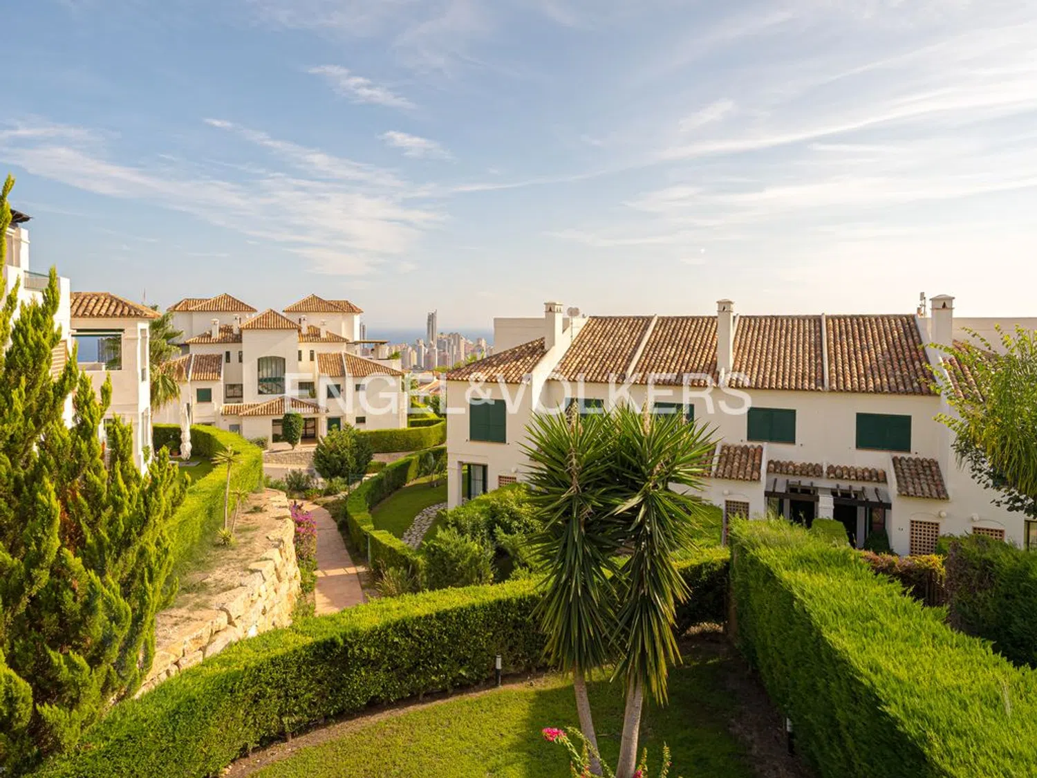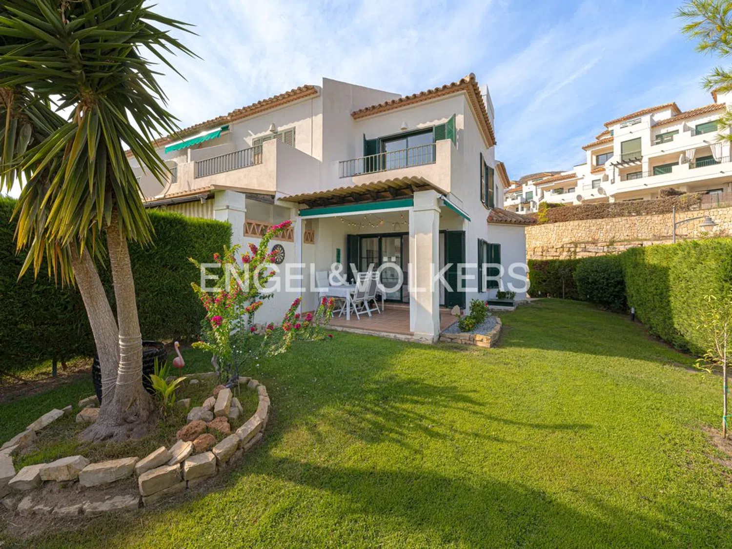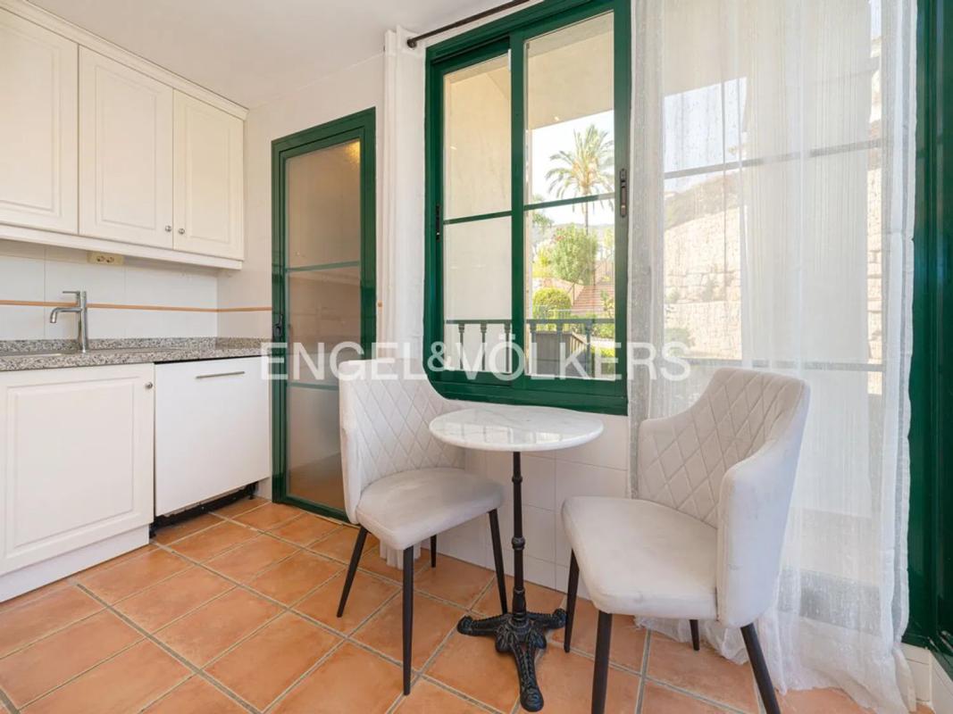 Esta elegante casa de esquina ofrece mucha privacidad y hermosas vistas. La propiedad, una encantadora vivienda adosada, combina el atractivo del estilo mediterráneo con el confort moderno, situada en un complejo residencial bien cuidado que cuenta con piscina comunitaria y jardines exuberantes. Destaca por su jardín privado y una terraza cubierta, perfectos para disfrutar de momentos de relajación al aire libre. Al estar ligeramente retirada dentro de la urbanización, proporciona una mayor tranquilidad y privacidad.