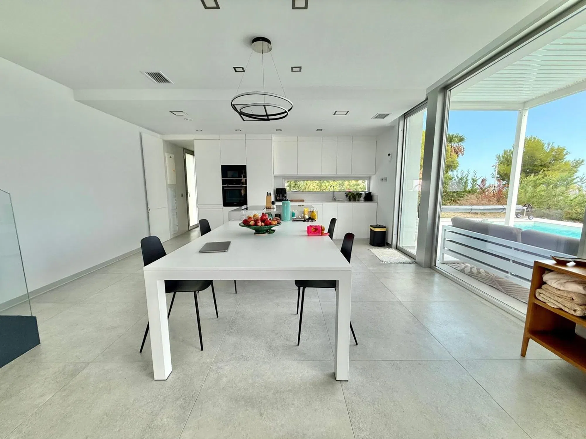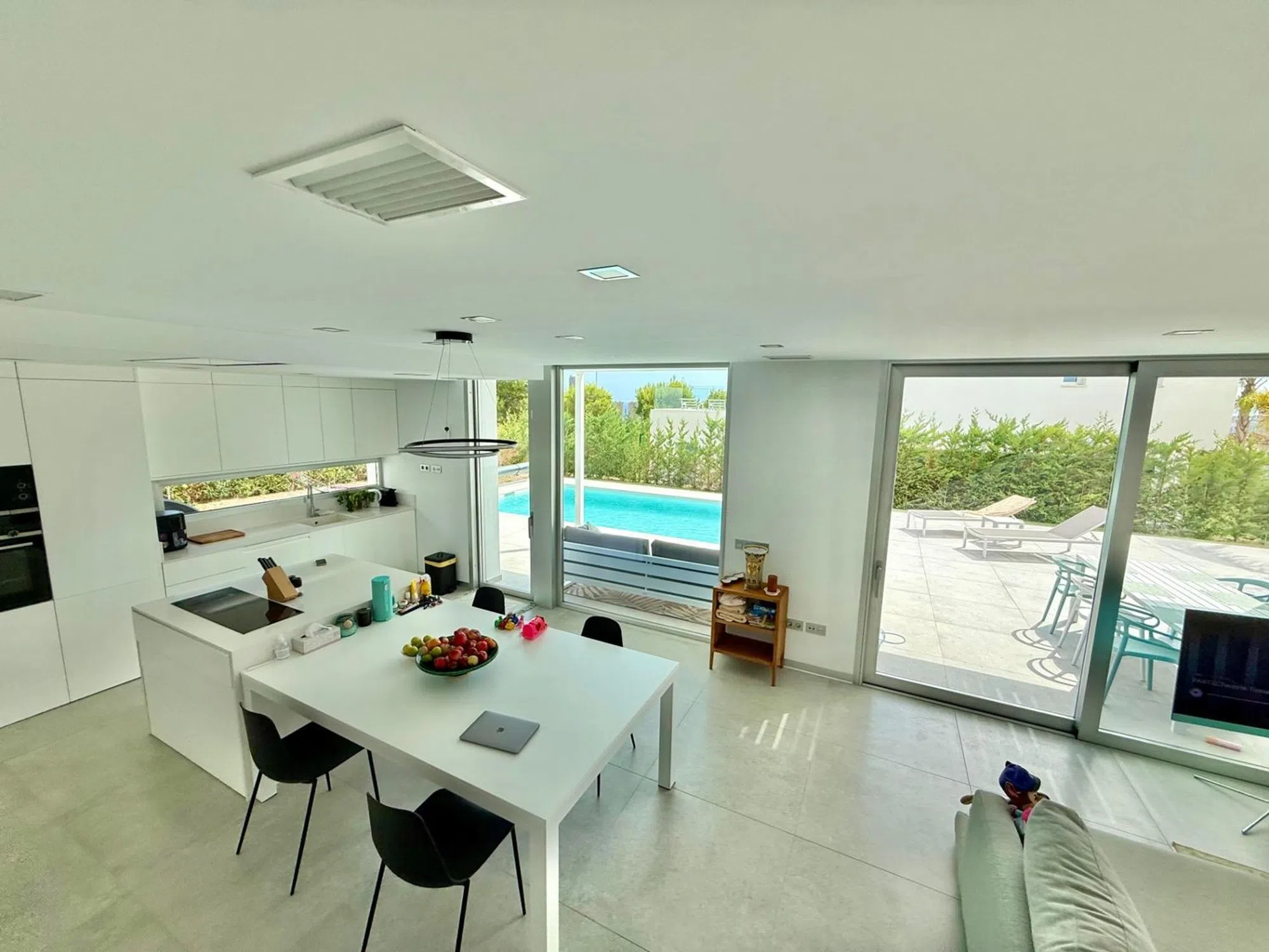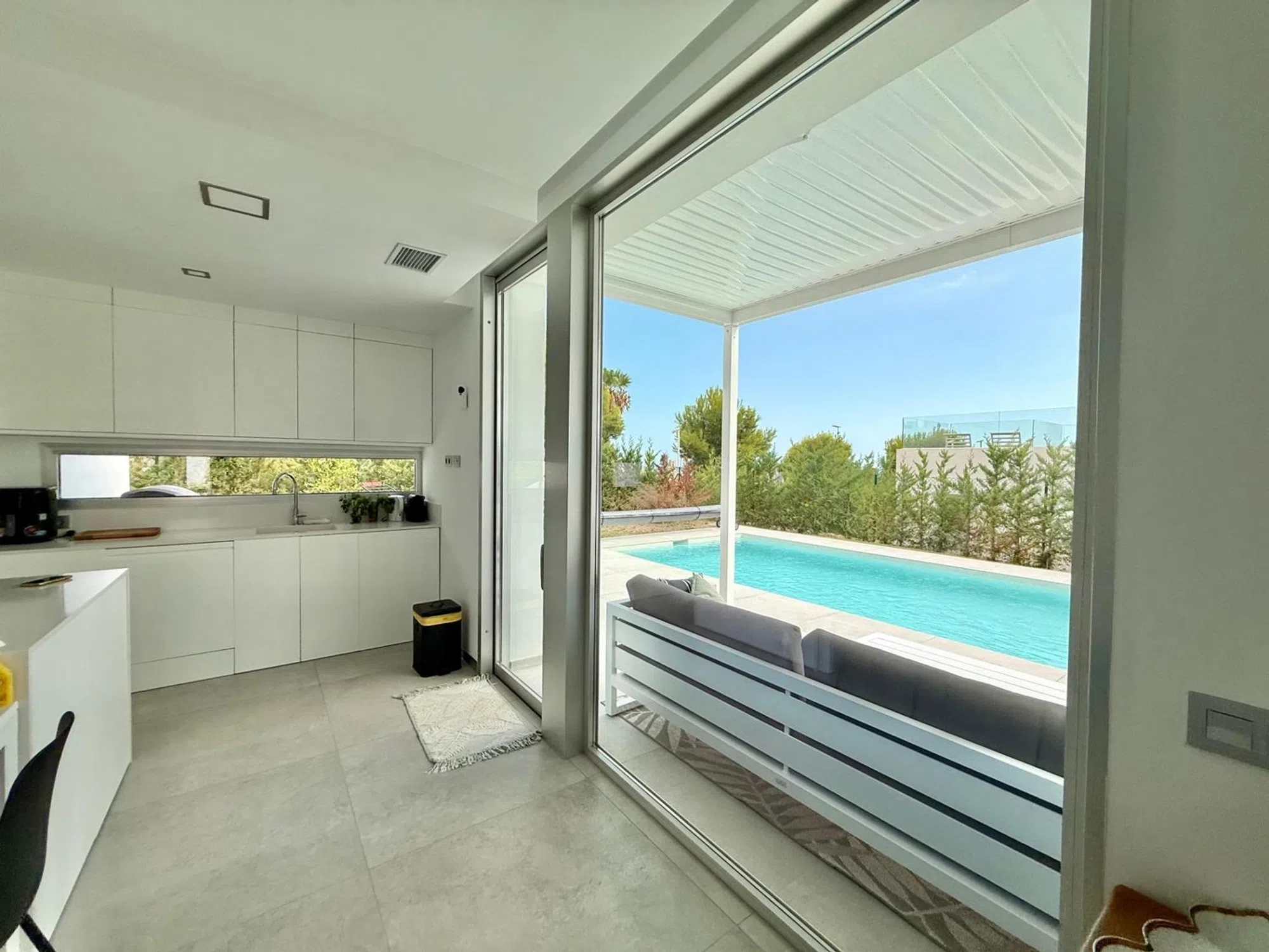 La vivienda tiene 176m2 construidos y costa de 3 dormitorios amplios, 3 baños completos, salón, cocina abierta, lavadero y varias terrazas. La parcela es de 600 m2 y tiene piscina privada, parking techado, terraza solada con vista al mar y zona ajardinada con palmeras, césped natural con riego automático. En toda la casa esta instalada calefacción marca Daikin por suelo radiante y dispone de paneles solares para agua sanitaria. Para concertar visita llámanos o escribe por Whats App:.