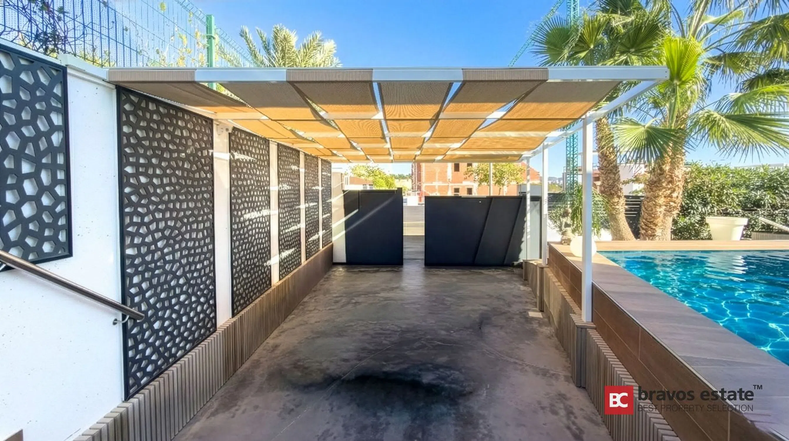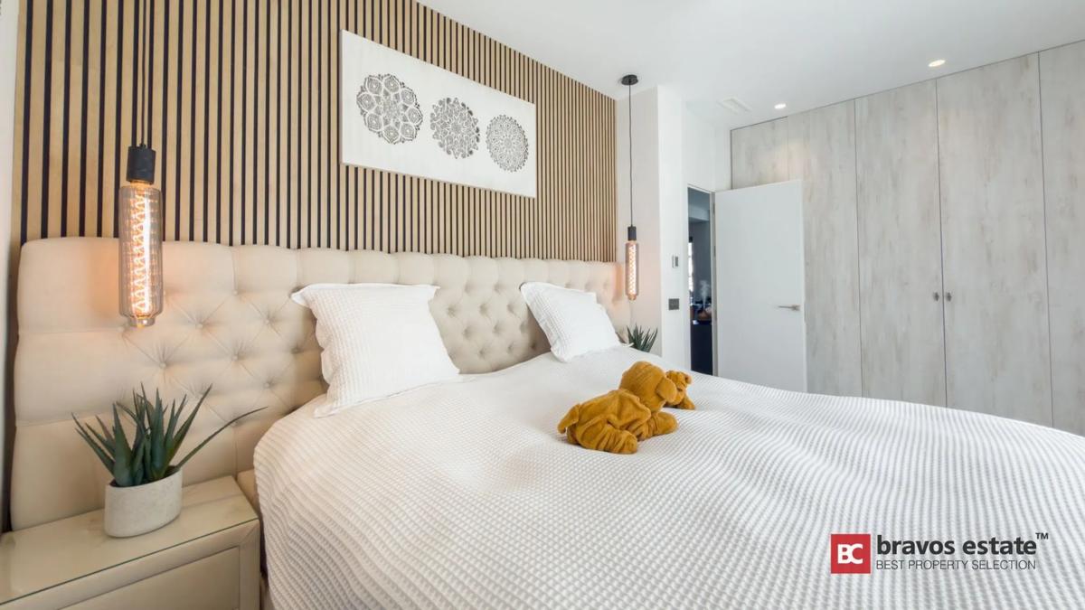 Villa de una planta situada en la zona de Balcón de Finestrat, en una urbanización tranquila y bien comunicada. Se trata de una vivienda de segunda mano en muy buen estado, construida en 2019 y distribuida en un solo nivel con estancias luminosas y acceso directo a las zonas exteriores. La vivienda cuenta con un amplio salón-comedor con grandes ventanales, cocina moderna con isla y galería de lavandería, dos dormitorios dobles con baño en suite y un aseo de cortesía. En el exterior dispone de porche, piscina privada, zona ajardinada con césped artificial, trastero de madera y aparcamiento cubierto. En la planta superior se encuentra un solárium de gran tamaño equipado con placas solares y preparado con tomas de agua, luz y televisión, ideal para crear un espacio de descanso o entretenimiento. La parcela tiene 485 m² y ofrece privacidad y buena orientación. La ubicación permite acceder rápidamente al boulevard de Finestrat, a supermercados, restaurantes, colegios, al centro comercial La Marina y a las playas de Benidorm, además de varios campos de golf situados a pocos minutos en coche.