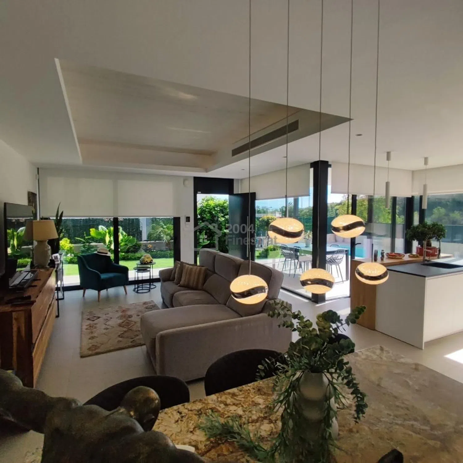 ✨ Vive el lujo, el confort y la exclusividad en esta impresionante villa de diseño � Imagina despertar cada mañana con luz natural bañando tu hogar y vistas abiertas al verde y al mar. Esta villa de ensueño, única en su urbanización, combina arquitectura moderna, tecnología inteligente y un estilo de vida de puro lujo. � Planta principal- 83m2 Un salón diáfano con cristaleras de suelo a techo conecta con la piscina y el jardín, creando una sensación continua de espacio y libertad. La cocina americana con isla central es el corazón del hogar —ideal para disfrutar con familia o amigos. Un dormitorio principal amplio con baño completo ofrece descanso y privacidad. � Primera planta -57m2 Dos dormitorios de gran tamaño, ambos con baños en suite, uno de ellos con vestidor privado y vistas despejadas. ☀️ Azotea panorámica - 45m2 Una terraza espectacular con vistas al mar y la montaña, perfecta para tus veladas al atardecer. Cuenta con preinstalación de jacuzzi para convertirla en tu oasis personal. � Sótano luminoso e independiente 86m2 Un espacio gigante con ventanales al patio interior 13m2, baño propio y entrada independiente —ideal como estudio o apartamento para invitados. �♀️ Zona exterior Piscina privada de 21m2, con zona de relax, comedor techado y jardín rodeando toda la casa. La villa cuenta con domótica completa: controla la iluminación, persianas y cierres con solo un toque. � En esquina, con vistas abiertas a la naturaleza, esta propiedad combina privacidad, diseño y elegancia. � Precio: 825.000 € � Contacto: Lisa H — 2004 Finestrat contigo desde 1998.