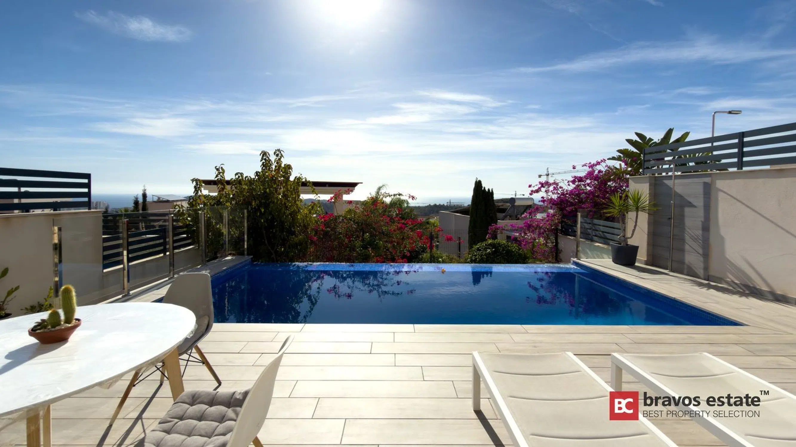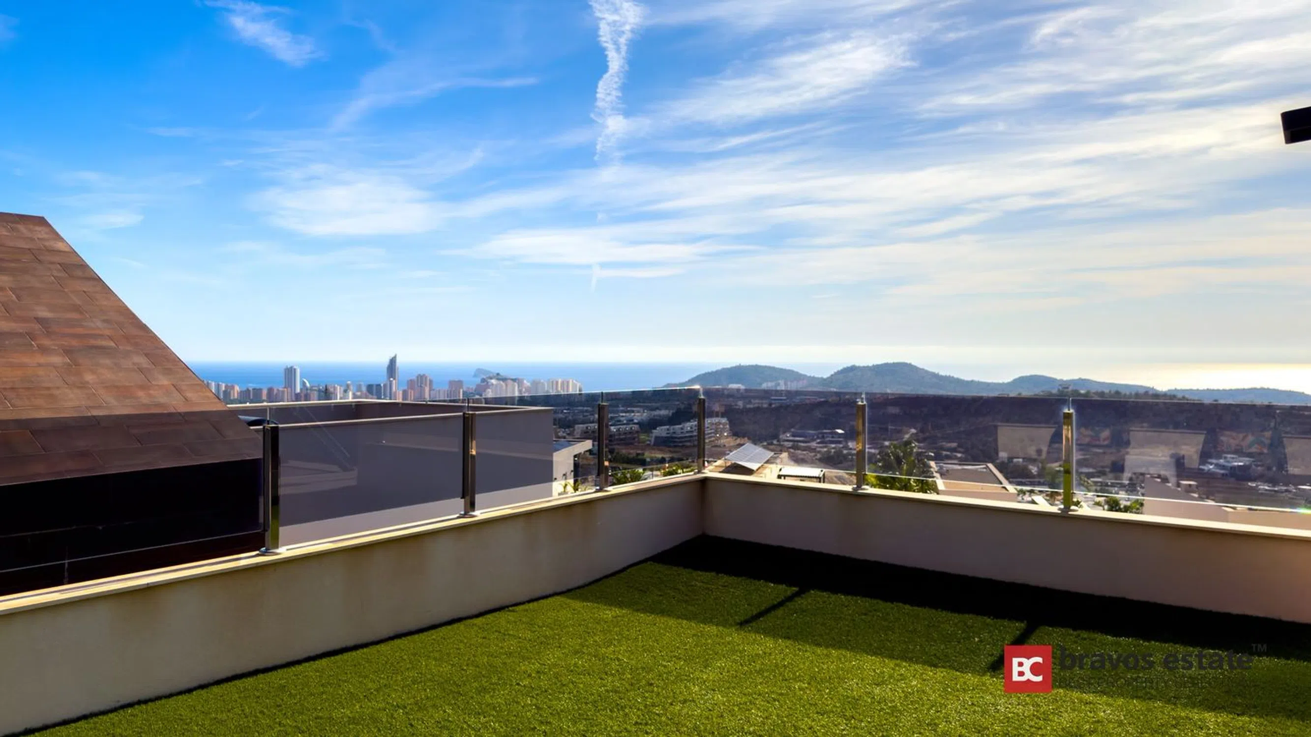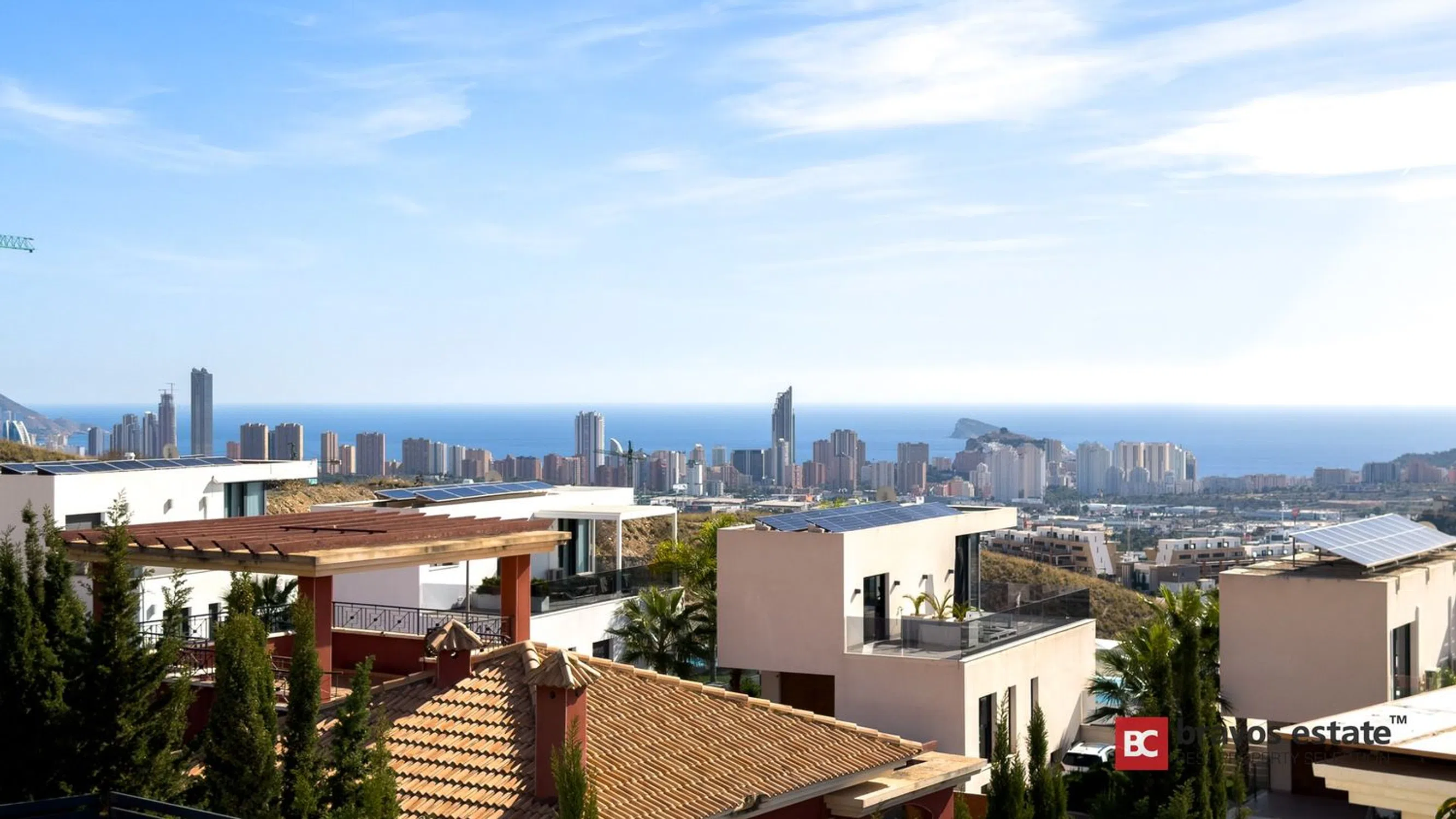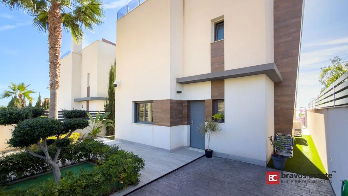 Esta villa moderna, ubicada en la consolidada zona residencial de Balcones de Finestrat, ofrece una oportunidad excepcional para quienes buscan una propiedad de alta calidad con un sólido potencial de revalorización y alquiler. Construida en 2019 y perfectamente mantenida, la vivienda destaca por su luz natural, privacidad y espectaculares vistas abiertas al mar, al skyline de Benidorm y a la majestuosa montaña Puig Campana. Distribución y espacios Con aproximadamente 140 m² construidos en dos plantas, más un amplio solárium, esta propiedad está diseñada para disfrutar al máximo del estilo de vida mediterráneo. La planta principal ofrece un elegante hall de entrada, un dormitorio doble, un baño completo y un salón-comedor con cocina integrada y grandes ventanales que conectan con la terraza cubierta. Desde aquí se accede a la piscina infinity de agua salada y a la zona de barbacoa, todo con vistas panorámicas despejadas. En la planta superior se encuentran dos dormitorios adicionales, incluyendo una suite principal con baño privado. El solárium, accesible por escalera interior, cuenta con preinstalación para jacuzzi y vistas espectaculares tanto de día como de noche. Características premium La villa se vende completamente amueblada y equipada, lista para entrar a vivir o ponerla en explotación turística. Incluye: Suelo radiante en toda la vivienda alimentado por energía solar Aire acondicionado por conductos (frío/calor) Domótica Persianas eléctricas Sistema de seguridad con videovigilancia Piscina infinity de agua salada Aparcamiento privado con portón automático Ubicación estratégica Balcones de Finestrat es una de las zonas más demandadas por residentes e inversores gracias a su tranquilidad, seguridad y excelente conexión. A solo: • 3 km del centro comercial La Marina • 4 km de las playas de Benidorm • Cerca de colegio, guardería y campo de golf de primer nivel Conclusión Una villa moderna, con vistas impresionantes, excelente orientación y ubicación privilegiada, perfecta tanto como residencia exclusiva como inversión con alta rentabilidad en alquiler vacacional y fuerte potencial de revalorización.