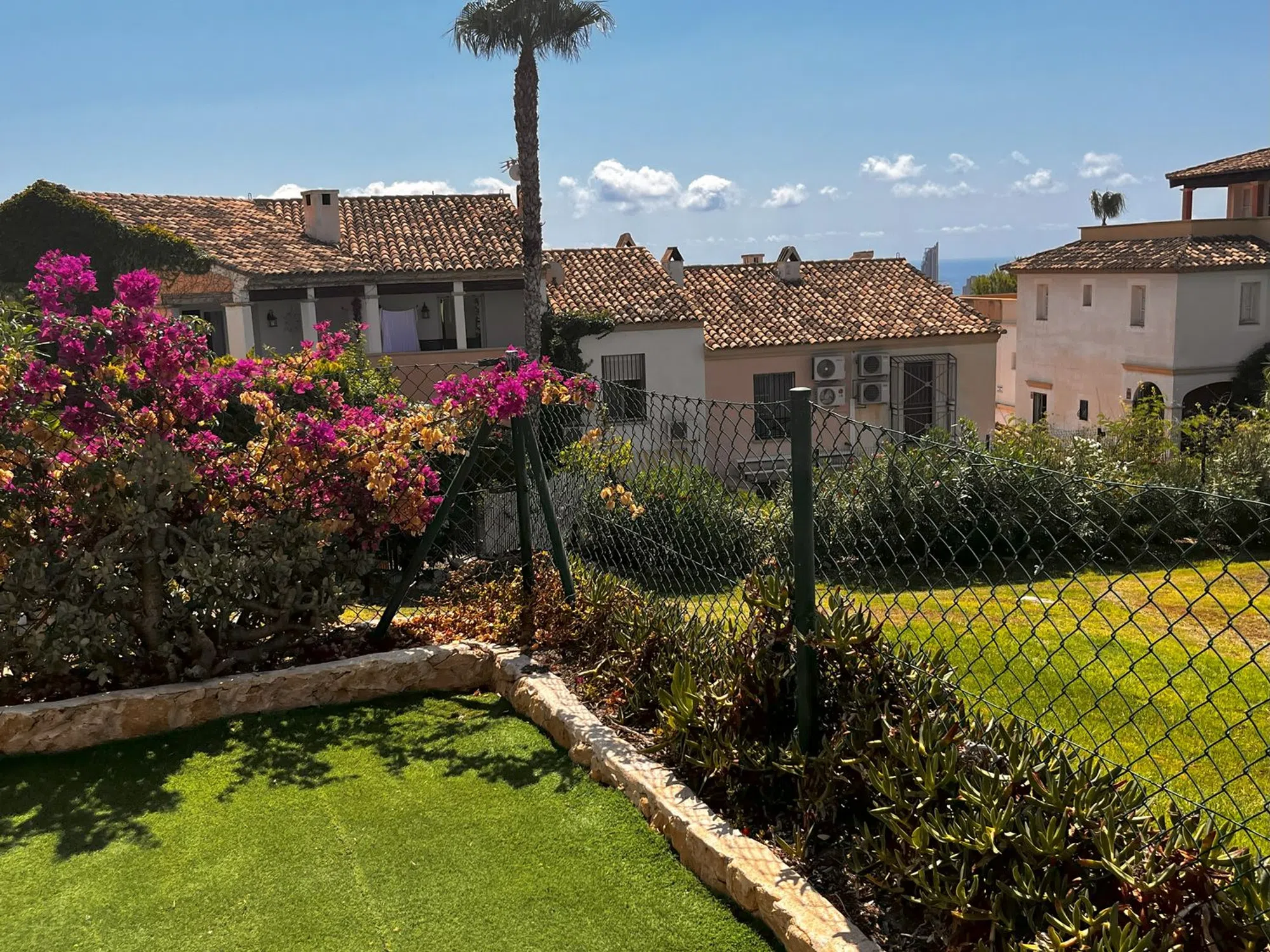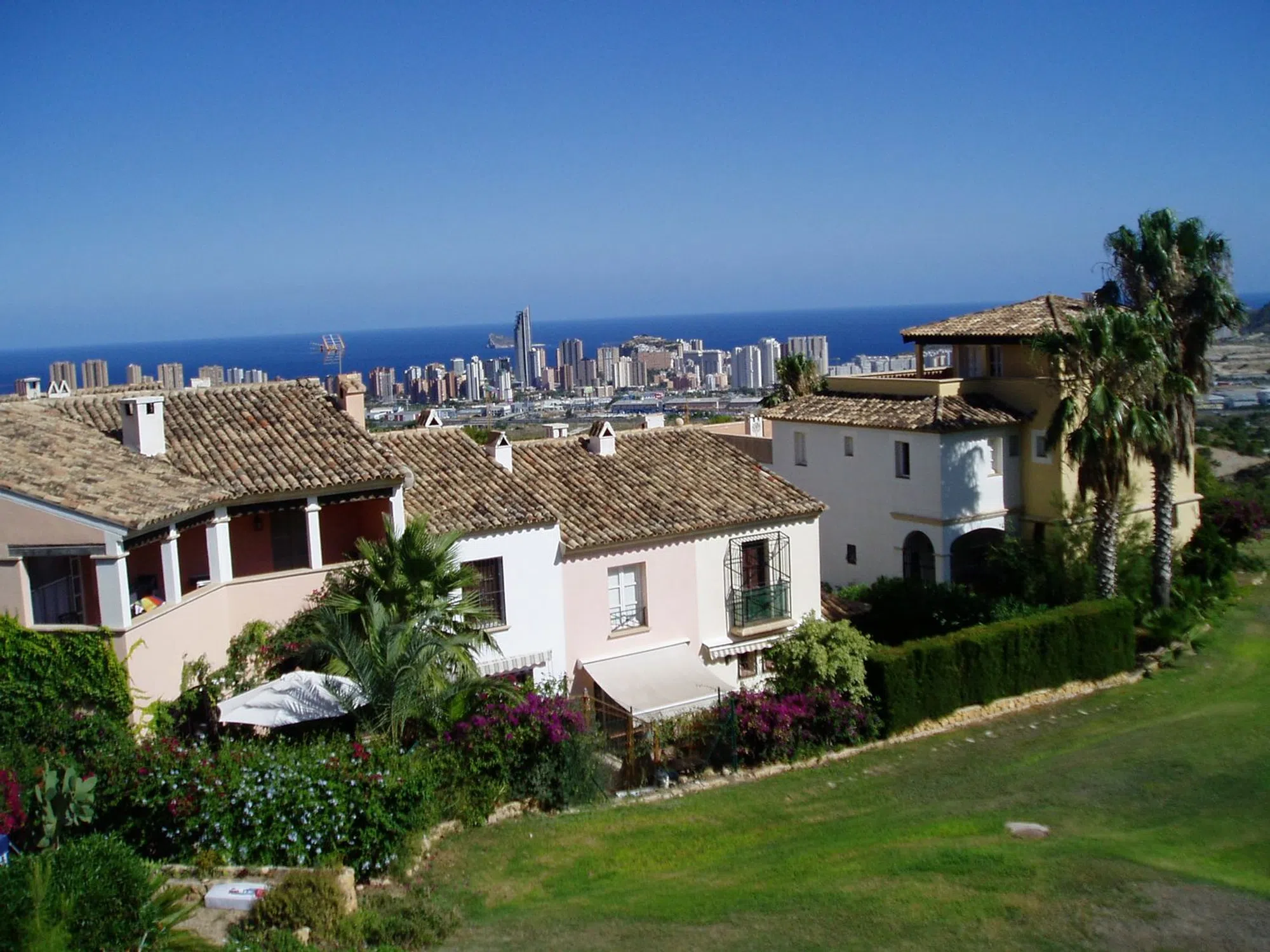 Bungalow en urbanizacion Golf Bahia con terraza y preciosas vistas a la zona ajardinada de cesped y a la bahía de Villajoyosa, orientación sur; en muy buenas condiciones con aire acondicionado (frio y calor) en todas las estancias, con ventilador adicional en cada habitación, cocina completa, dos baños completos en planta alta y aseo en planta baja. Ubicado en una urbanización muy tranquila y excelentemente comunicada, muy cerca del centro comercial La Marina de Finestrat, del parque temático Terra Mítica y de los enlaces viarios a la autopista a Benidorm, Finestrat y Villajoyosa. Dispone de preciosa piscina comunitaria y jardines. Venta directa del propietario, ABSTENERSE AGENCIAS INMOBILIARIAS.