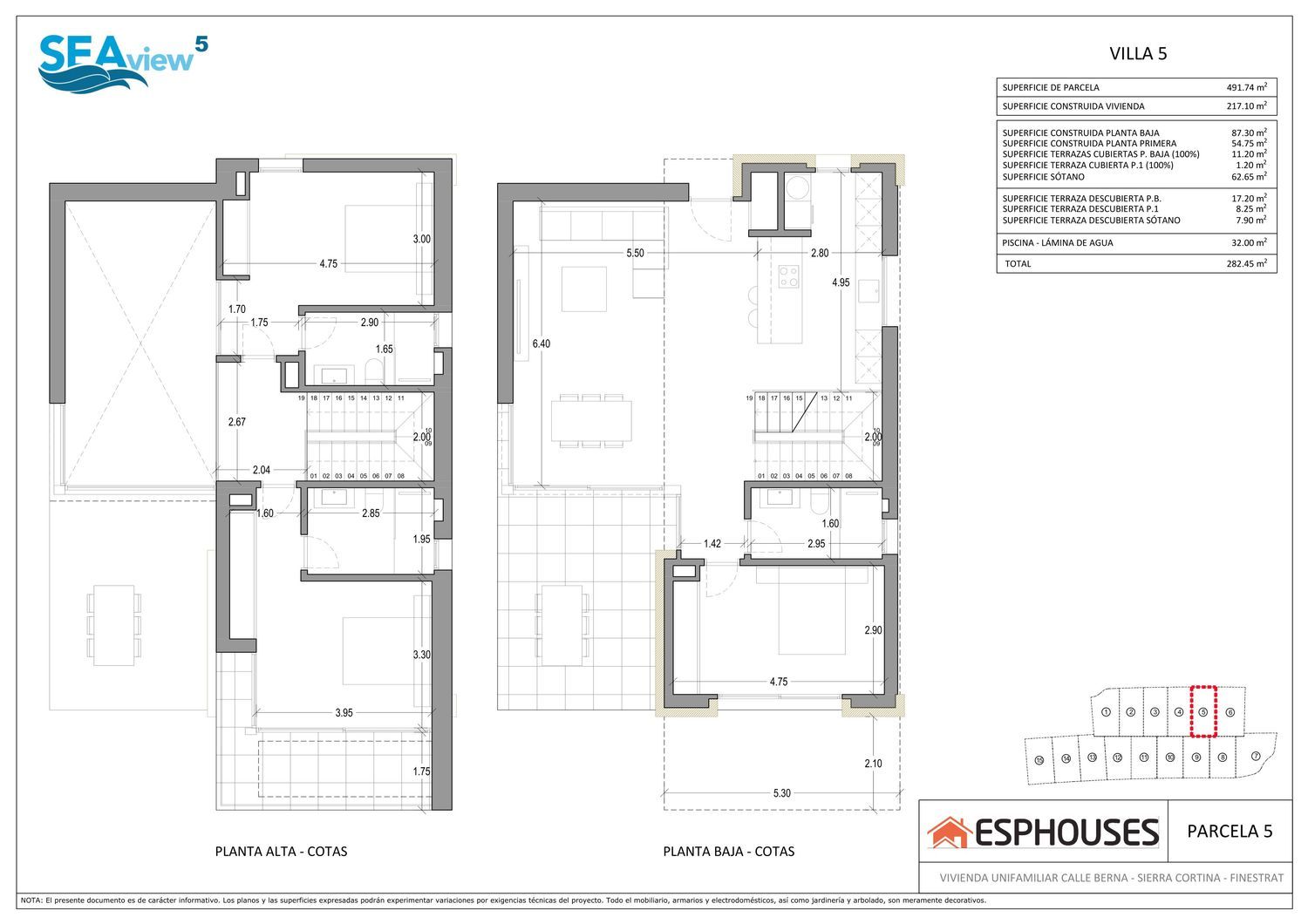 Comme dans toutes les promotions d'ESPHOUSES, SEAVIEW 5 utilise les plus hauts standards de qualité et des équipements et matériaux de la plus haute qualité de marques telles que Florim, Villeroy & Boch, Hansgrohe, Bosch, BTicino, Cortizo ou Blum. L'urbanisation Sierra Cortina est l'une des zones les plus exclusives et les plus demandées de tout le Méditerranée espagnole.