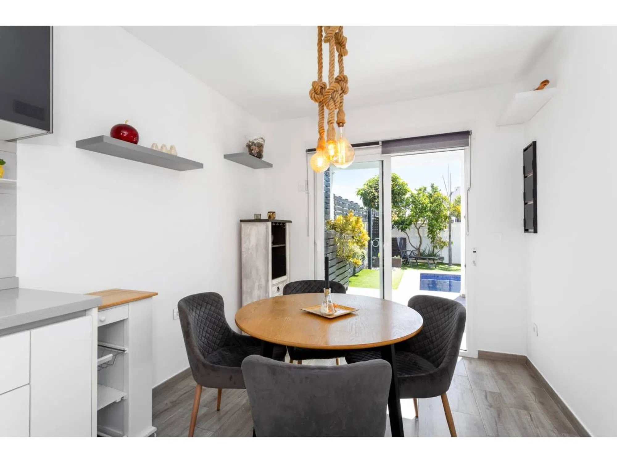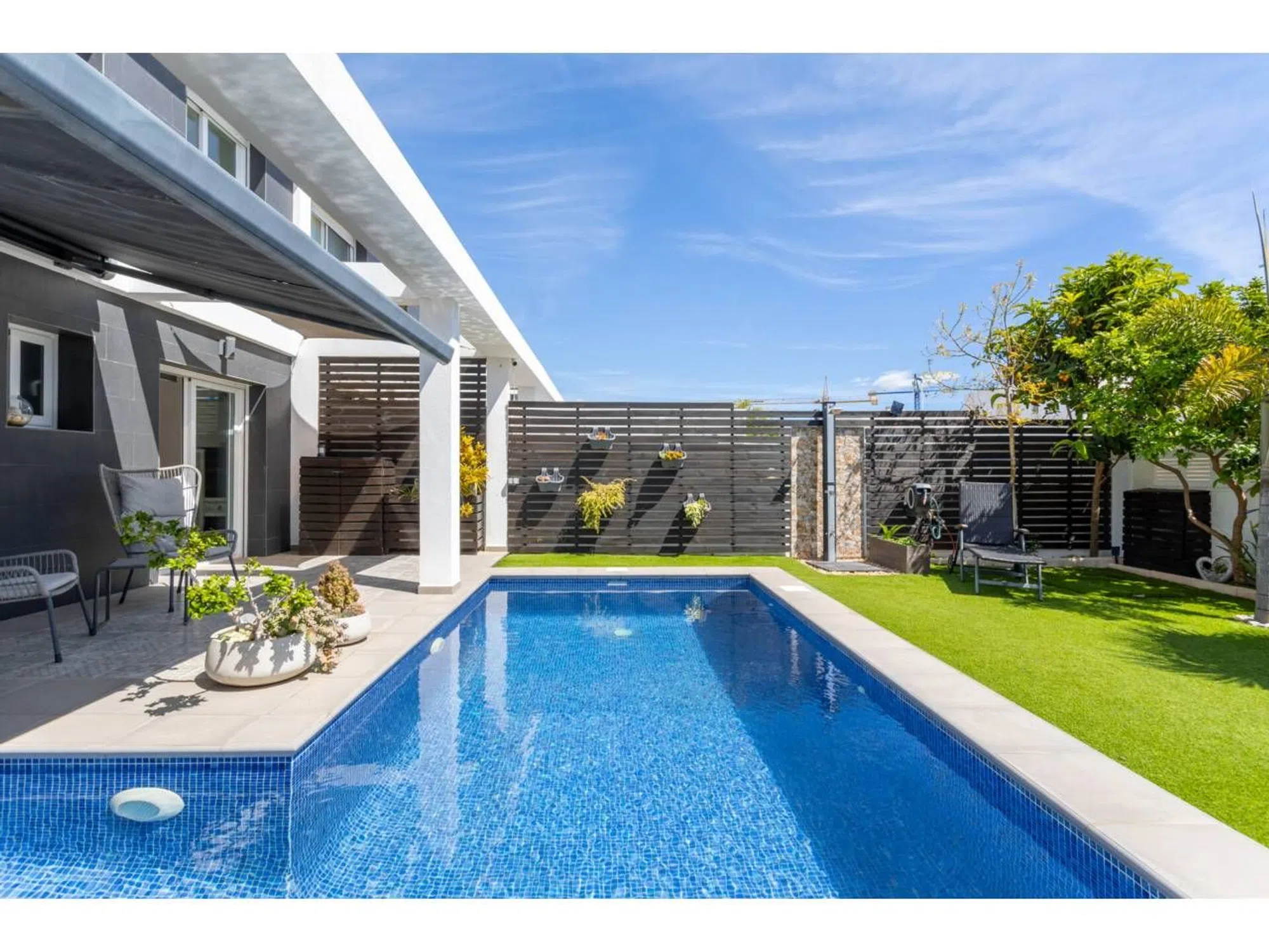 Superficie total 335 m², chalet unifamiliar superficie útil 125 m², hab. individuales: 3, 2 baños, aire acondicionado (frío y calor), antigüedad entre 5 y 10 años, armarios empotrados, calefacción (central), asfaltado, carpintería exterior (aluminio), cocina, comedor, estado conservación: buen estado, garaje (2), gastos de comunidad: entre 10 y 20€, jardín (propio), amueblado, nº de planta: 2, orientación sureste, piscina (propia), puerta blind. , soleado, terraza, suelos: gres, mascotas aceptadas, alumbrado.
