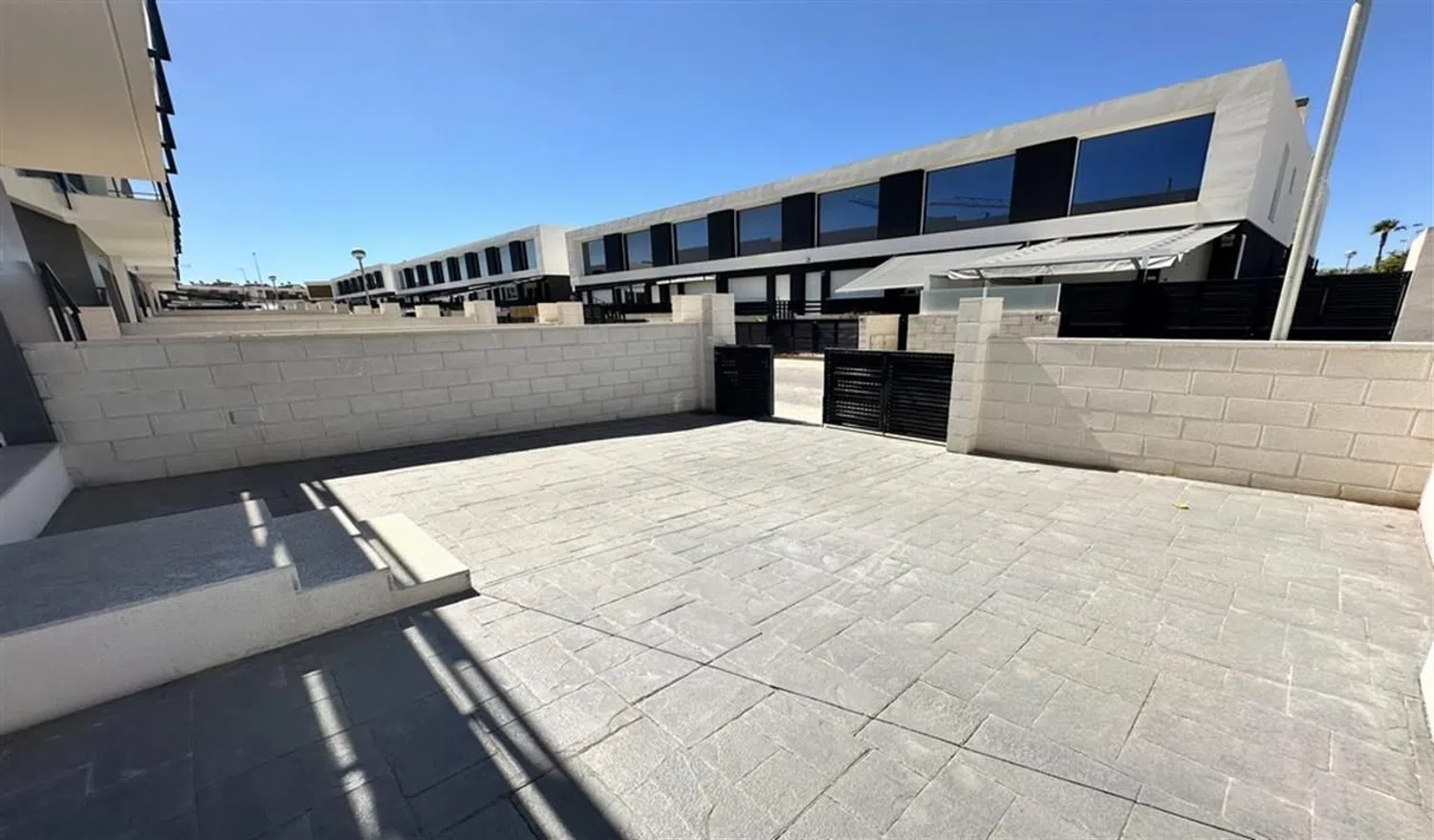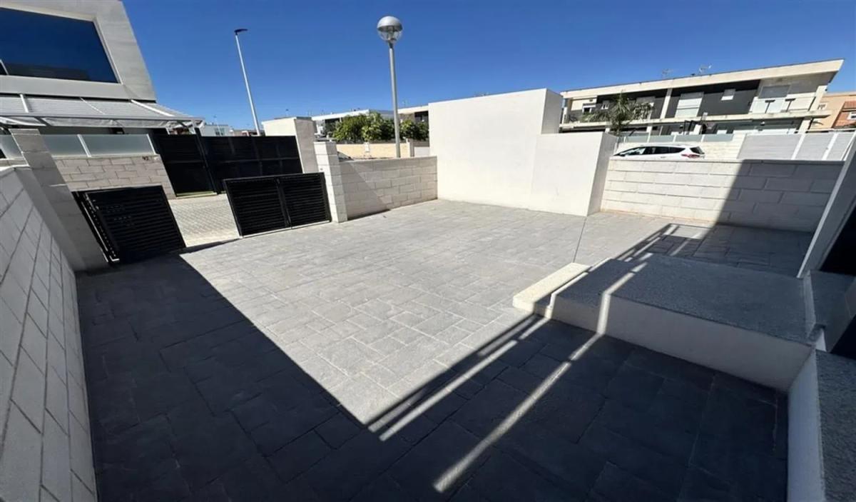 Se ofrece en venta una hermosa vivienda en planta baja, ubicada en una doble esquina y con tres orientaciones, de estilo moderno. Esta propiedad cuenta con una amplia parcela urbana de 100 m², donde la luz natural abunda. Se encuentra cercana a todos los servicios públicos y privados, y a tan solo 1.500 metros de espléndidas playas. La vivienda tiene una superficie de 90 m², además de un patio trastero de 7 m² y una impresionante terraza-jardín de 100 m², ideal para aparcar varios vehículos y con suficiente espacio para la construcción de una piscina privada.