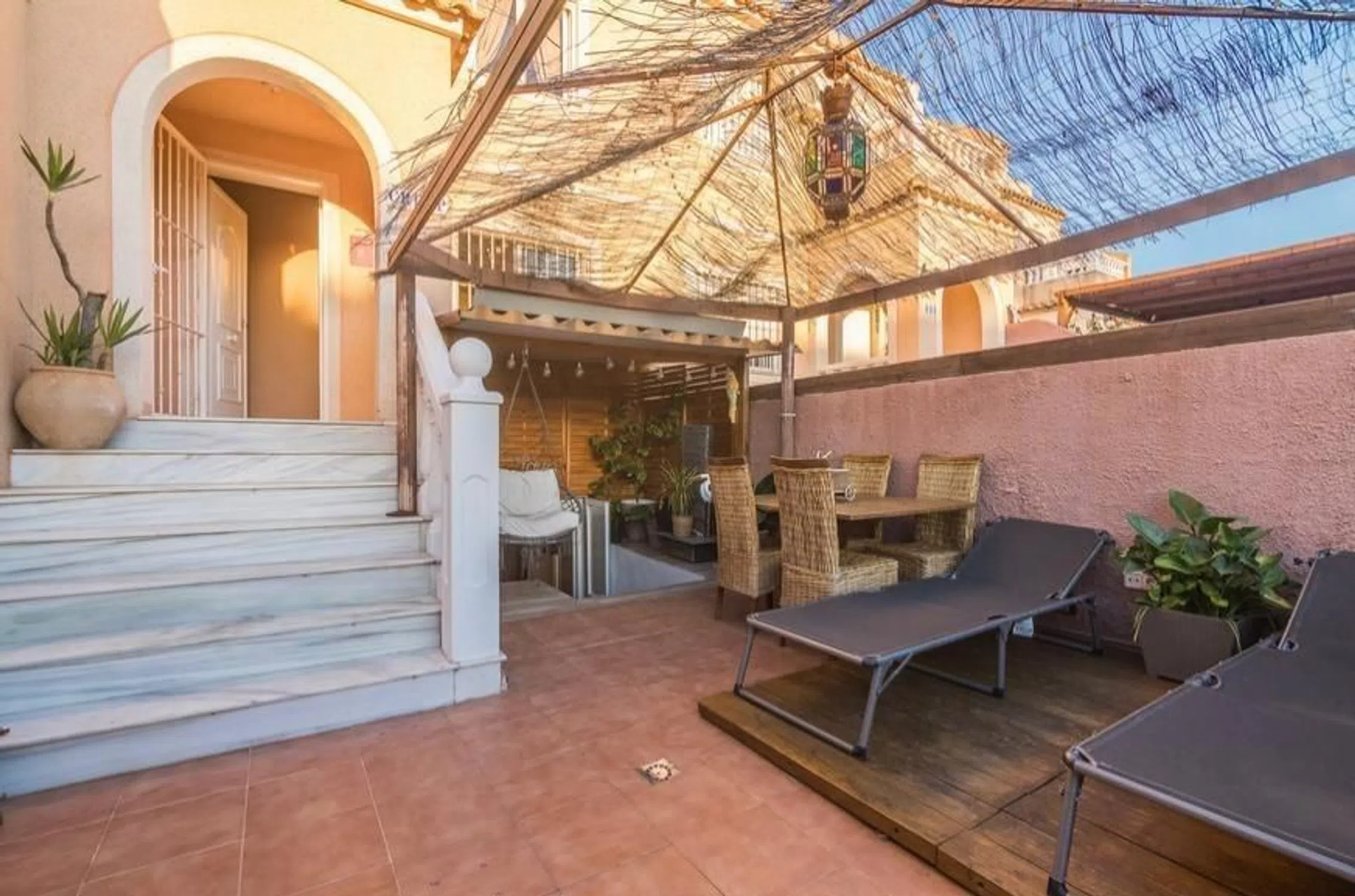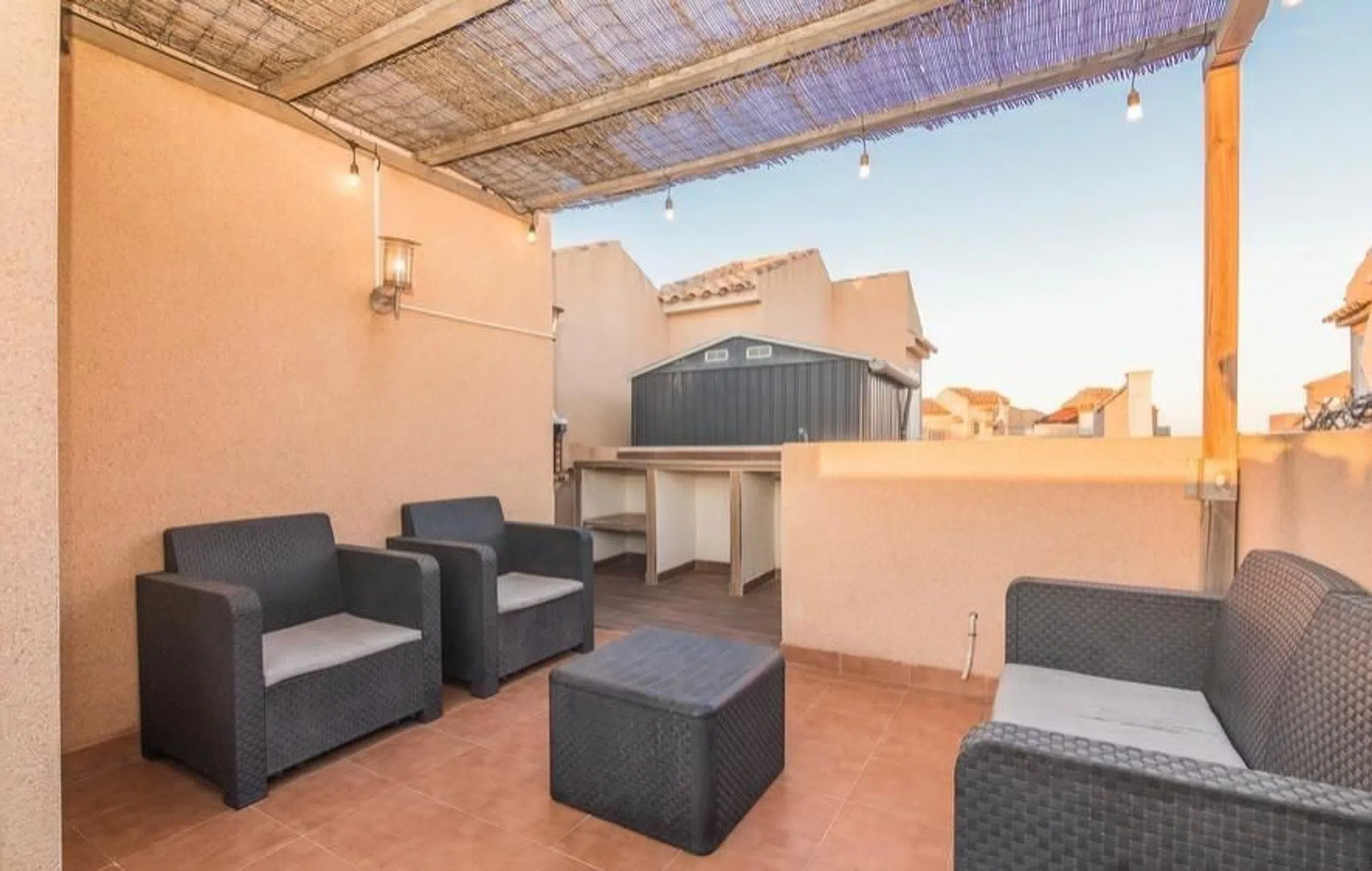 Ubicado en la codiciada zona de Monte y Mar Alto, este adosado reformado es una joya que combina confort moderno con un entorno natural. Con una superficie construida de 107 m2 y útil de 100 m2, el inmueble se presenta como ideal para quienes buscan calidad de vida cerca del mar Mediterráneo, a tan solo 5 km de las hermosas playas locales. La propiedad cuenta con dos acogedoras habitaciones sencillas que ofrecen luminosidad gracias a su orientación este. Además, dispone de un baño completo diseñado para maximizar la comodidad diaria. Este adosado está rodeado por áreas verdes donde los árboles proporcionan sombra y frescura durante los cálidos meses estivales. Los espacios exteriores son igualmente impresionantes; disfrutarás no solo del jacuzzi privado perfecto para relajarte después de un largo día bajo el sol sino también acceso a una piscina comunitaria bien cuidada donde podrás refrescarte mientras disfrutas del ambiente social entre vecinos o amigos. El área chillout equipada con barbacoa invita a organizar reuniones familiares o cenas al aire libre rodeados por tranquilidad absoluta. La terraza completa esta maravillosa oferta; aquí puedes crear tu propio oasis personal disfrutando tanto del desayuno matutino como atardeceres inolvidables sobre el horizonte costero. Con todas estas características atractivas sumadas al atractivo precio competitivo desde €249000€, vivir en Gran Alacant puede ser esa oportunidad dorada que has estado esperando—¡un hogar encantador esperándote justo allí! No pierdas tiempo considerando otras opciones: ¡este fabuloso adosado podría convertirse pronto en tu nuevo refugio junto al mar!