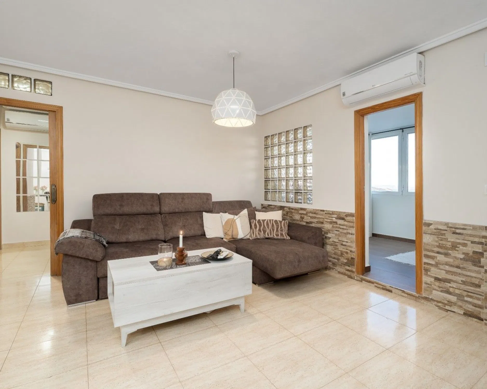 Moderno Apartamento de 2 Dormitorios con Terrazas y Vistas a la Piscina en Gran Alacant – Costa Blanca Bienvenido a este hermoso apartamento en venta en Gran Alacant, que ofrece la combinación perfecta de confort moderno, calidad de vida y una excelente ubicación en la Costa Blanca. Con generosos espacios al aire libre, interiores elegantes y acceso a una piscina comunitaria, esta propiedad es ideal como residencia permanente, casa de vacaciones u oportunidad de inversión en España. Interior Elegante con Salón de Planta Abierta El apartamento cuenta con dos amplios dormitorios, ambos equipados con armarios empotrados, que proporcionan un almacenamiento práctico y una vida cómoda. El baño ha sido completamente renovado en 2025, incluyendo nuevos azulejos en todo el espacio, y está equipado con una ducha e inodoro modernos, ofreciendo una sensación fresca y contemporánea. La moderna cocina está totalmente equipada con todos los electrodomésticos necesarios y se abre directamente al salón, creando una cocina y sala de estar de planta abierta, luminosa y funcional. Esta distribución mejora la sensación de espacio y hace que el apartamento sea perfecto tanto para la vida cotidiana como para el entretenimiento. Amplio Salón y Terraza Acristalada El amplio salón ofrece un ambiente abierto y acogedor, lleno de luz natural. Desde aquí, tiene acceso directo a una espaciosa terraza acristalada, que se puede abrir completamente durante los meses de verano. La terraza disfruta de preciosas vistas a la montaña y tiene vistas a la piscina comunitaria, que está bellamente iluminada por las noches, creando un ambiente relajante y agradable. Terraza Exterior Adicional con Pérgola En la entrada del apartamento, hay una gran terraza adicional con una pérgola, ideal para crear una cocina al aire libre, disfrutar de barbacoas o cenar al aire libre con familiares y amigos. Este espacio exterior adicional mejora significativamente el estilo de vida mediterráneo que se ofrece. Características de Confort e Instalaciones Comunitarias El apartamento está equipado con aire acondicionado en todas las habitaciones, lo que garantiza la comodidad durante todo el año. Los residentes también se benefician del acceso a una piscina comunitaria bien mantenida, perfecta para relajarse y disfrutar del cálido clima de la Costa Blanca. Ubicación Privilegiada – Gran Alacant, Costa Blanca Gran Alacant es una de las zonas residenciales más solicitadas de la Costa Blanca, conocida por su excelente infraestructura, belleza natural y proximidad al mar. La impresionante playa de Carabassí, con sus amplias orillas de arena y dunas protegidas, está cerca, junto con la Reserva Natural del Clot de Galvany, ideal para los amantes de la naturaleza. La ubicación ofrece una comodidad excepcional, con el aeropuerto de Alicante a solo 10 minutos en coche, así como fácil acceso a tiendas, restaurantes, escuelas y transporte público. Gran Alacant es perfecto tanto para vivir todo el año como para uso vacacional. El complejo residencial está cerca de zonas verdes y miradores panorámicos como el popular Mirador del Faro, donde se puede disfrutar de vistas panorámicas del mar Mediterráneo y la isla de Tabarca. La zona también cuenta con numerosas rutas de senderismo y ciclismo, lo que la hace ideal para un estilo de vida activo al aire libre. Un Hogar Ideal en la Costa Blanca Este apartamento en Gran Alacant ofrece todo lo que necesita para un estilo de vida cómodo y de alta calidad: interiores modernos, terrazas generosas, hermosas vistas y una ubicación excepcional cerca de la playa, la naturaleza y los servicios.