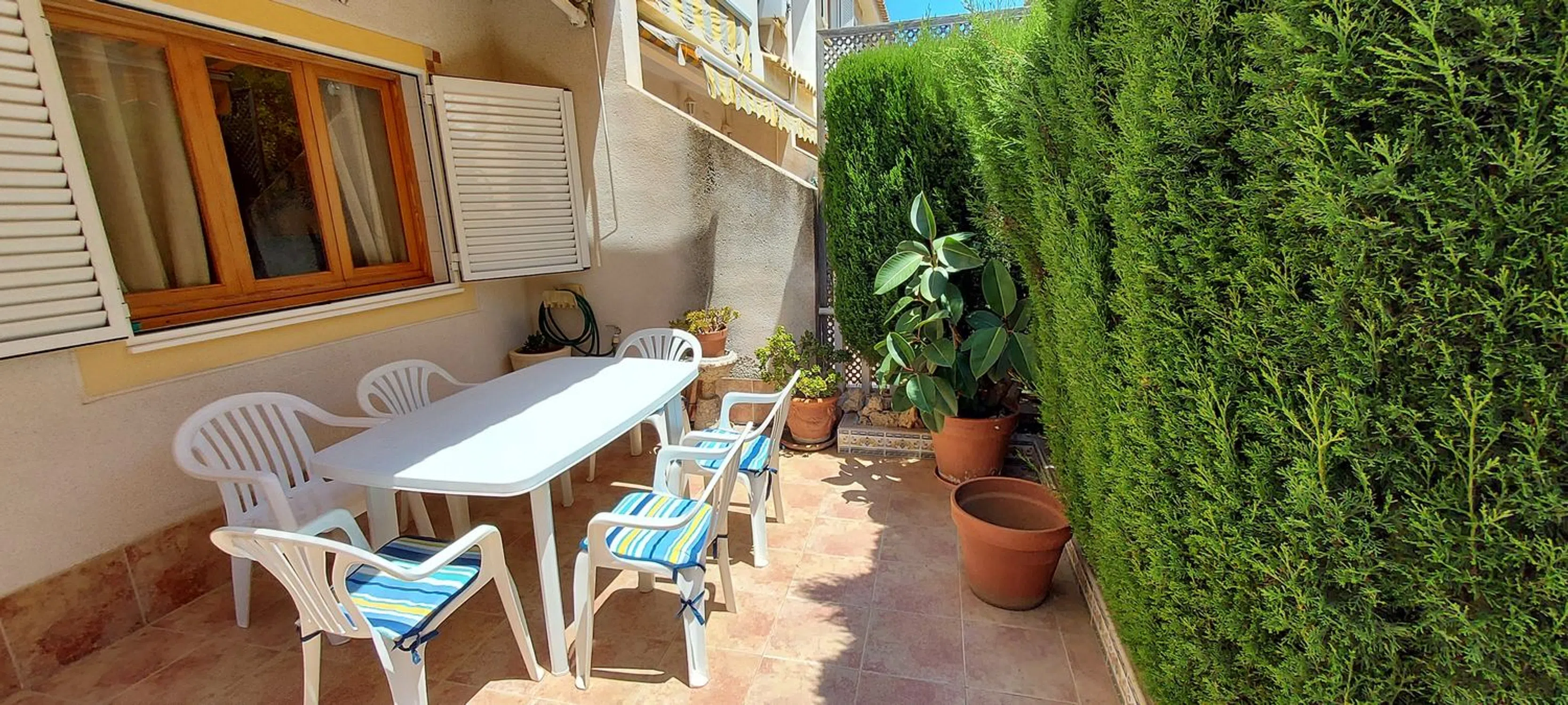 ¡Descubre tu nuevo hogar en la urbanización Brisa Mar 35 de Gran Alacant(Santa Pola), Alicante-España! Este encantador bungalow adosado te ofrece todo lo que necesitas para disfrutar del clima mediterráneo. Con ventanas orientadas al sur, la luz natural inunda cada rincón del salón-comedor y la cocina. En la planta baja, encontrarás un baño con ducha y acceso a un acogedor patio trasero con galería para lavadora. Sube a la segunda planta y descubre dos habitaciones luminosas y un baño adicional. La terraza privada es el lugar perfecto para relajarte bajo el sol, equipada con toldos y mobiliario para tu comodidad. Además, el aire acondicionado te garantiza una temperatura ideal en cualquier época del año. Con internet de fibra óptica de 600 Mbps, estarás siempre conectado. La urbanización ofrece comodidades excepcionales, como un parking público para residentes, una bar-cafetería, un parque infantil y tres piscinas abiertas durante el verano. Construido en 1997, este bungalow de 57 m² está en buen estado y cuenta con calefacción de 2 aire acondicionado de frío/calor. No pierdas la oportunidad de vivir en este entorno privilegiado. Para más información, contacta con nuestra oficina en Santa Pola. ¡Tu nuevo hogar te espera!
